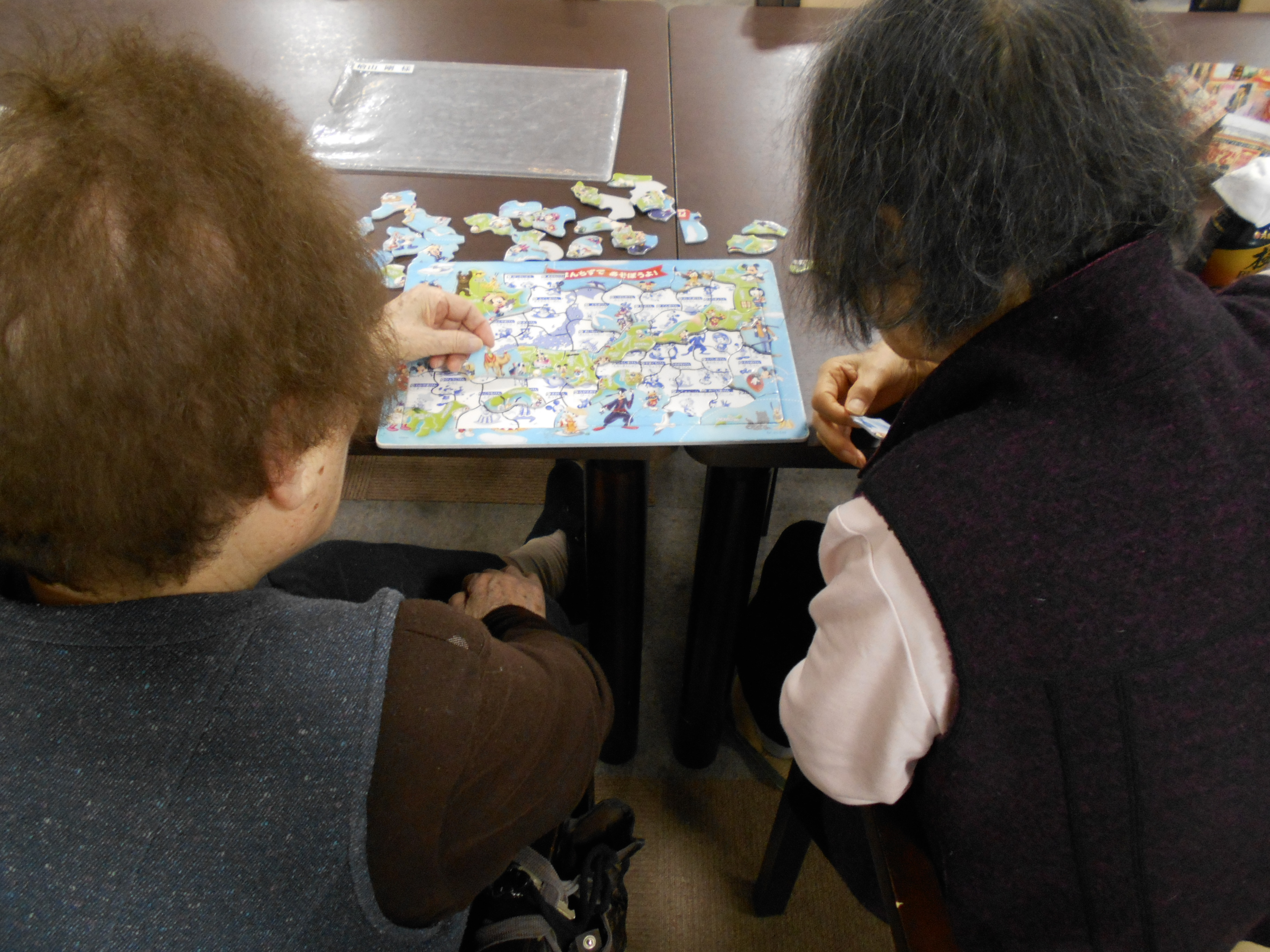 食堂でパズルをされています。