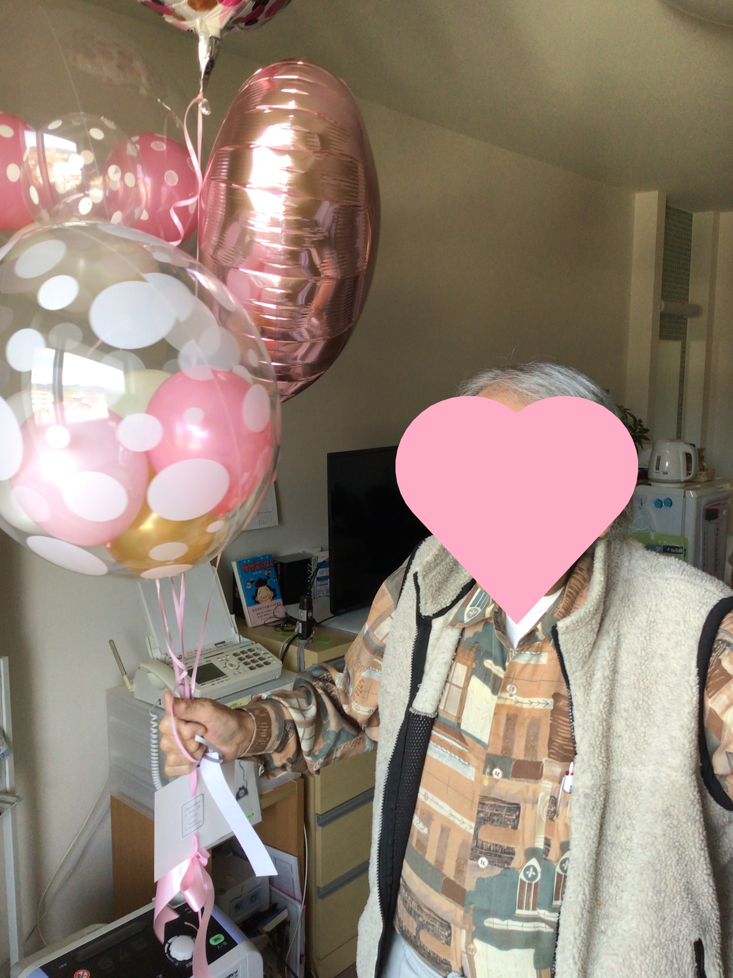 入居されているお父様に誕生日プレゼントのお花とバルーンアートが届きました