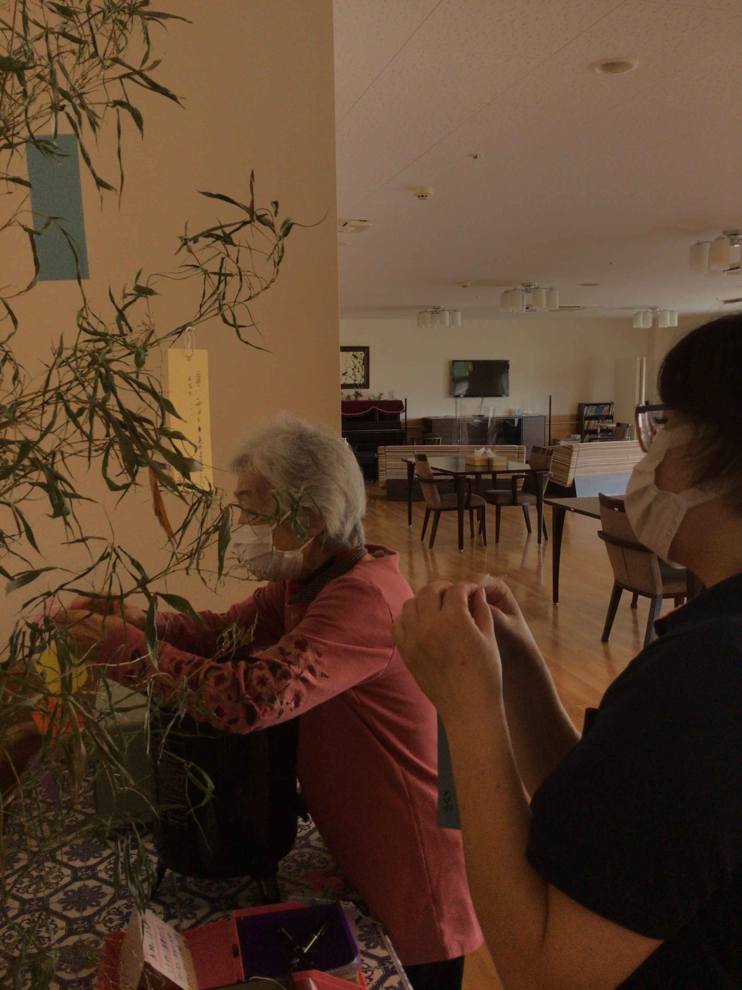 毎年、裏から笹を取り、短冊に願い事を書いていただいています!