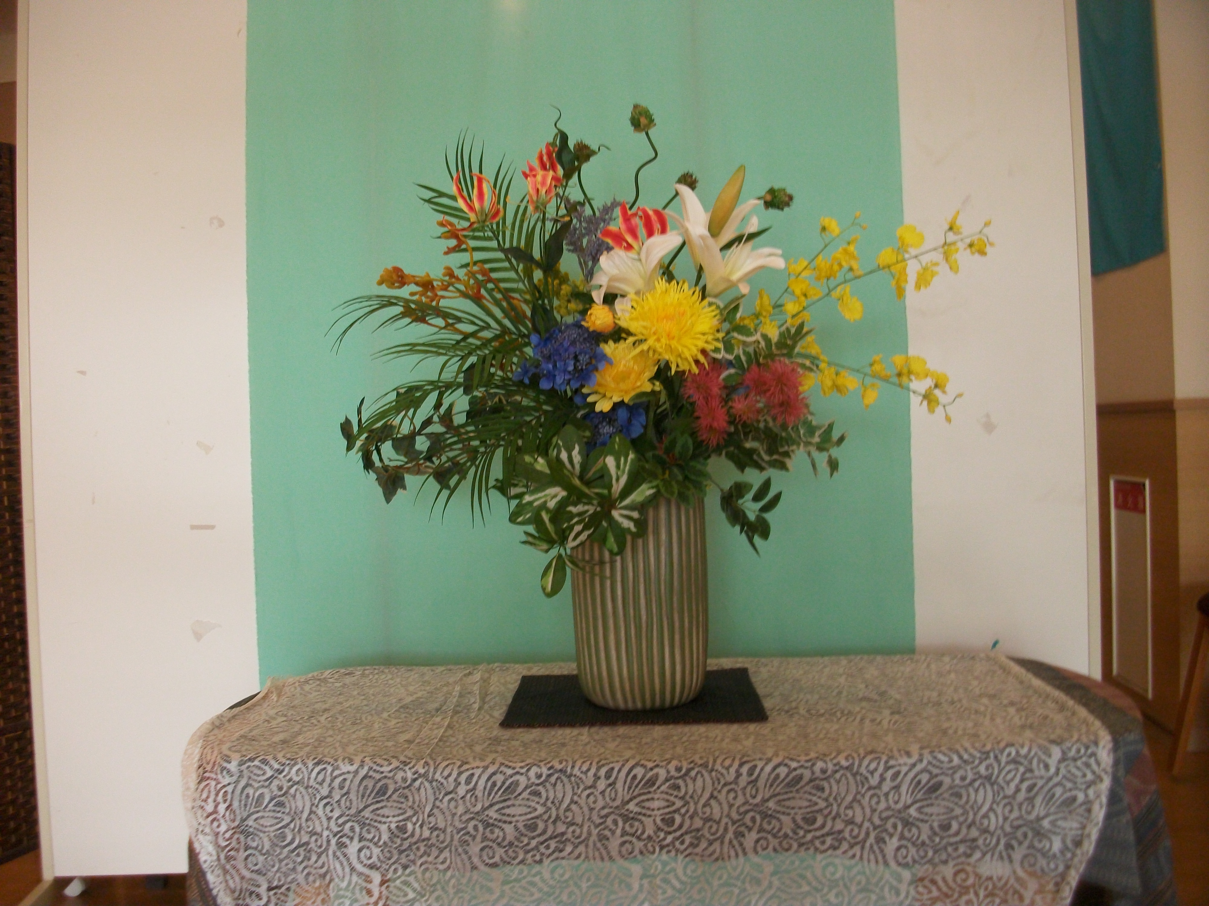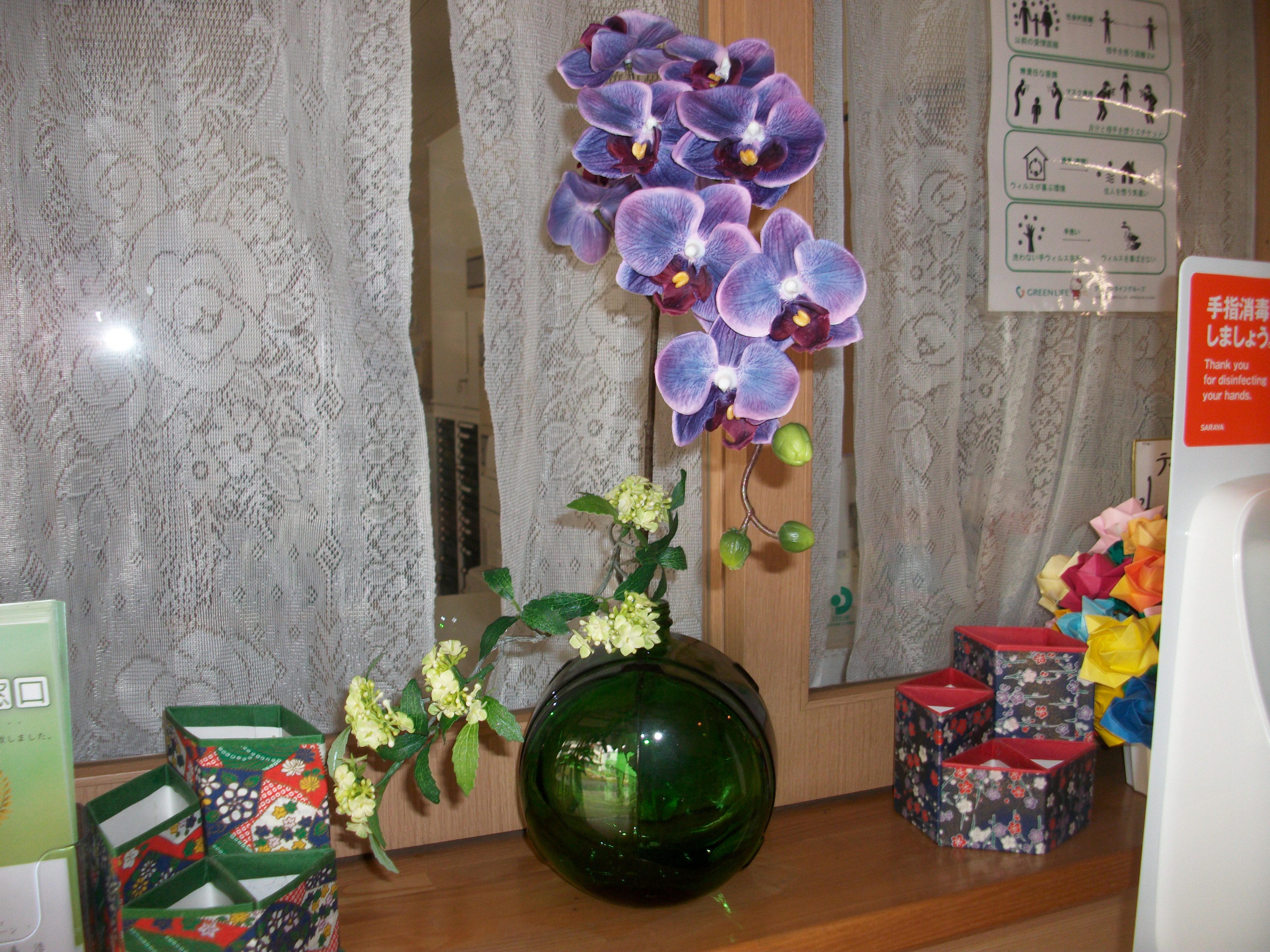 お花クラブのスタッフが造花でアレンジメントを飾ってくれました♪