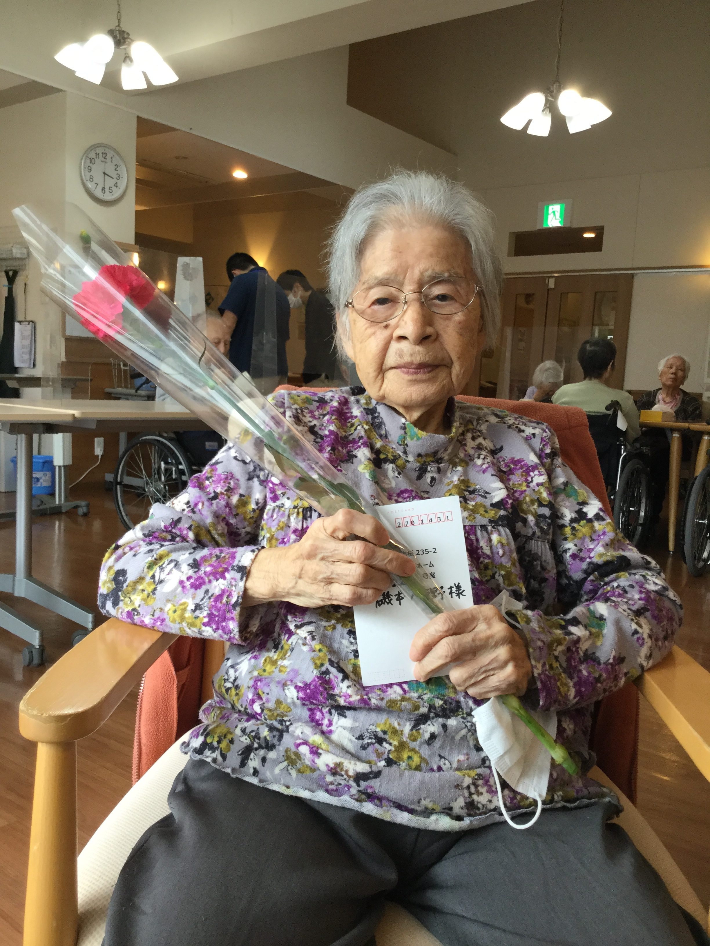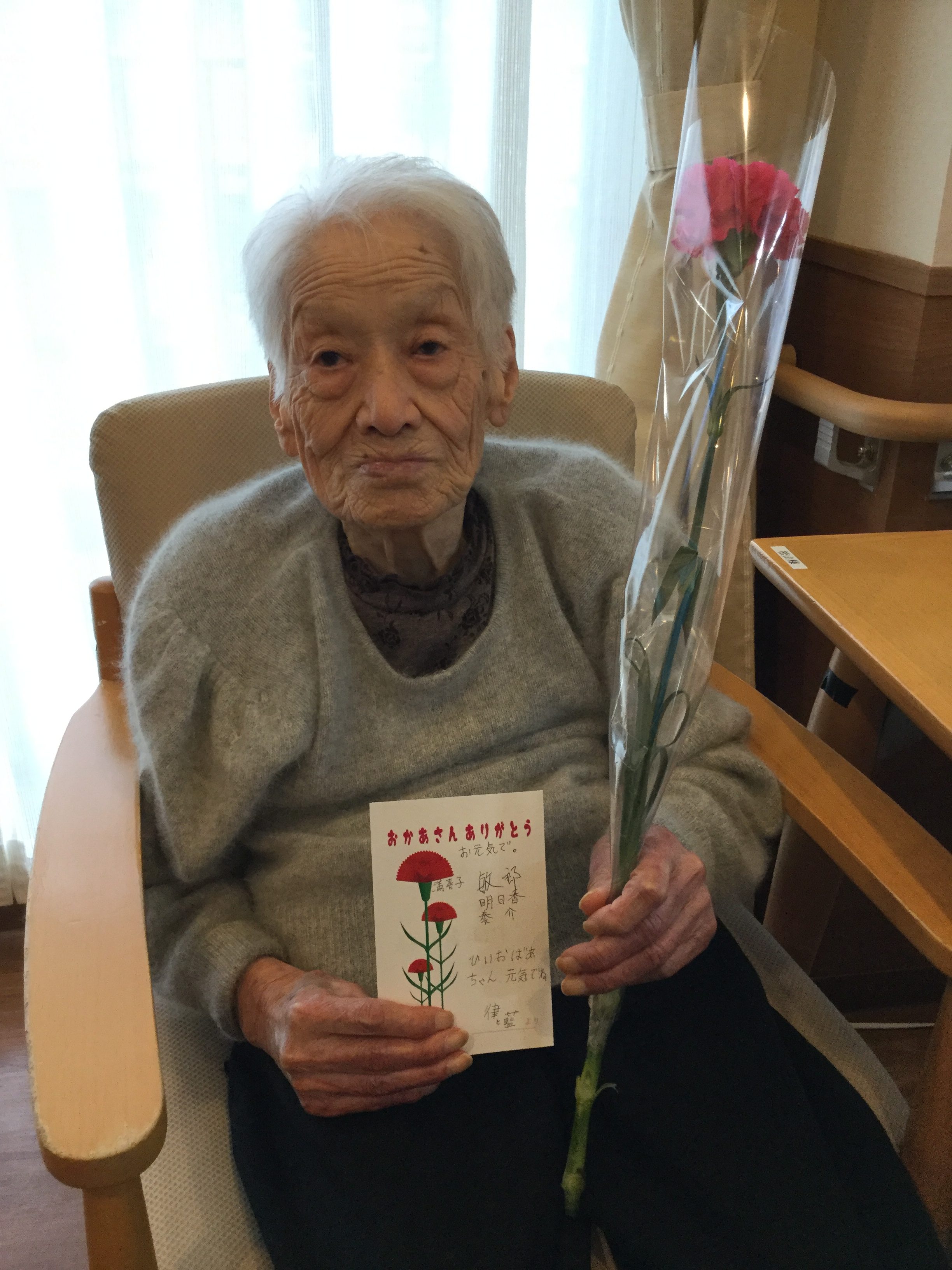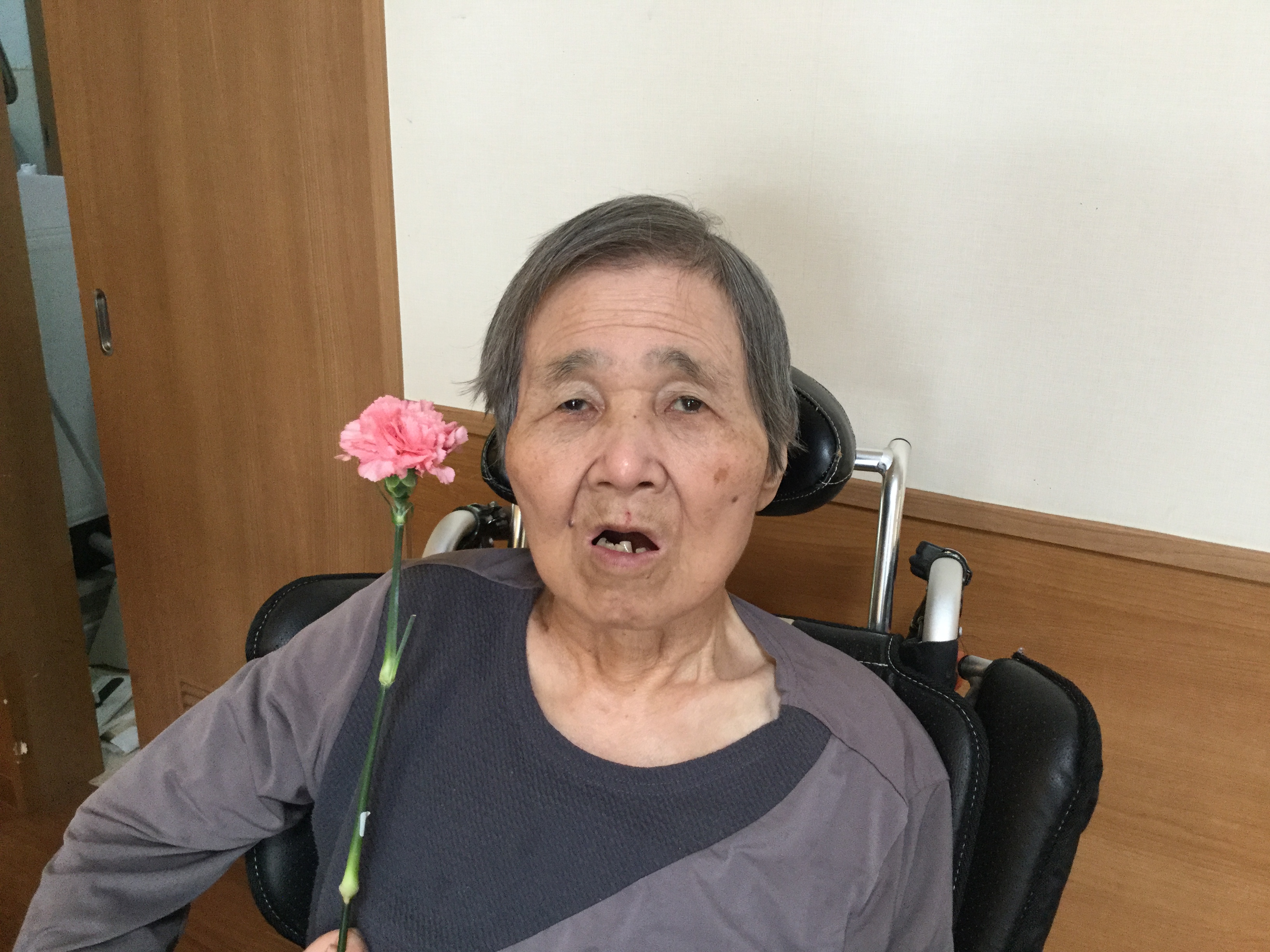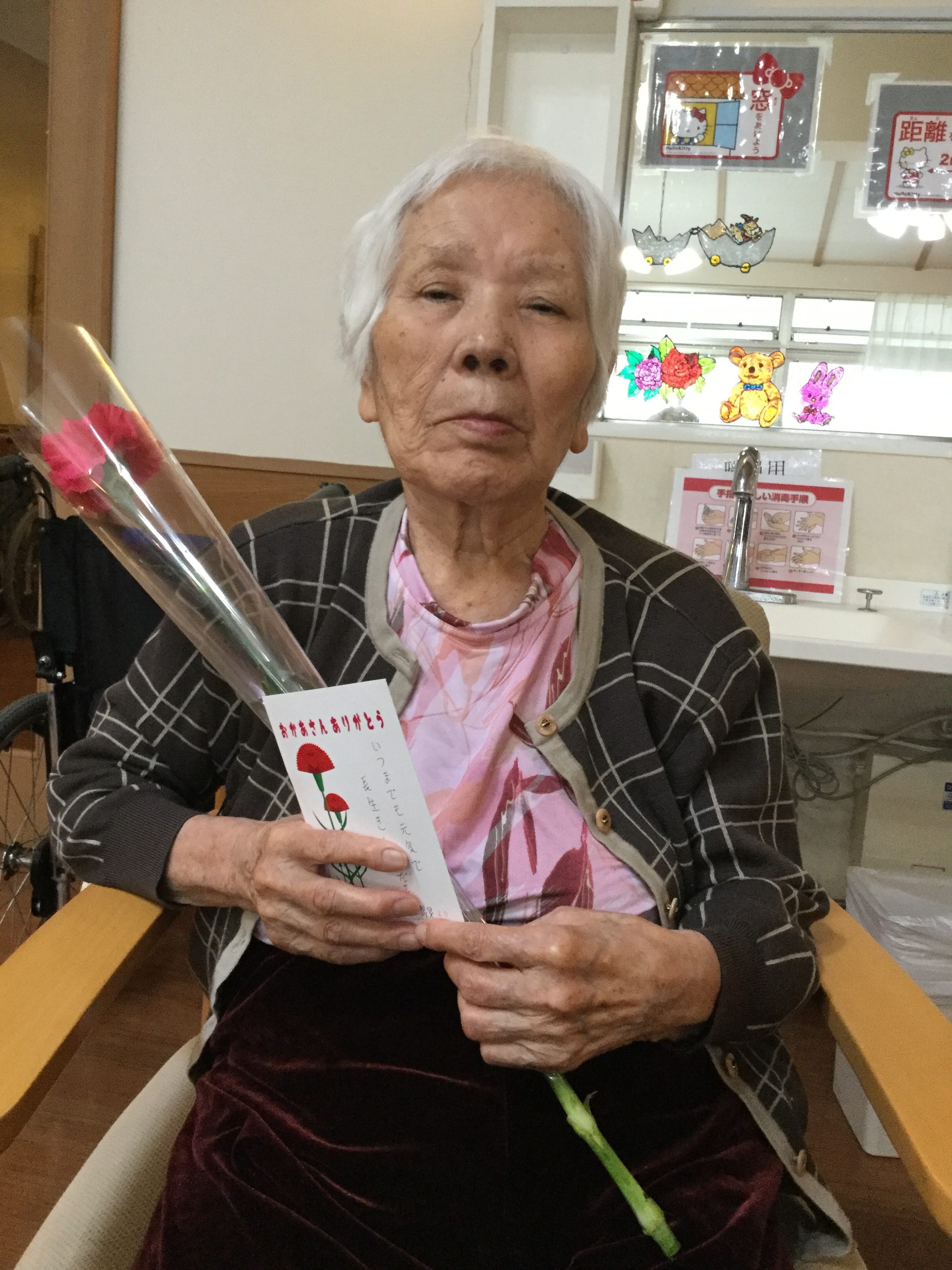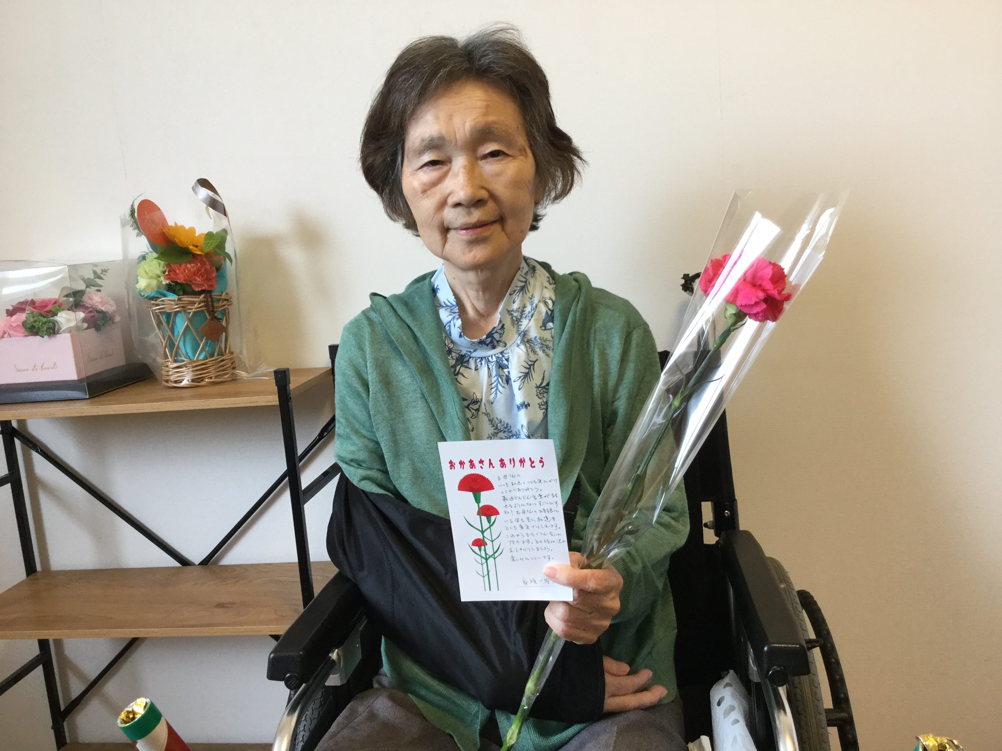 母の日当日は、届いたカードと赤いカーネーションをお渡しいたしました。