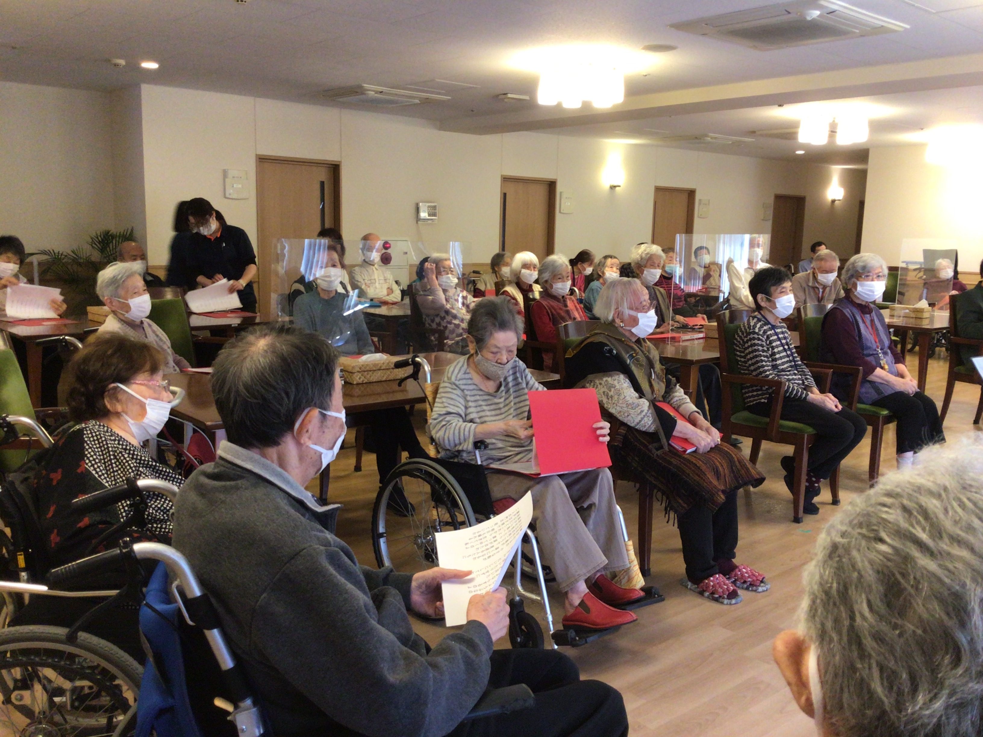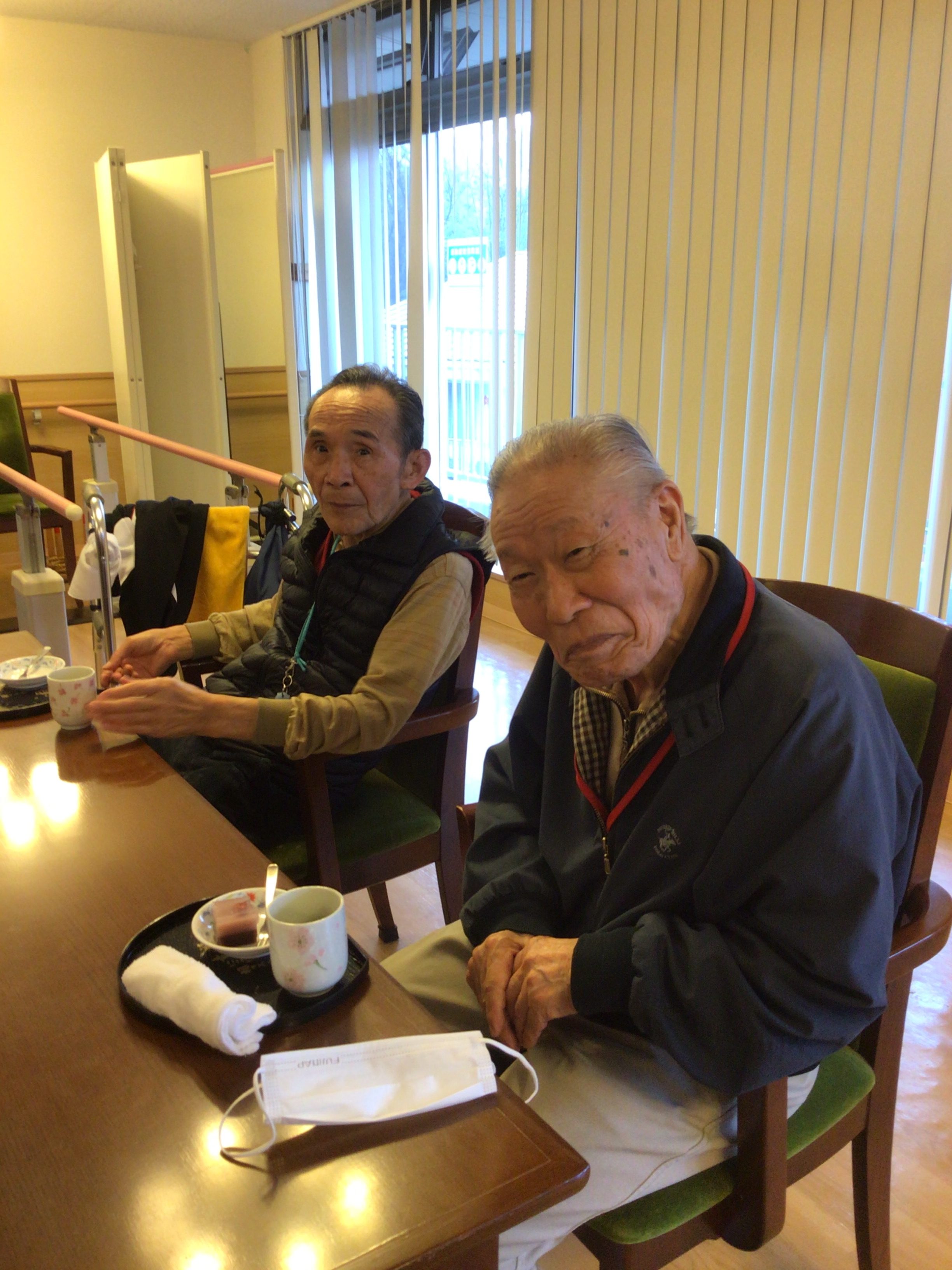 施設長考案の、手作り「桜シフォンケーキ」と手作り「さくら羊羹」を召し上がっていただきました。