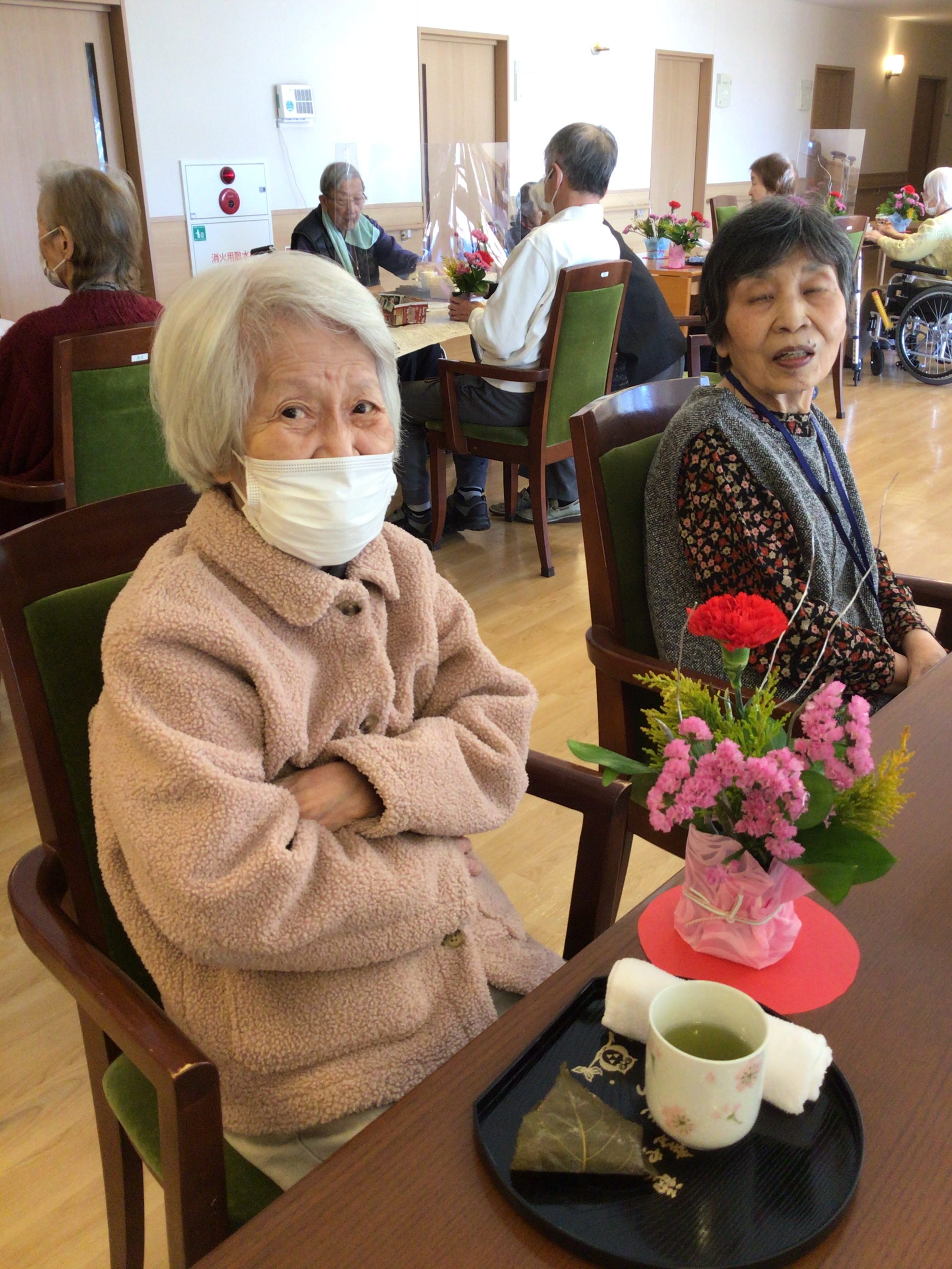 手作りの柏餅と抹茶を召し上がる前に、思い思いにフラワーアレンジメントを作っていただきました。