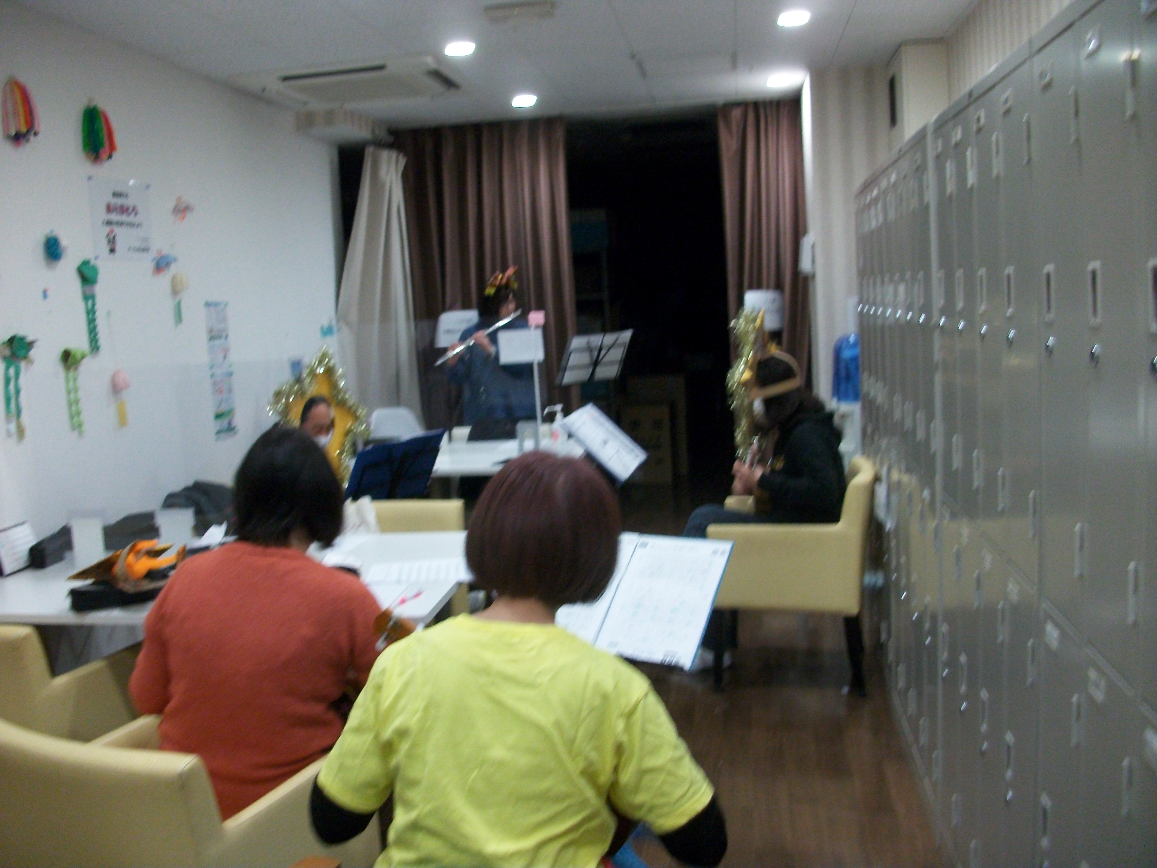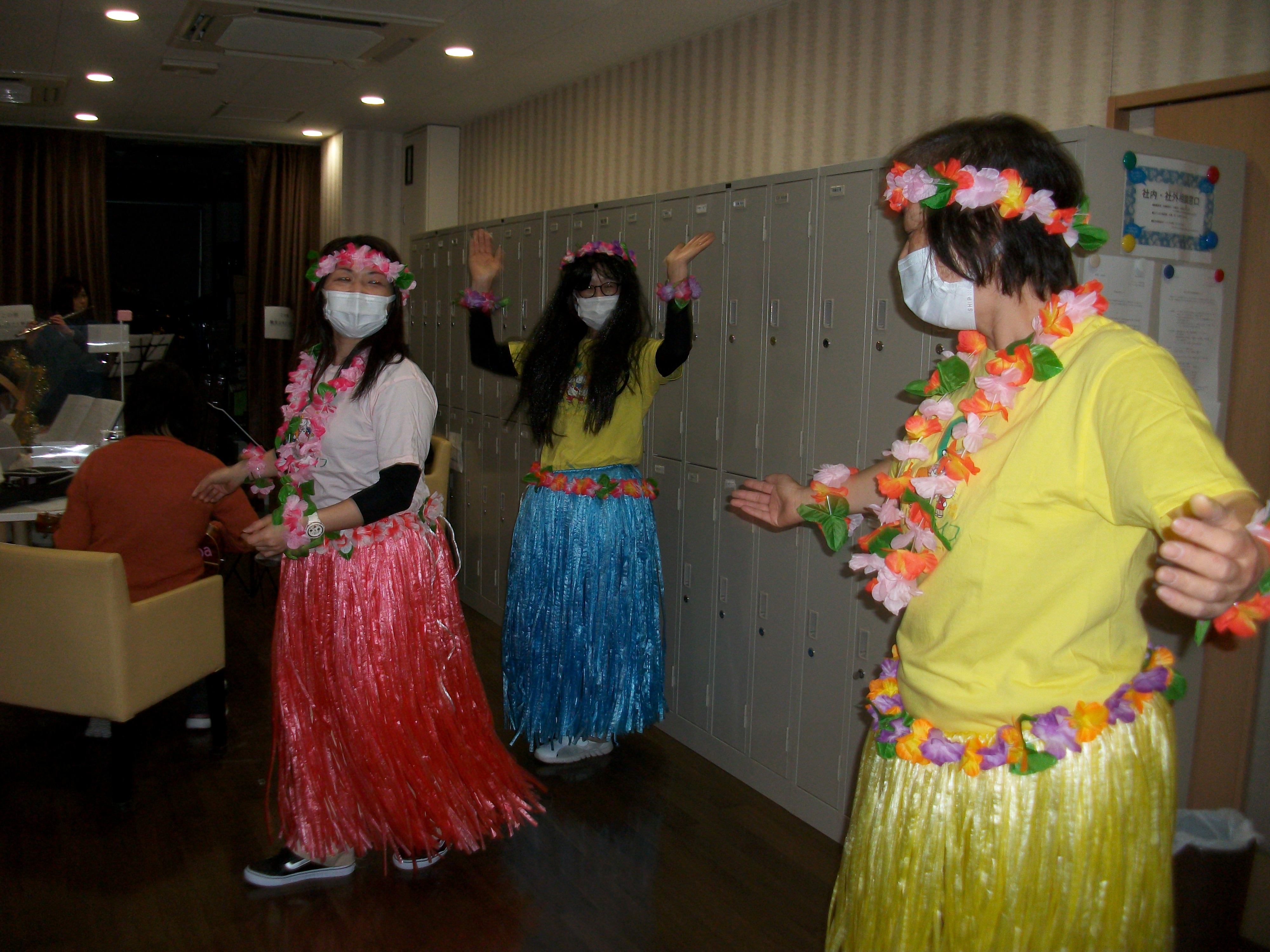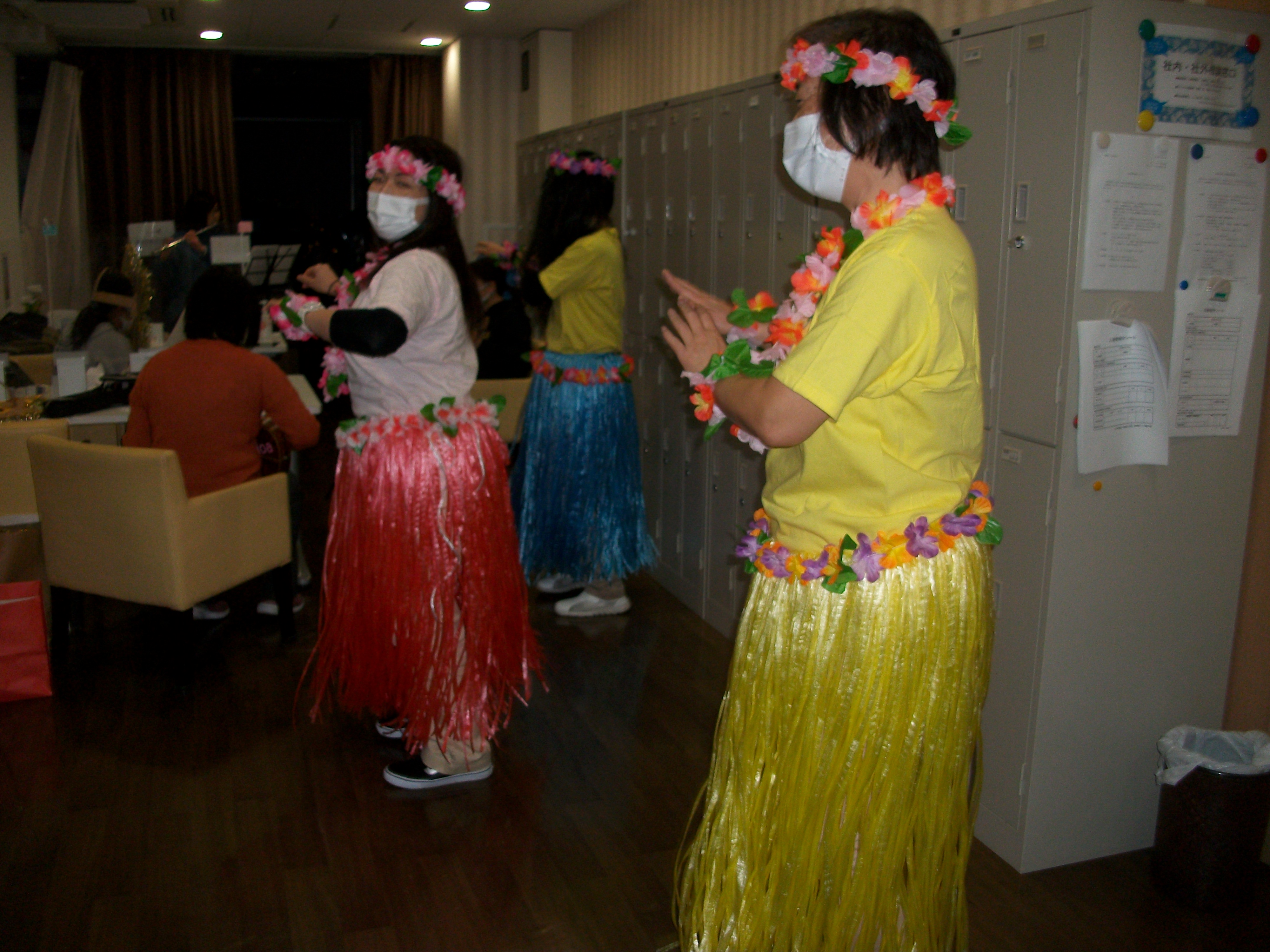 音楽隊とフラダンスの練習風景です。