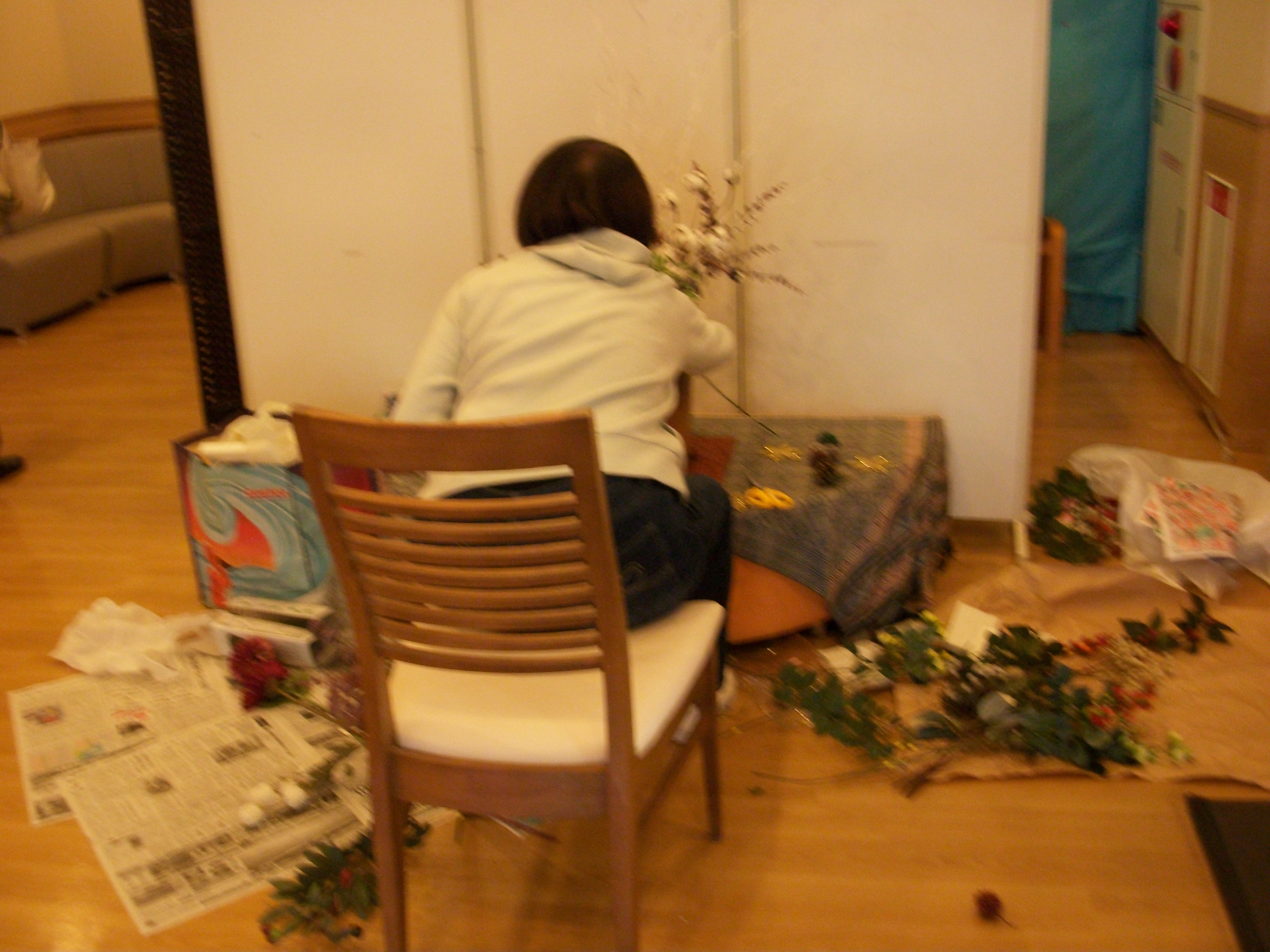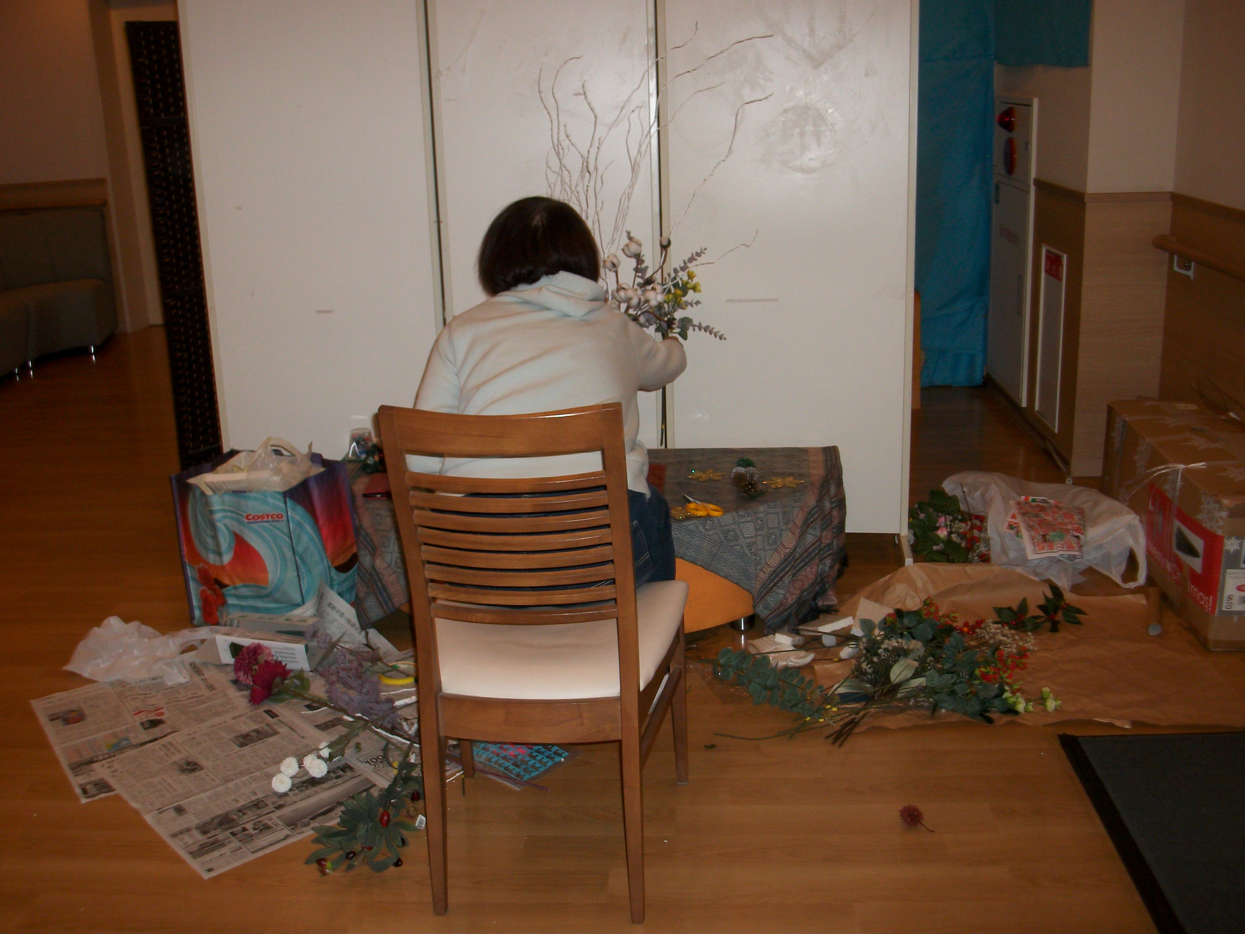 まず命題は、ホーム玄関ロビーの生け花(造花)担当です。