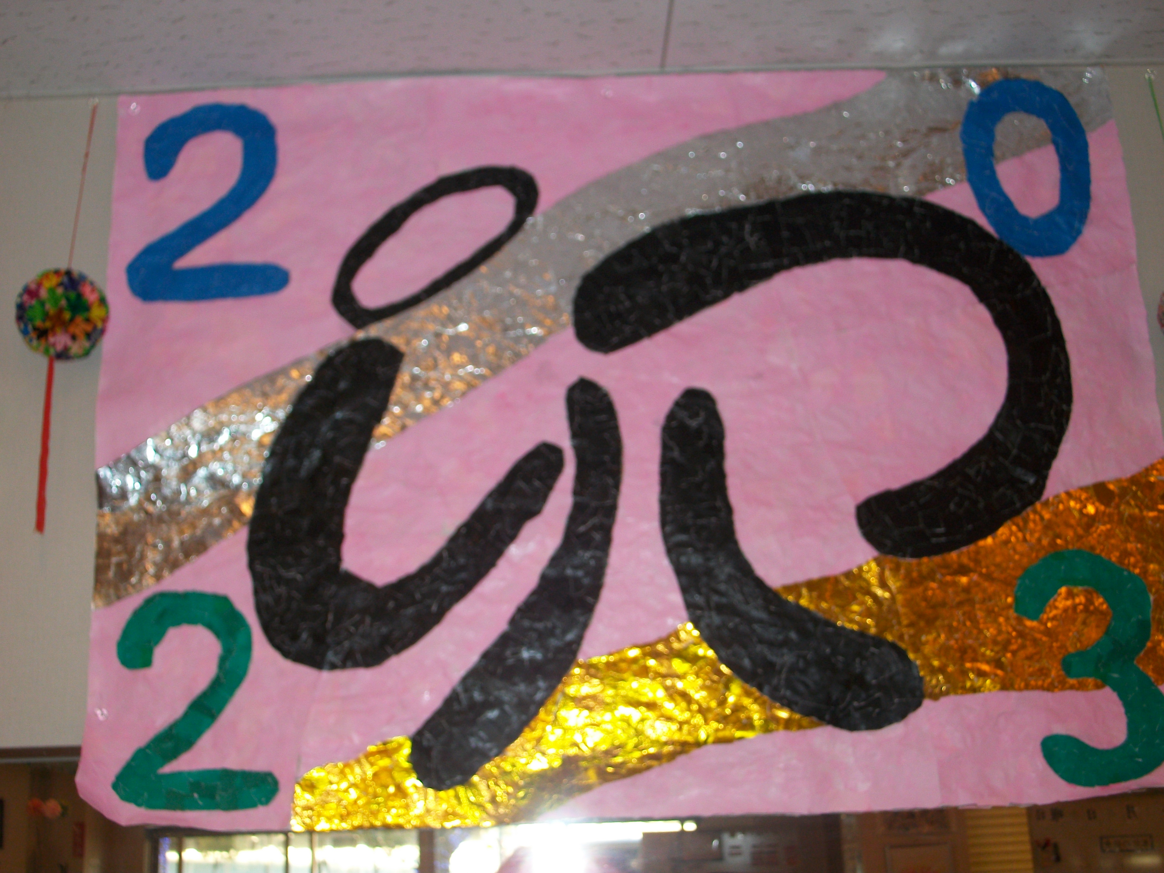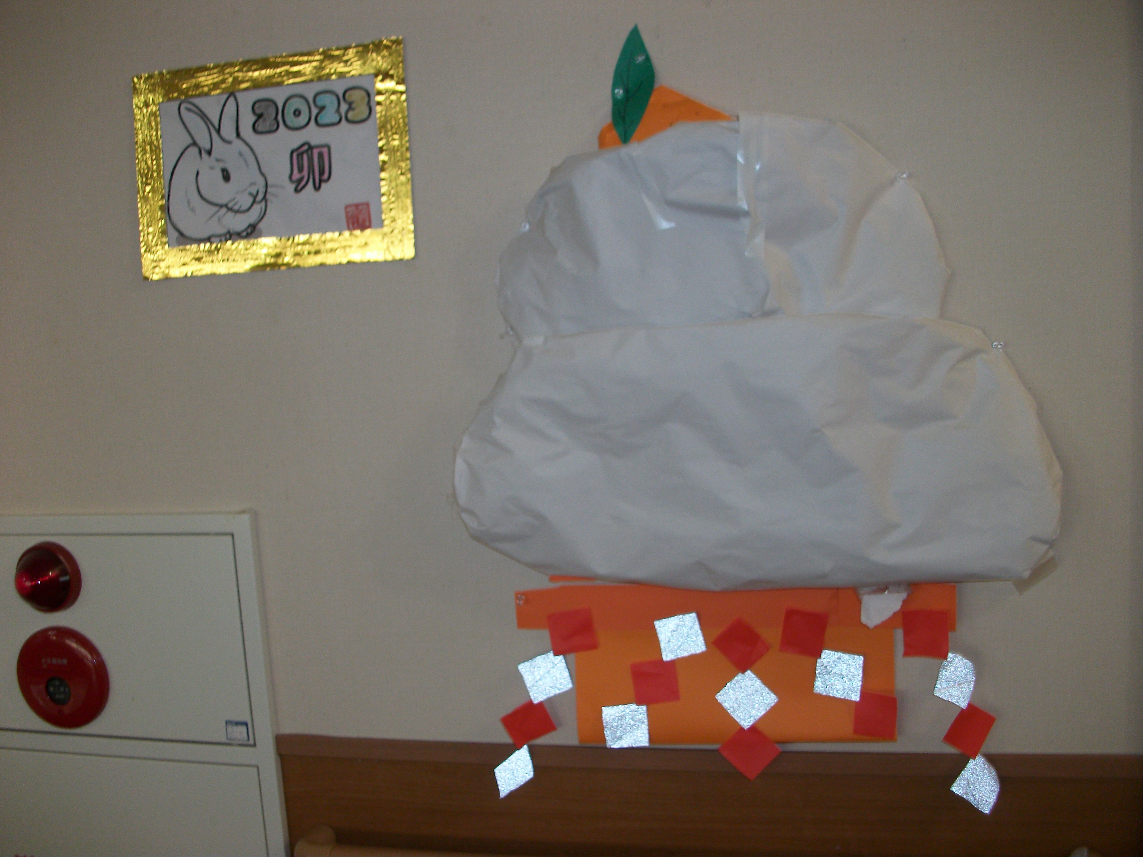 🐇のオプジェと大きな鏡餅は皆さんでつくったんでしょうね。