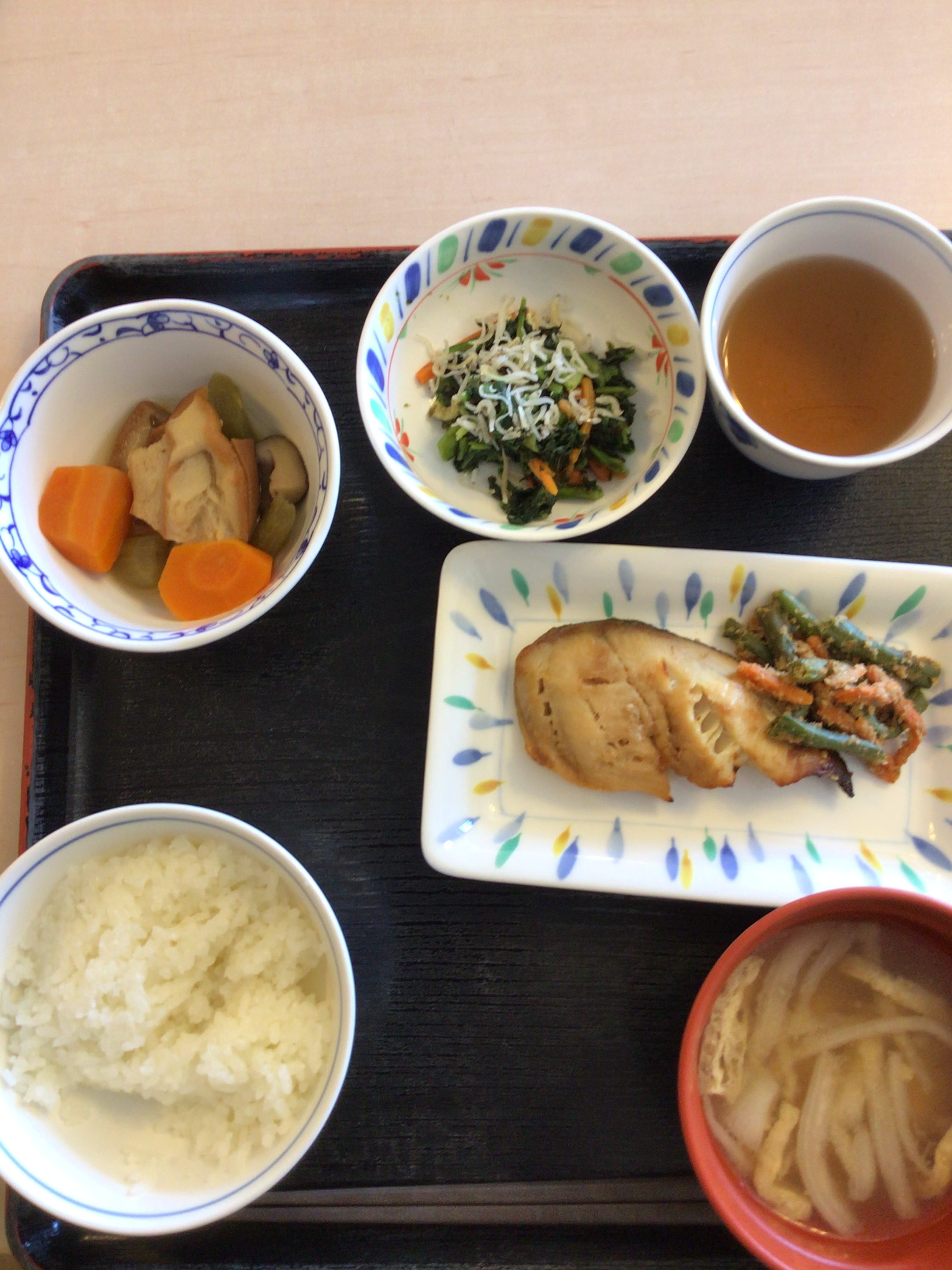 本日のメニューは、たらの竜田揚げと里芋の煮っころがし、にらともやしのナムルです!