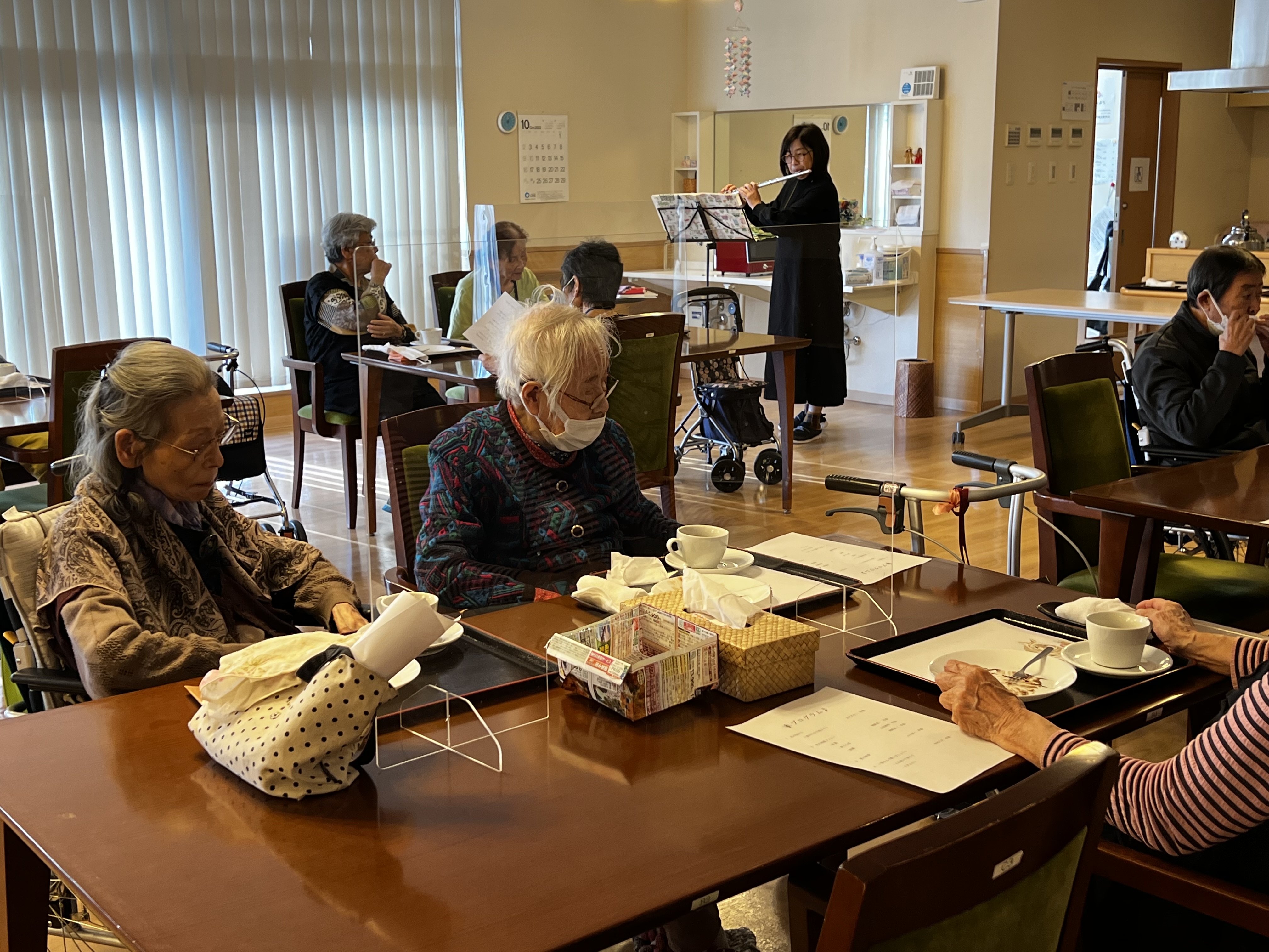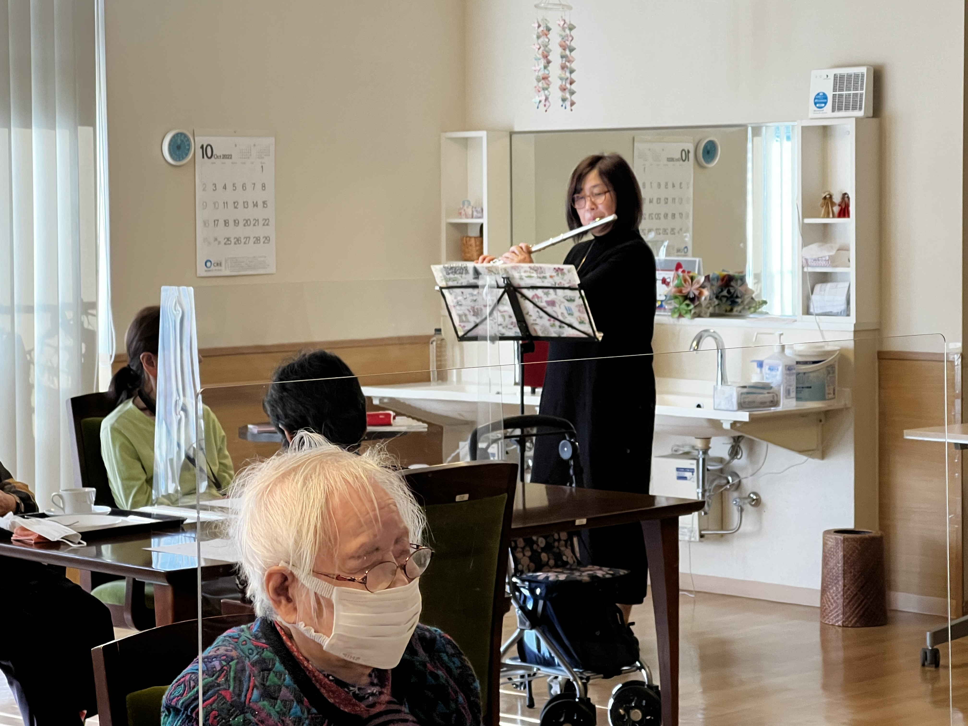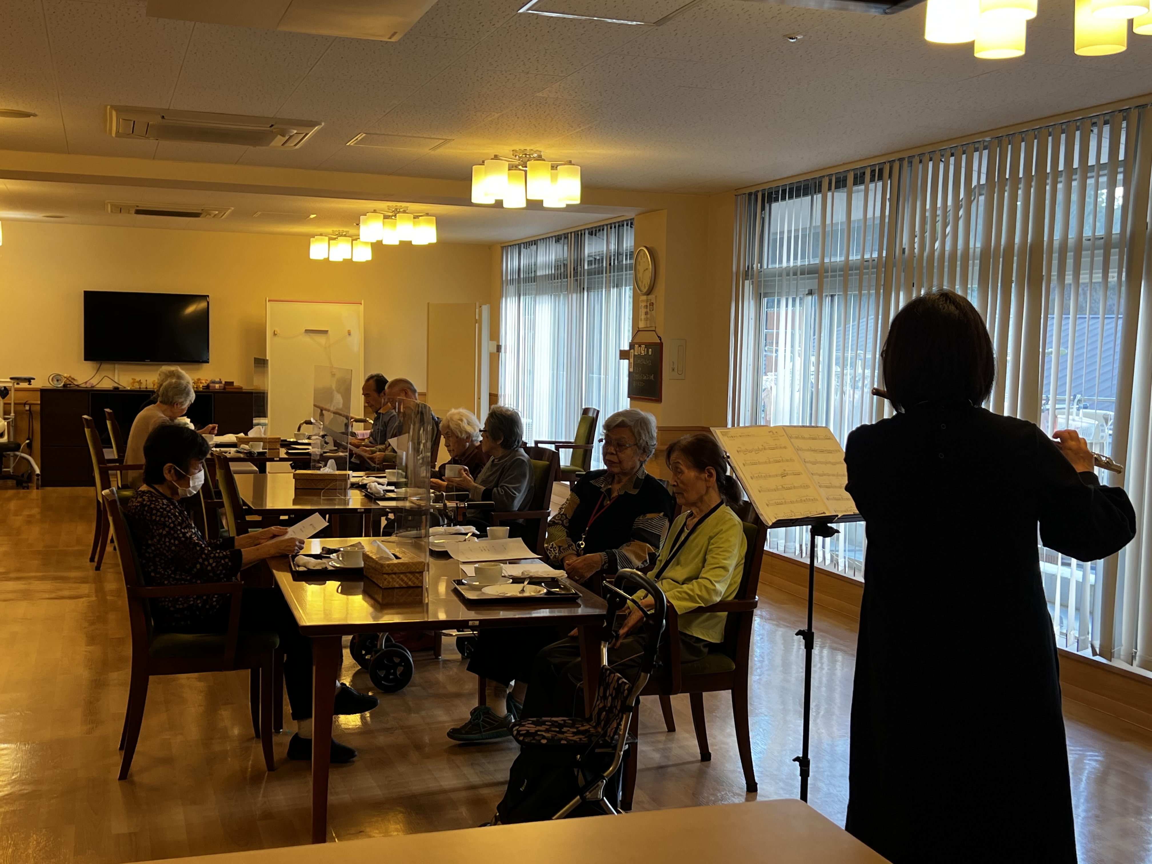 おやつを食べた後は、スタッフによるフルート生演奏を聴きながら音楽鑑賞です!