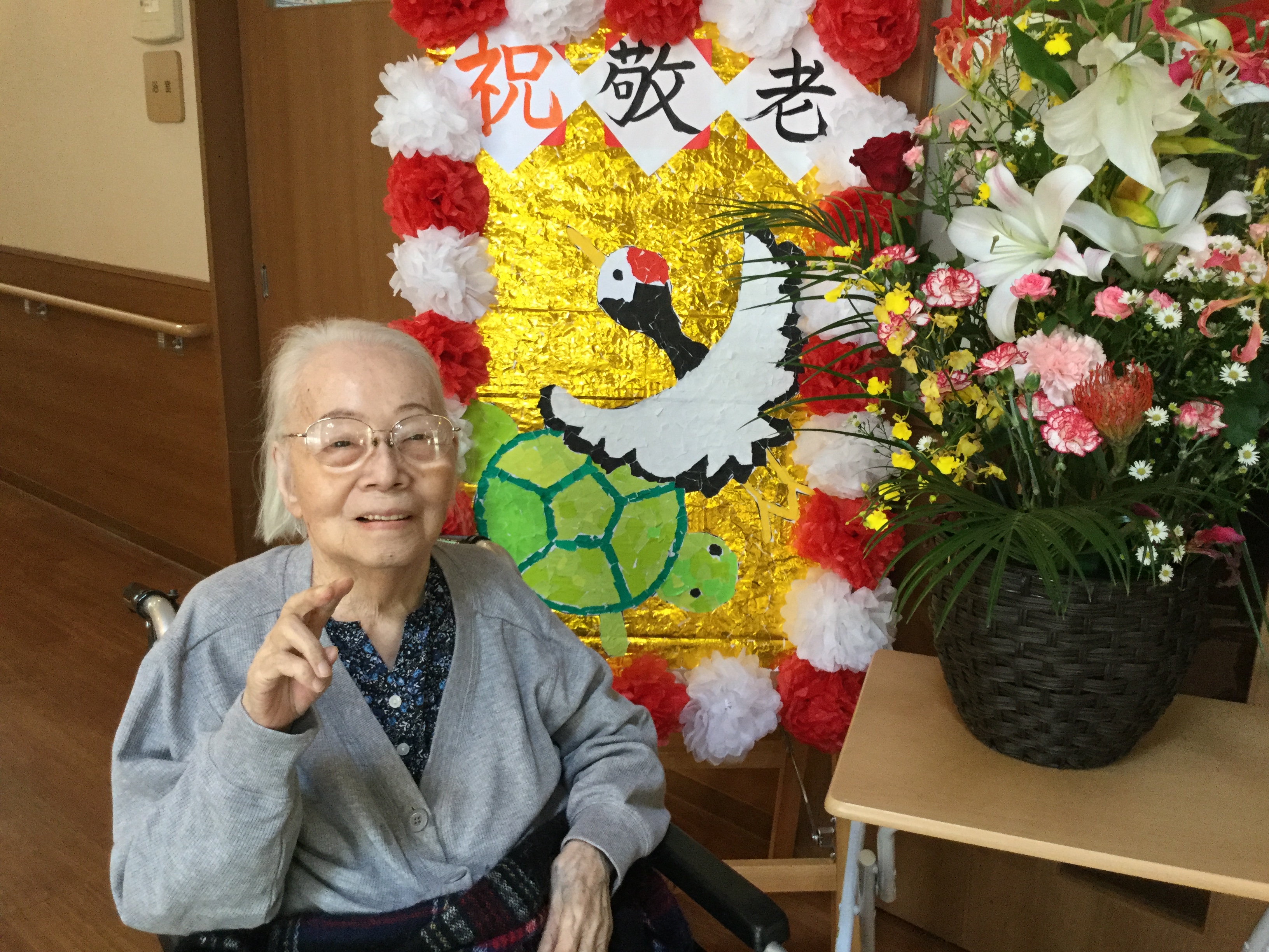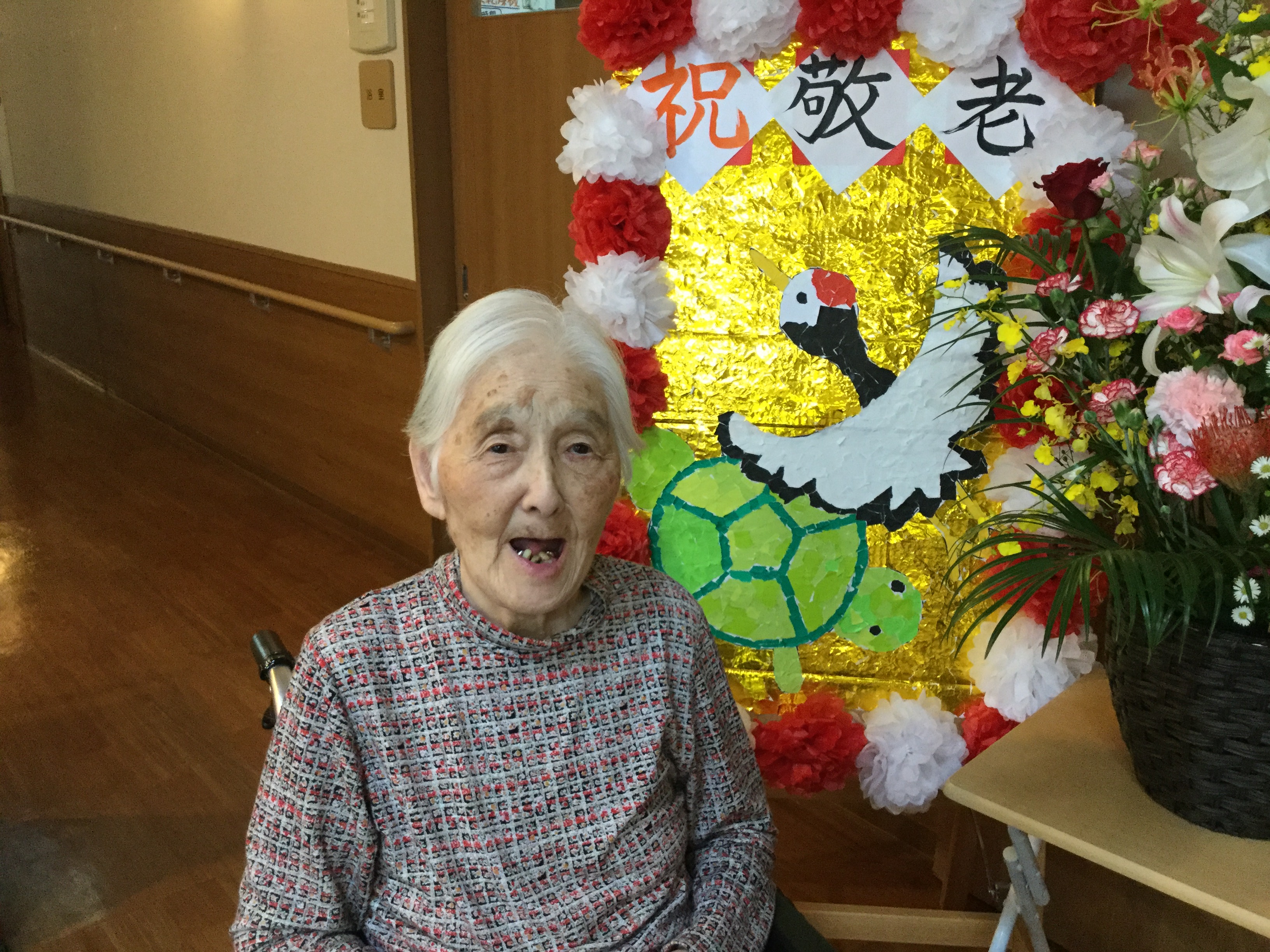 ホームの玄関に大きな敬老会の看板が出来上がりました!