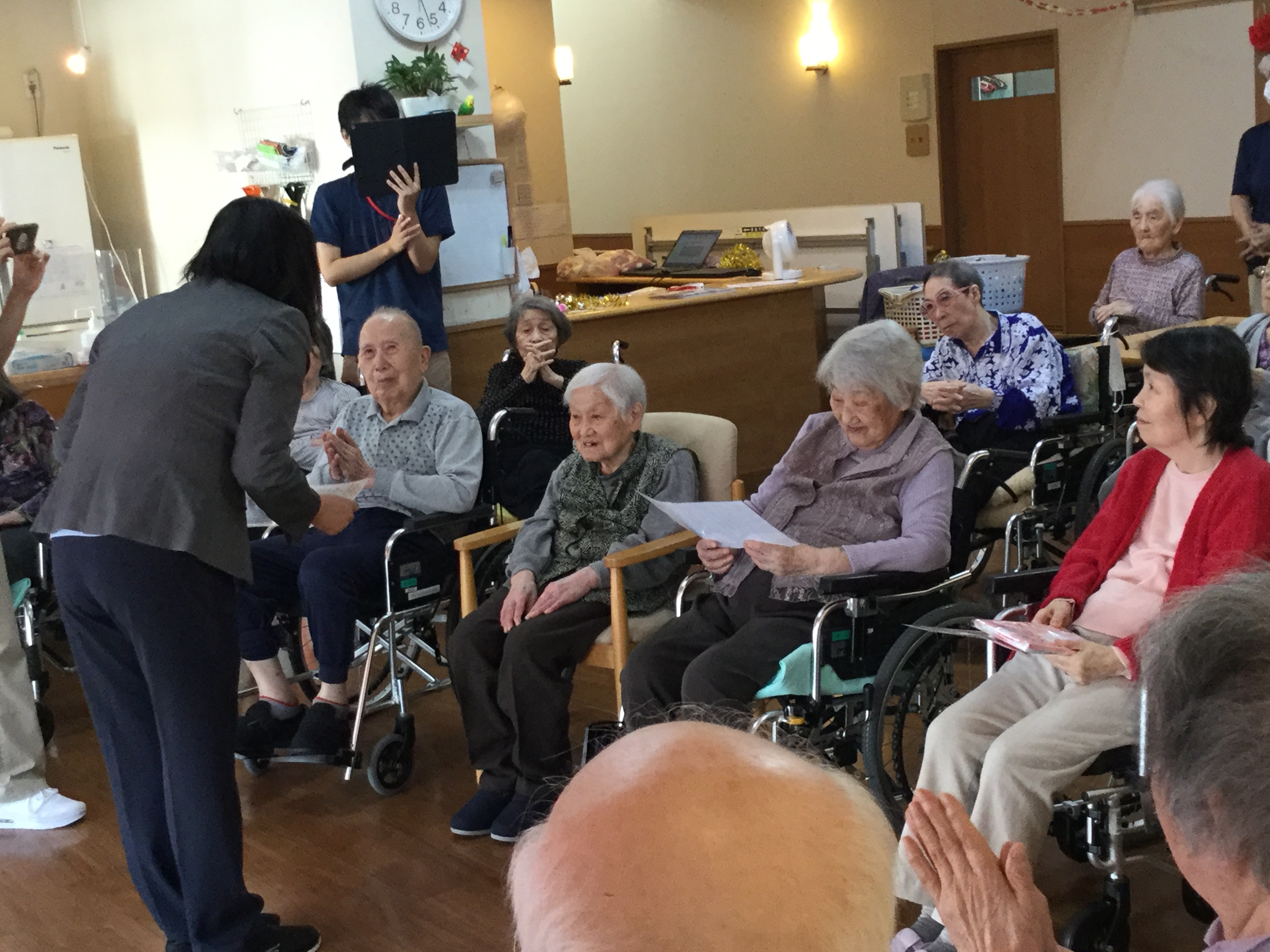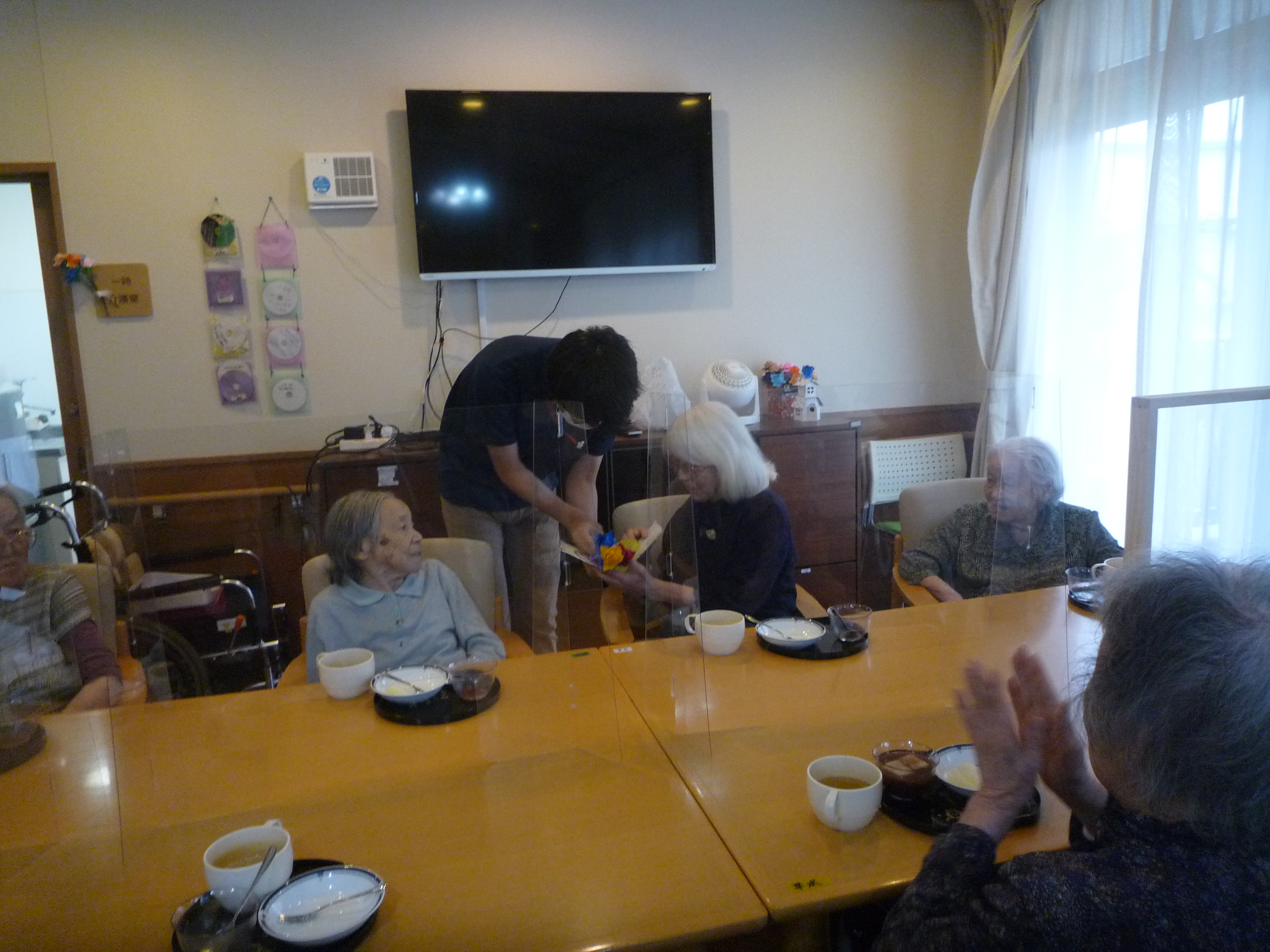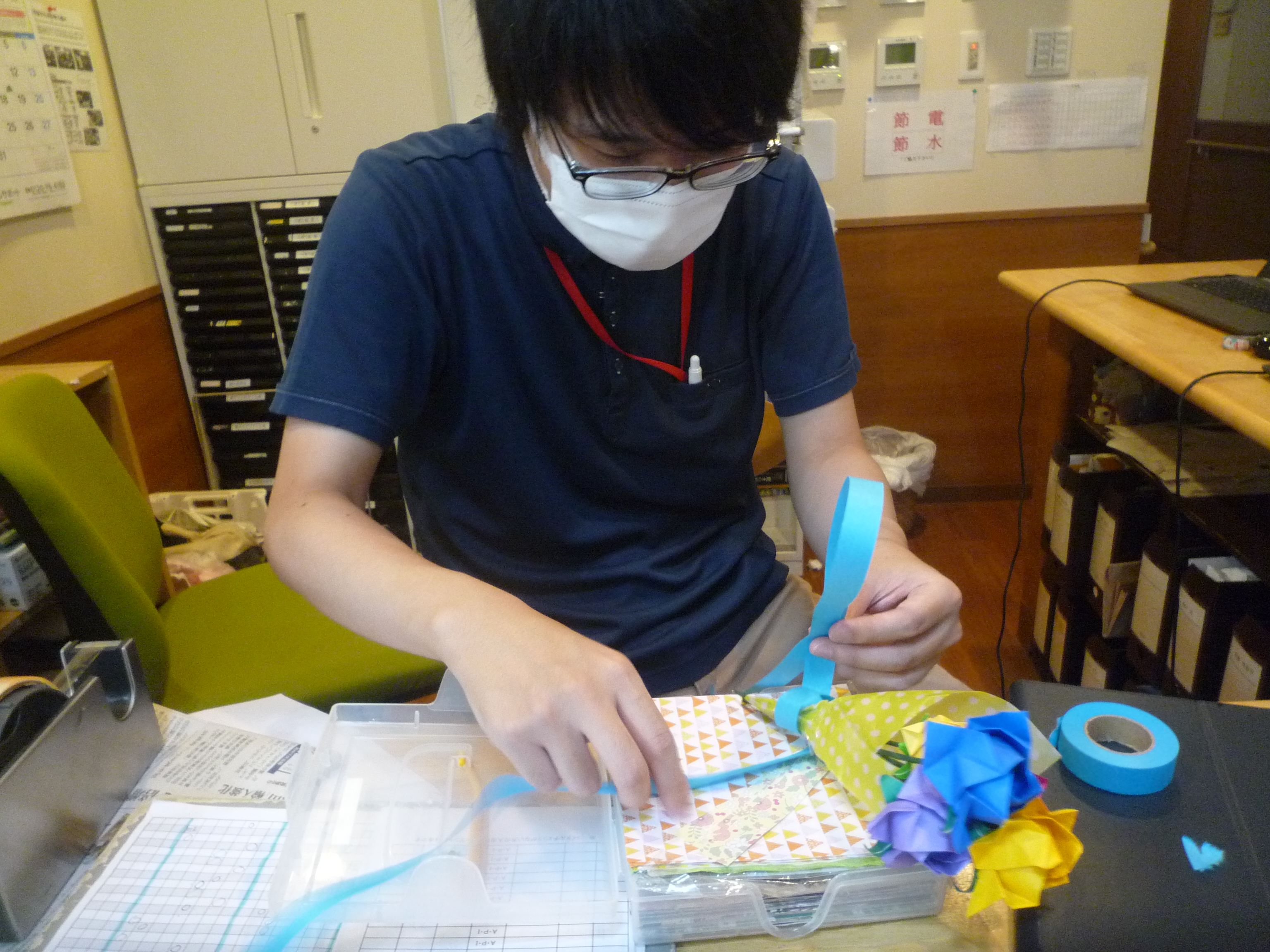 男性スタッフが一生懸命ラッピングし、手渡しでプレゼントをお渡し