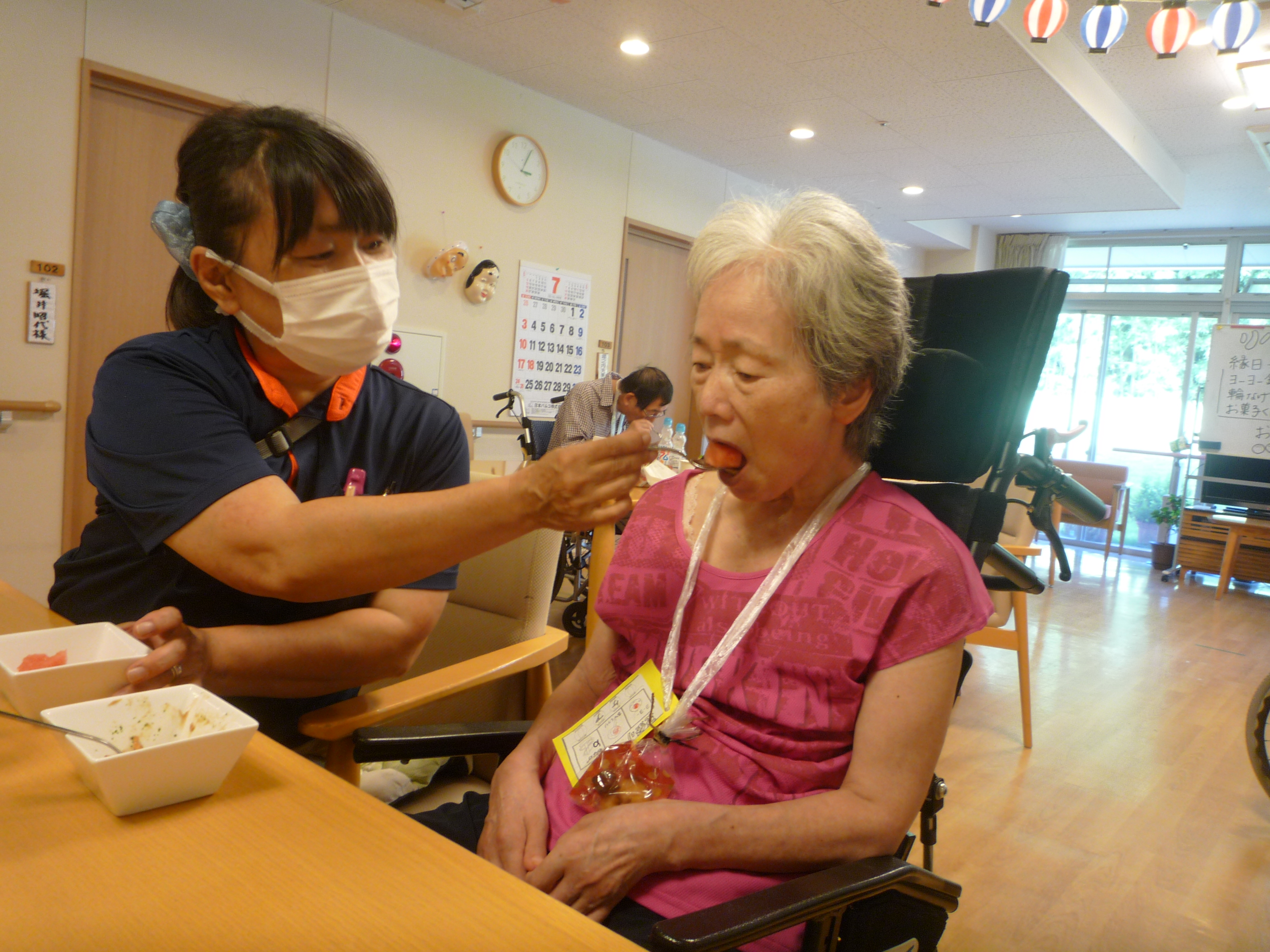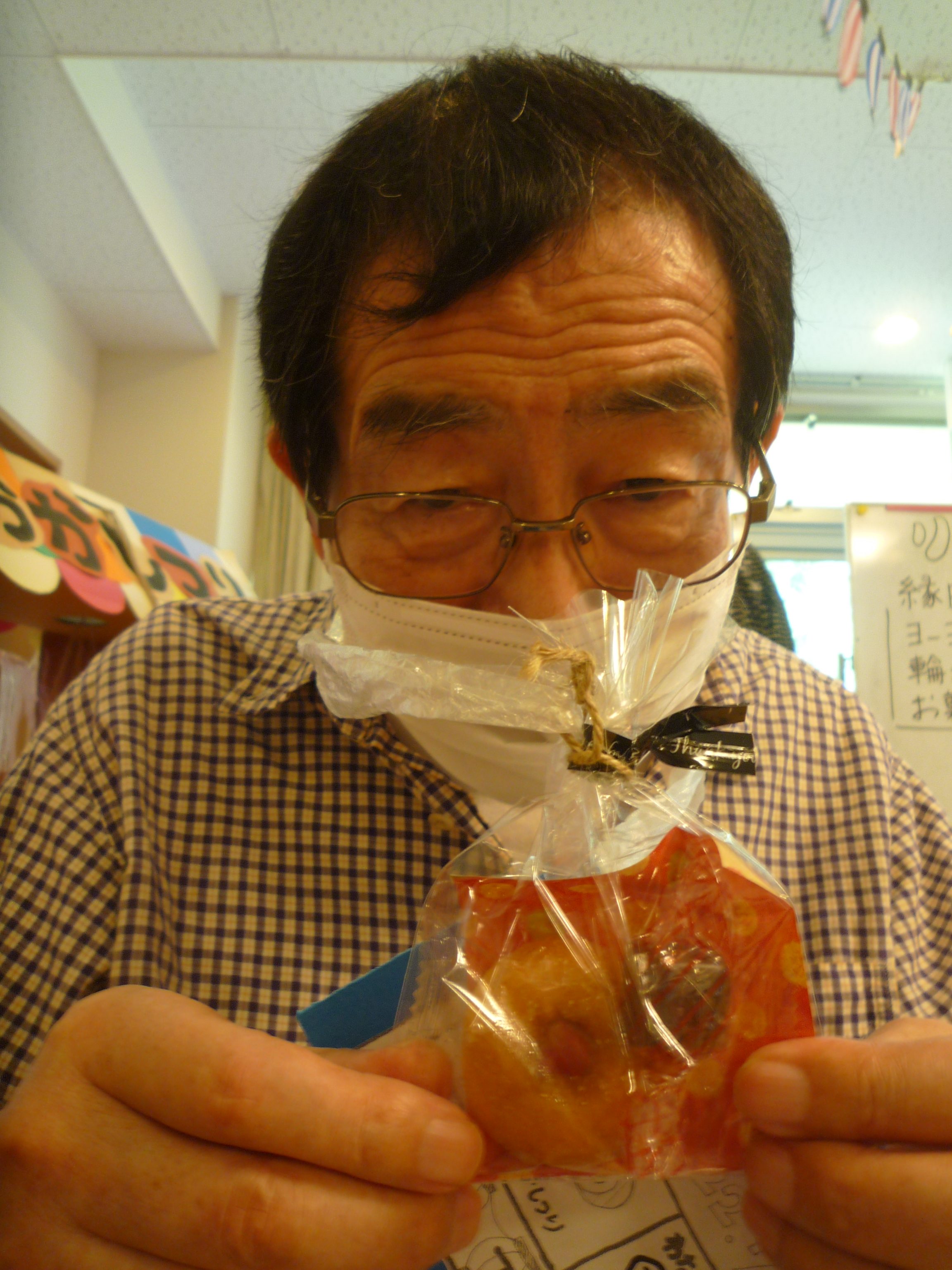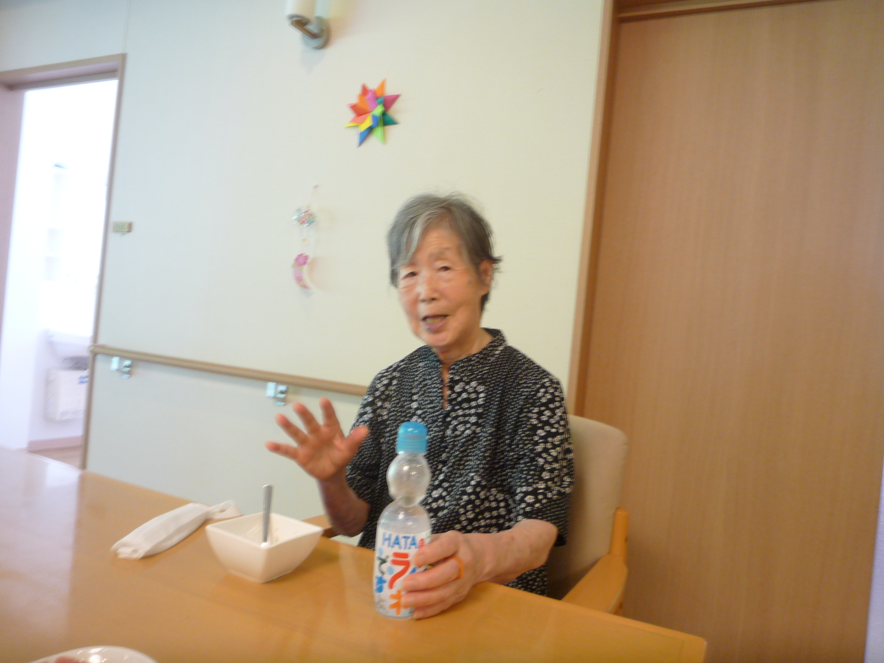 ゲットした、ラムネとたこ焼きと🍉を皆さんで、「いただきま~す」