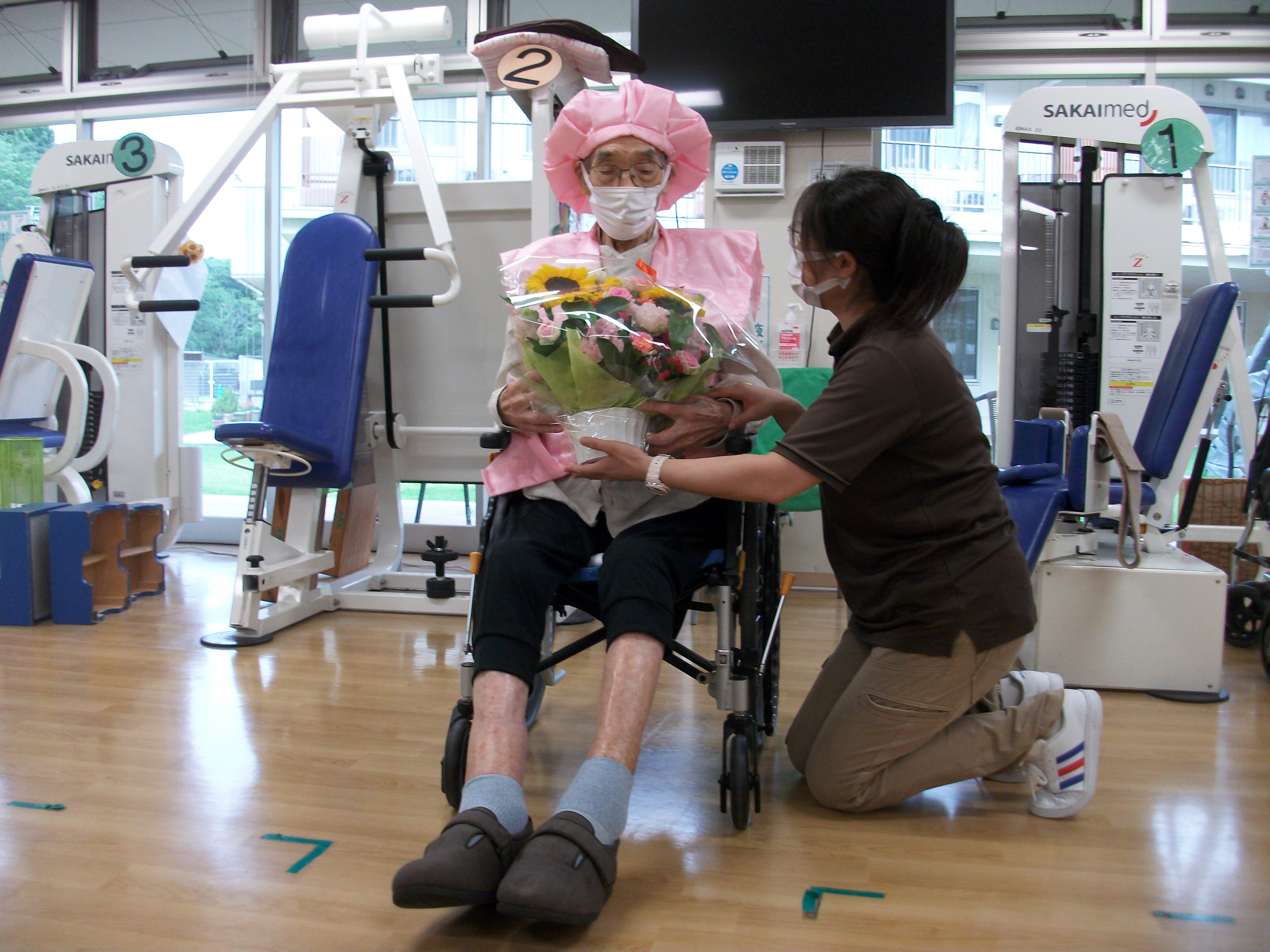 楽リハデイサービスの通っている入居者様が、7月に100歳のお誕生日