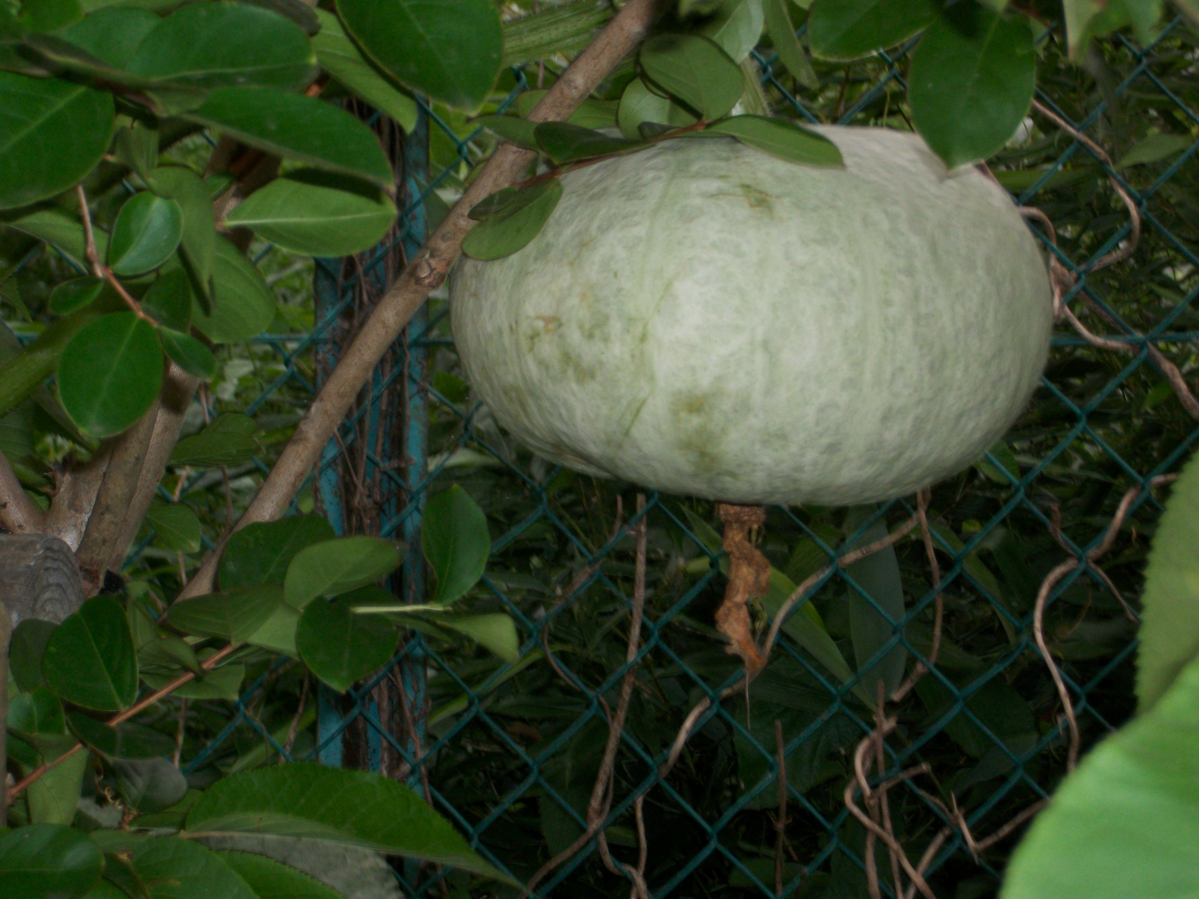このかぼちゃ「空中」で収穫しました、驚きですね。
