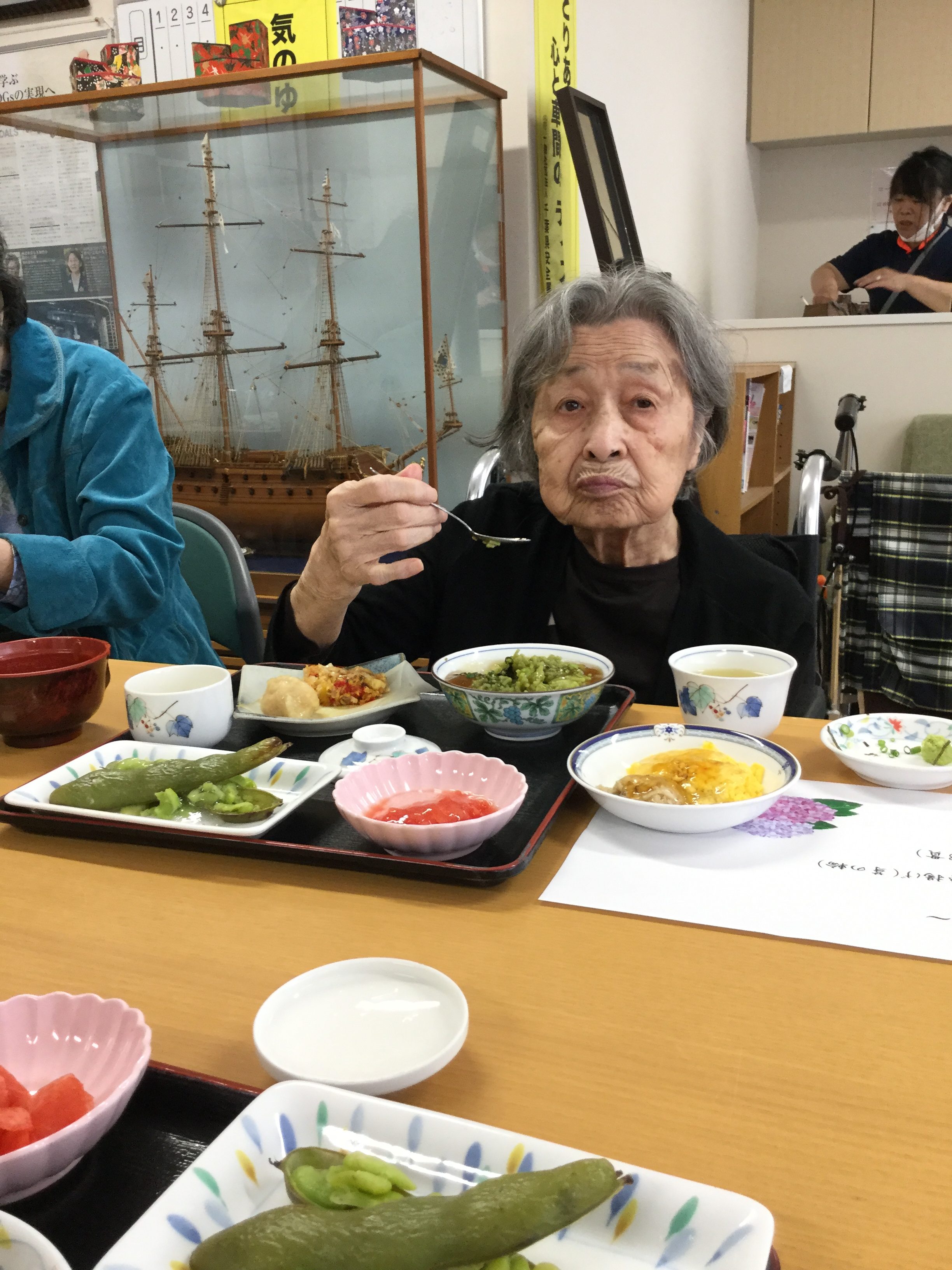 本日の郷土メニューは、なるこ丼と筍の土佐煮、、