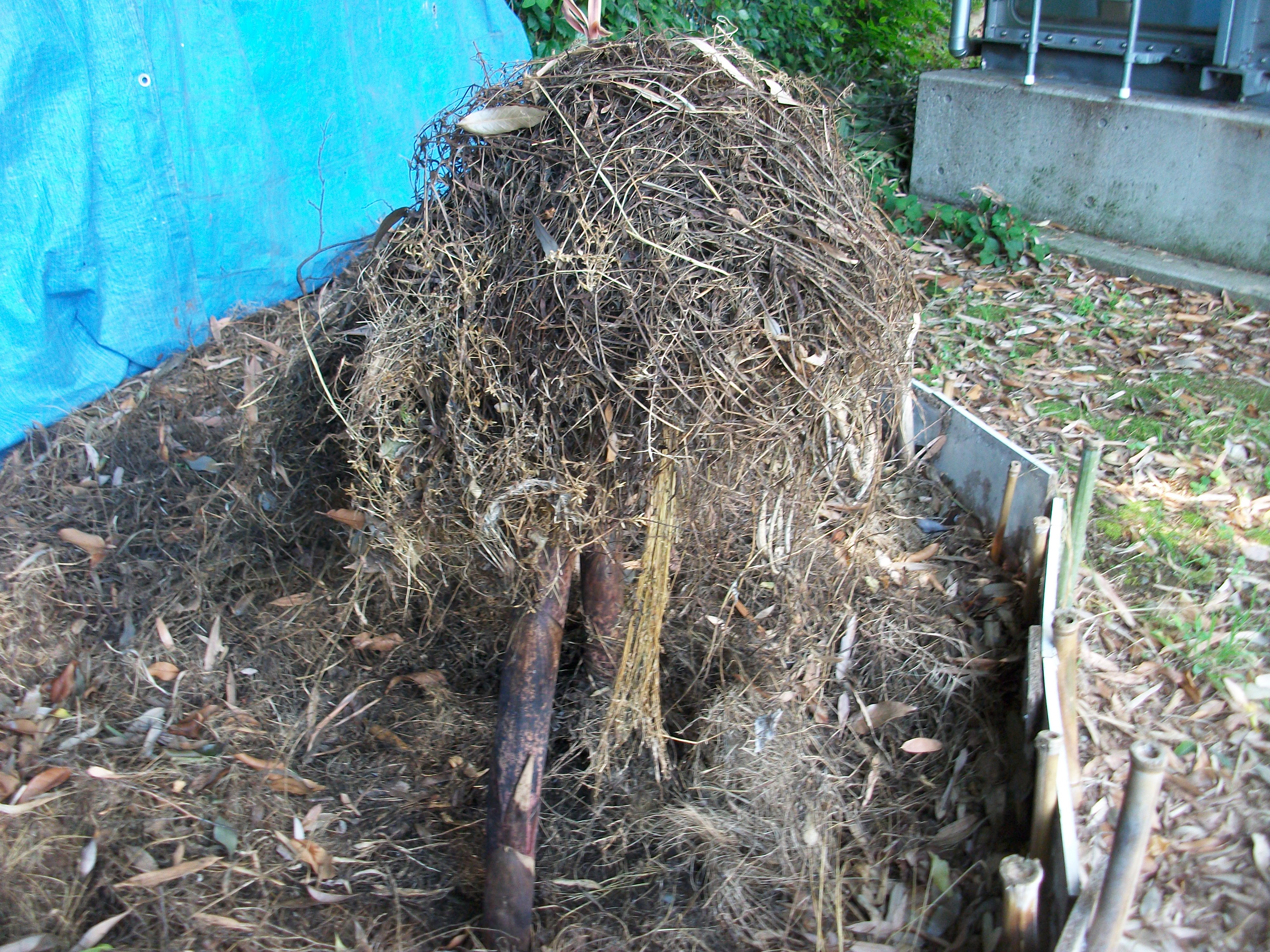 毎年夏になると、隣の竹やぶから地中をはって、芝山から剣山のようにどんどん真竹がでてきます。