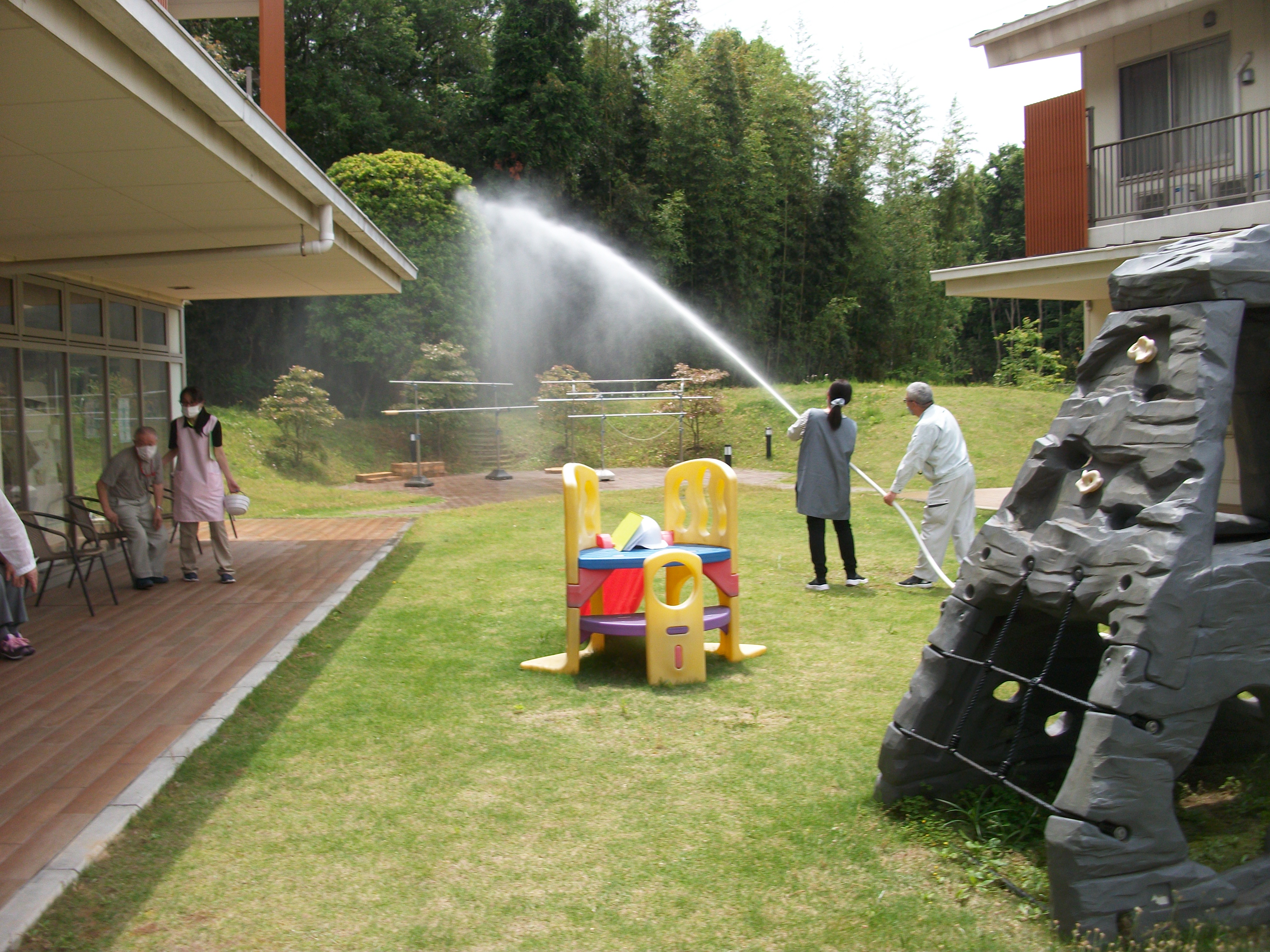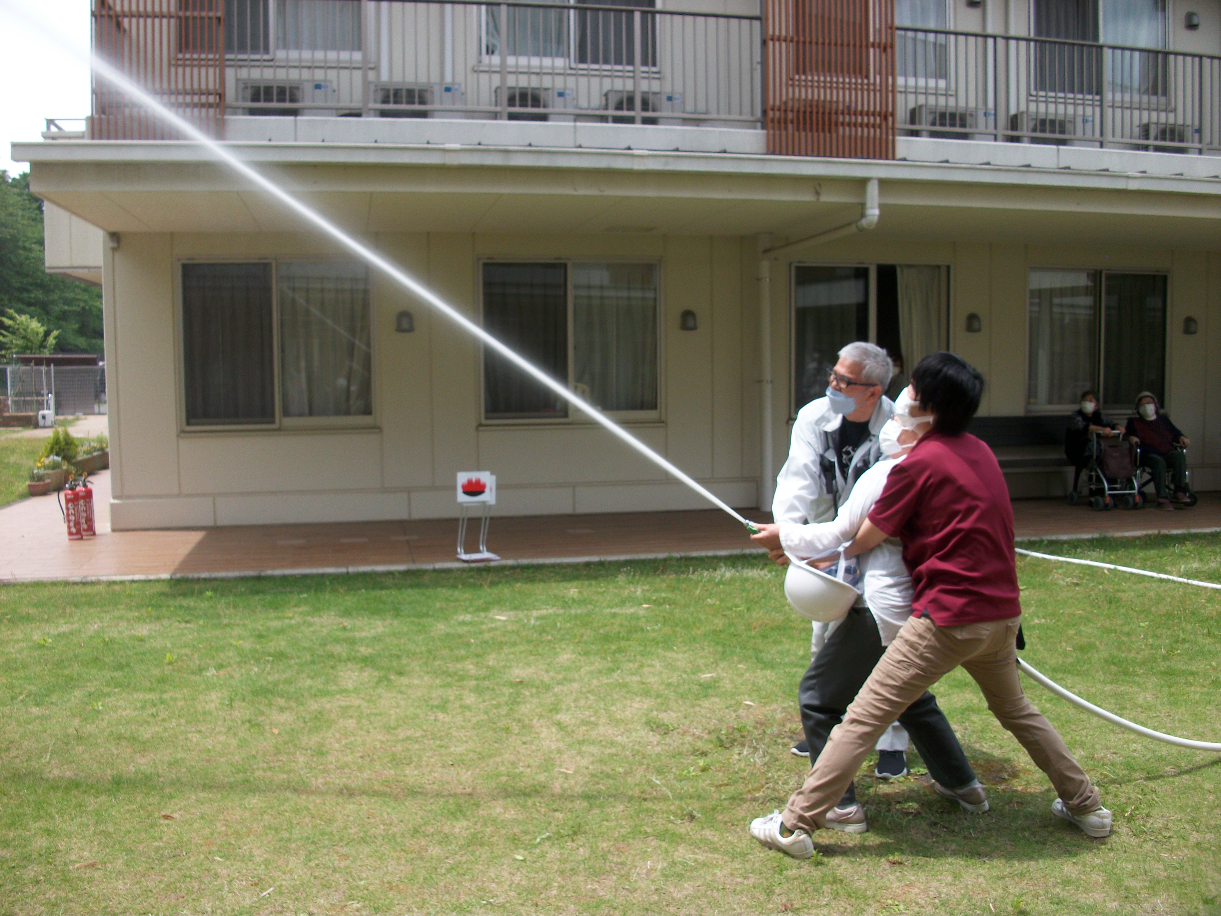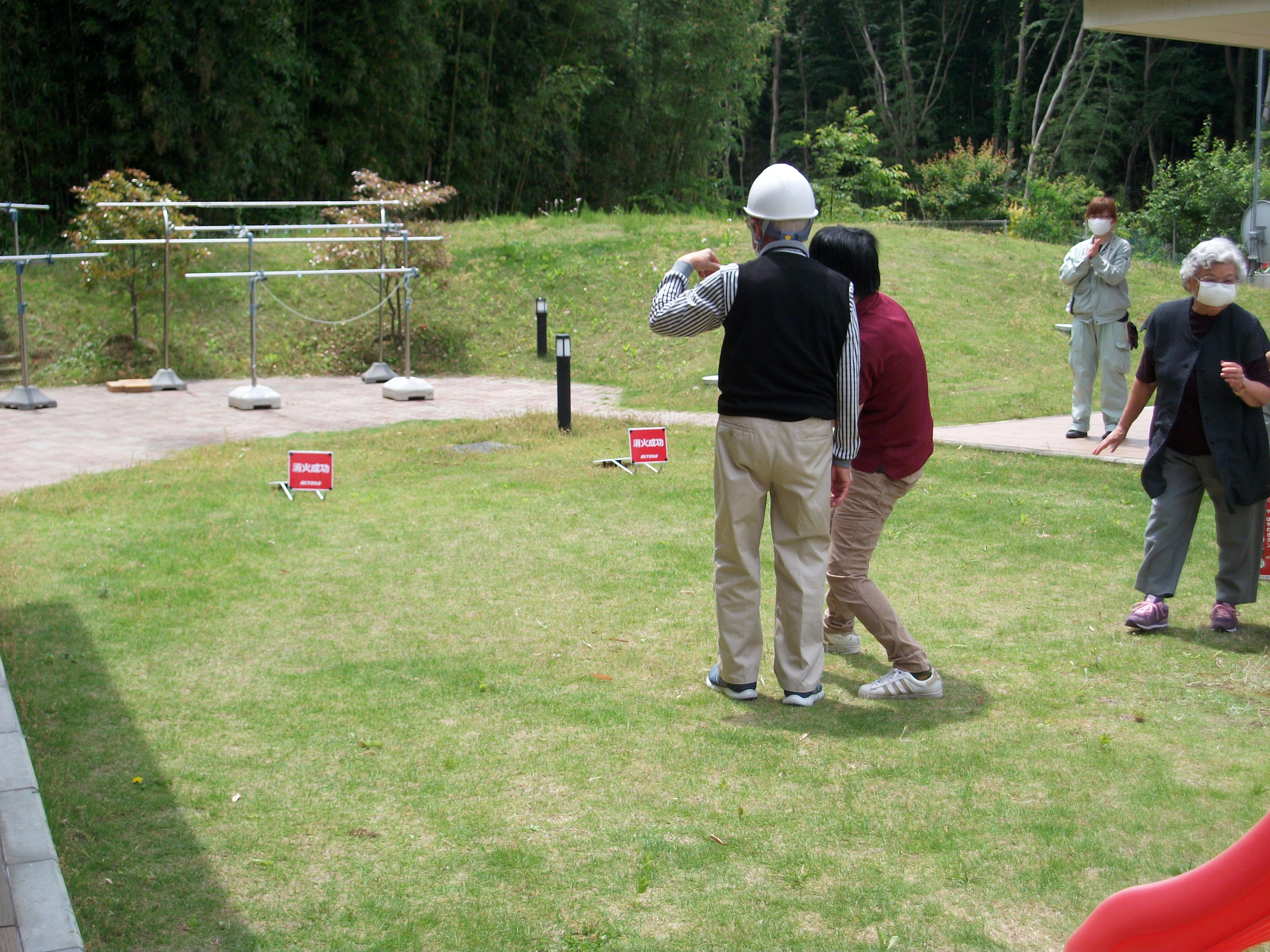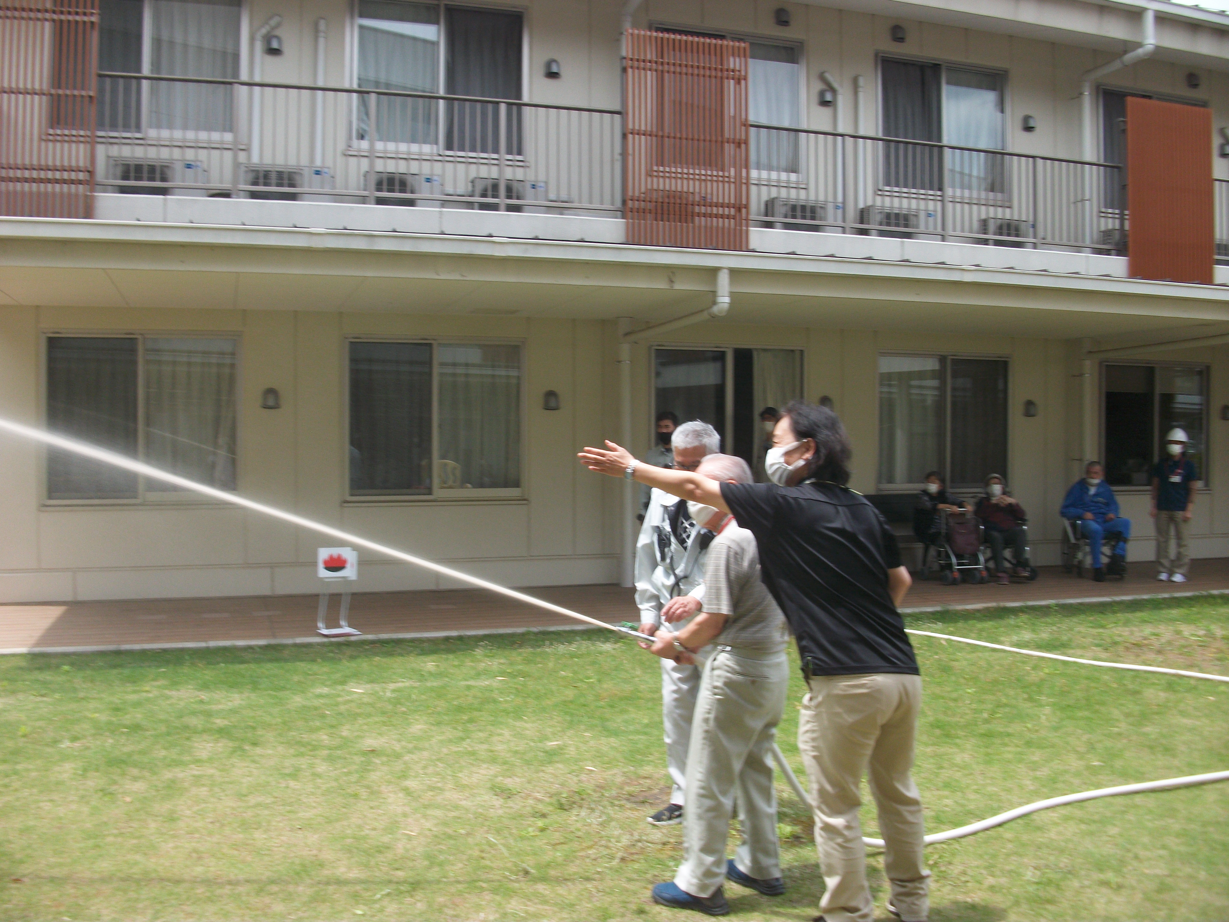 お天気もよく、避難訓練には沢山の入居者様・利用者様がスタッフと一緒に参加してくれました!