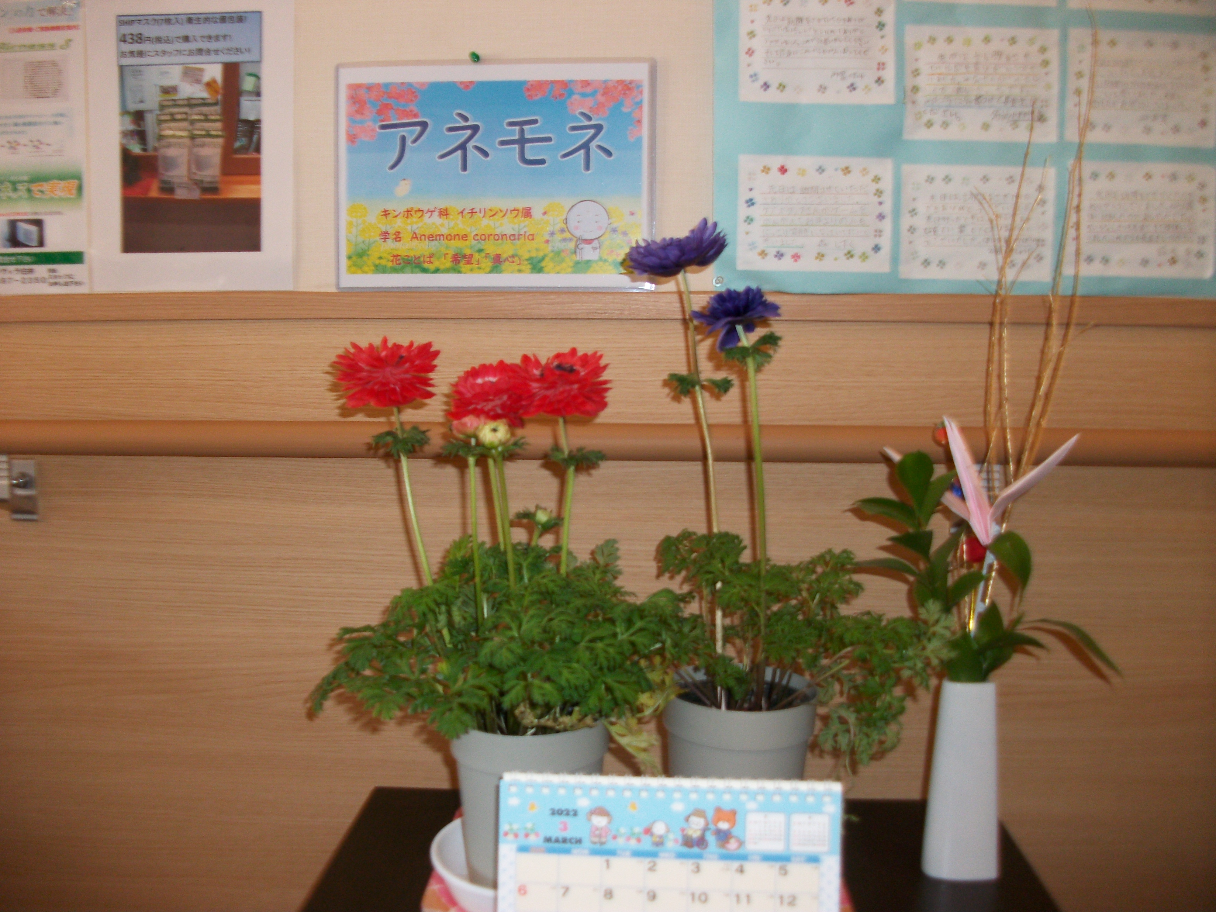 今月のお花は、アネモネです。