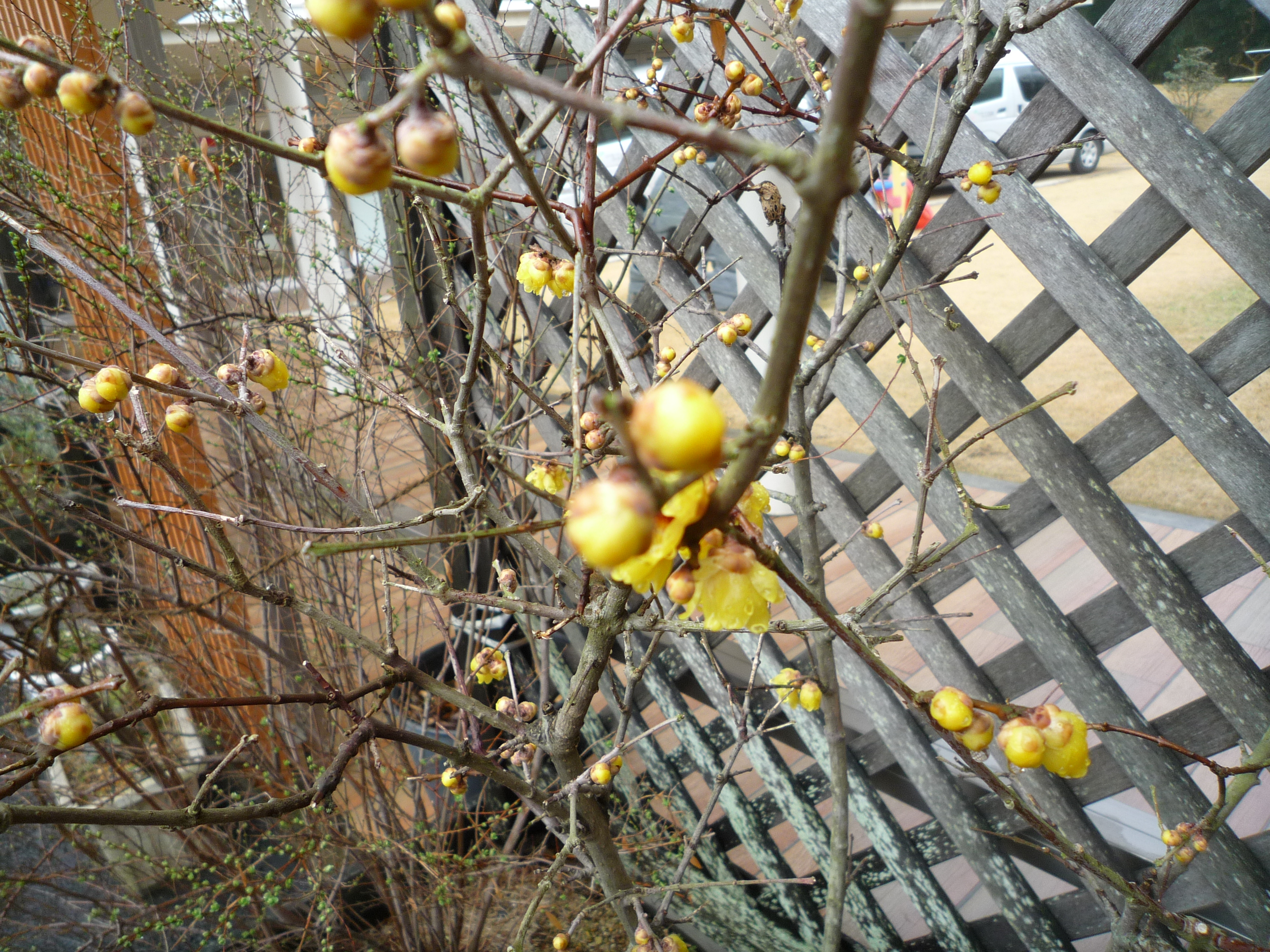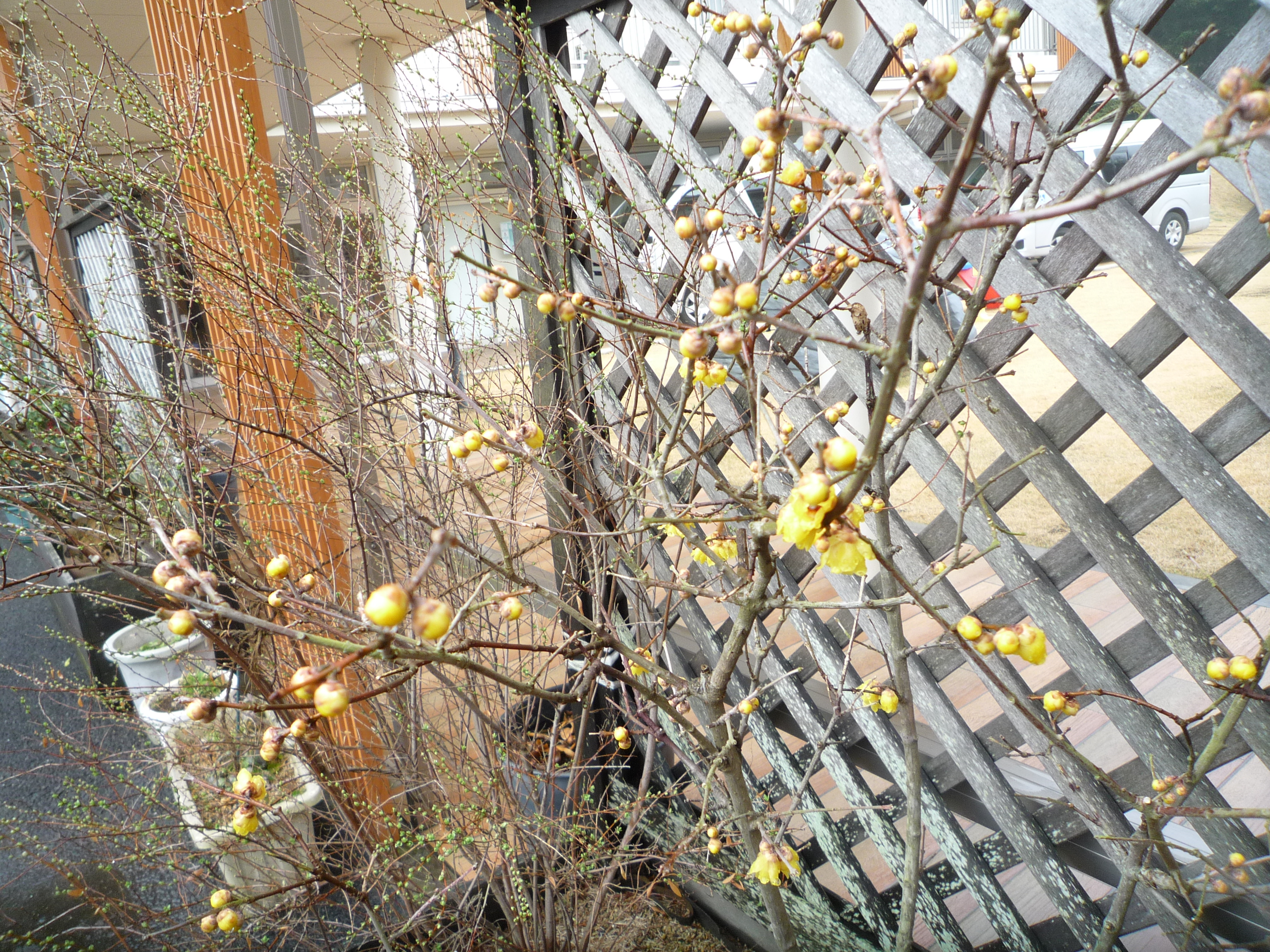 ロウバイの黄色と、じんちょうげの赤色のつぼみが膨らんできました!