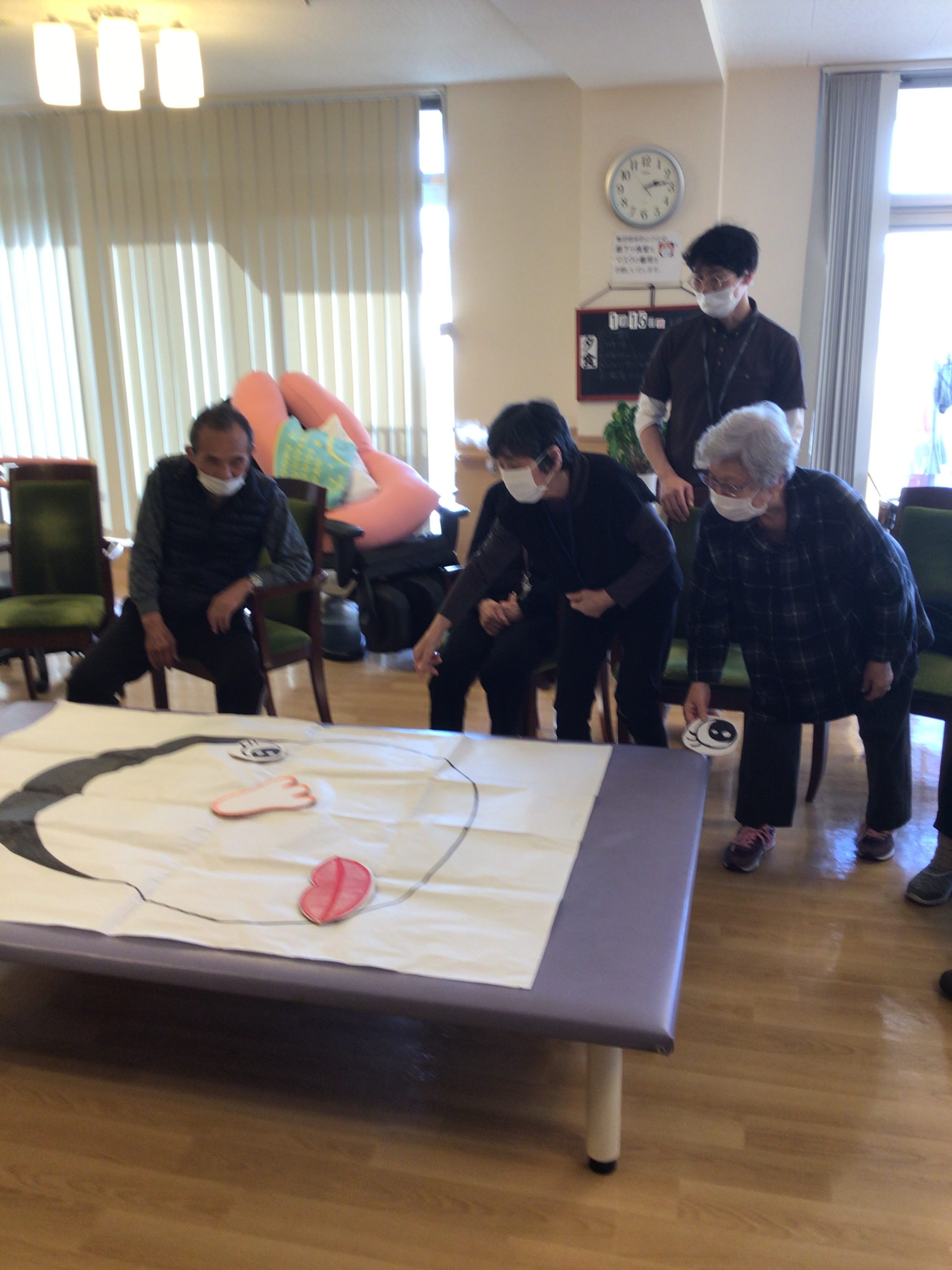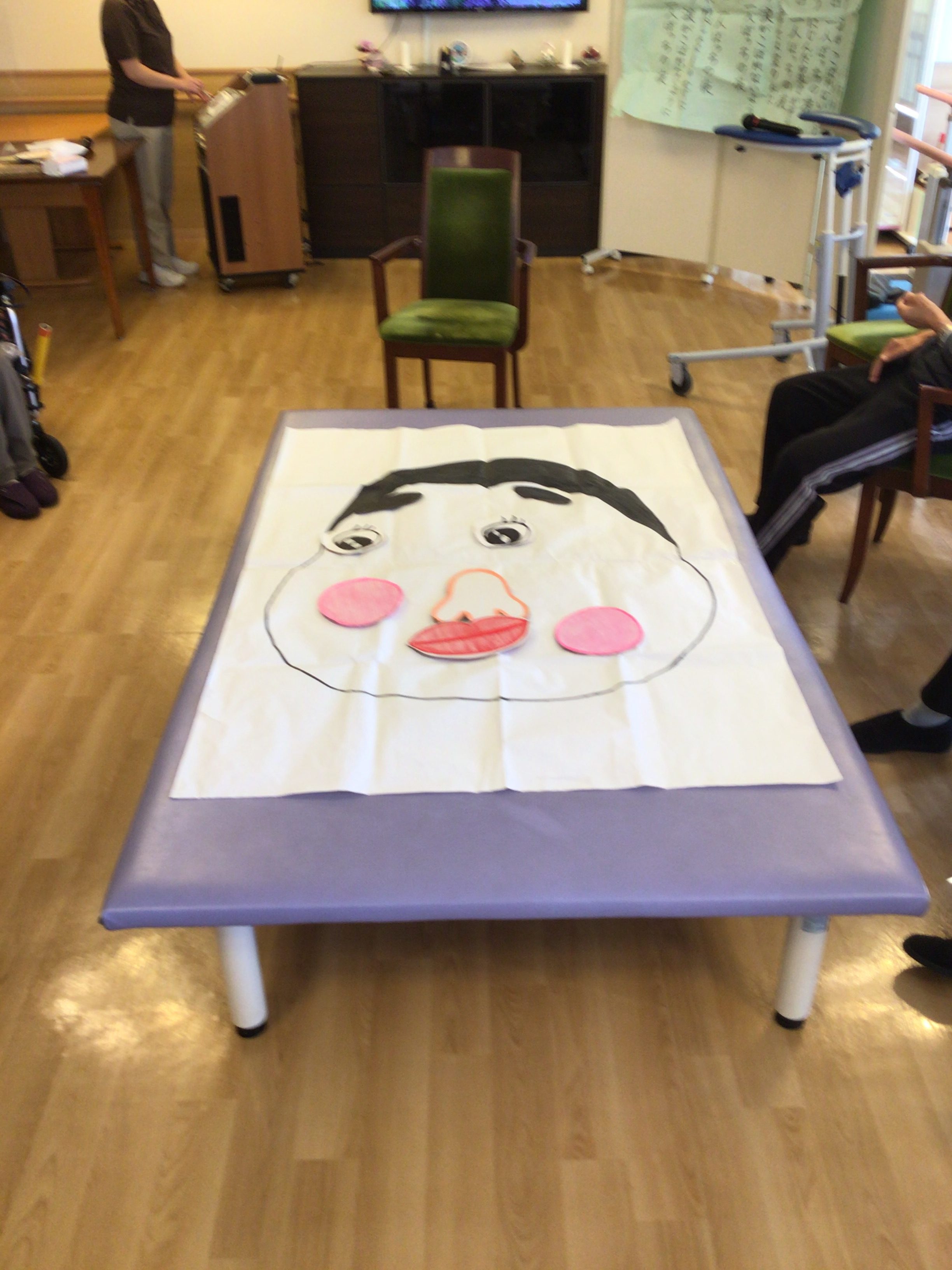 次は、大きな福笑いを皆さんでつくりました。