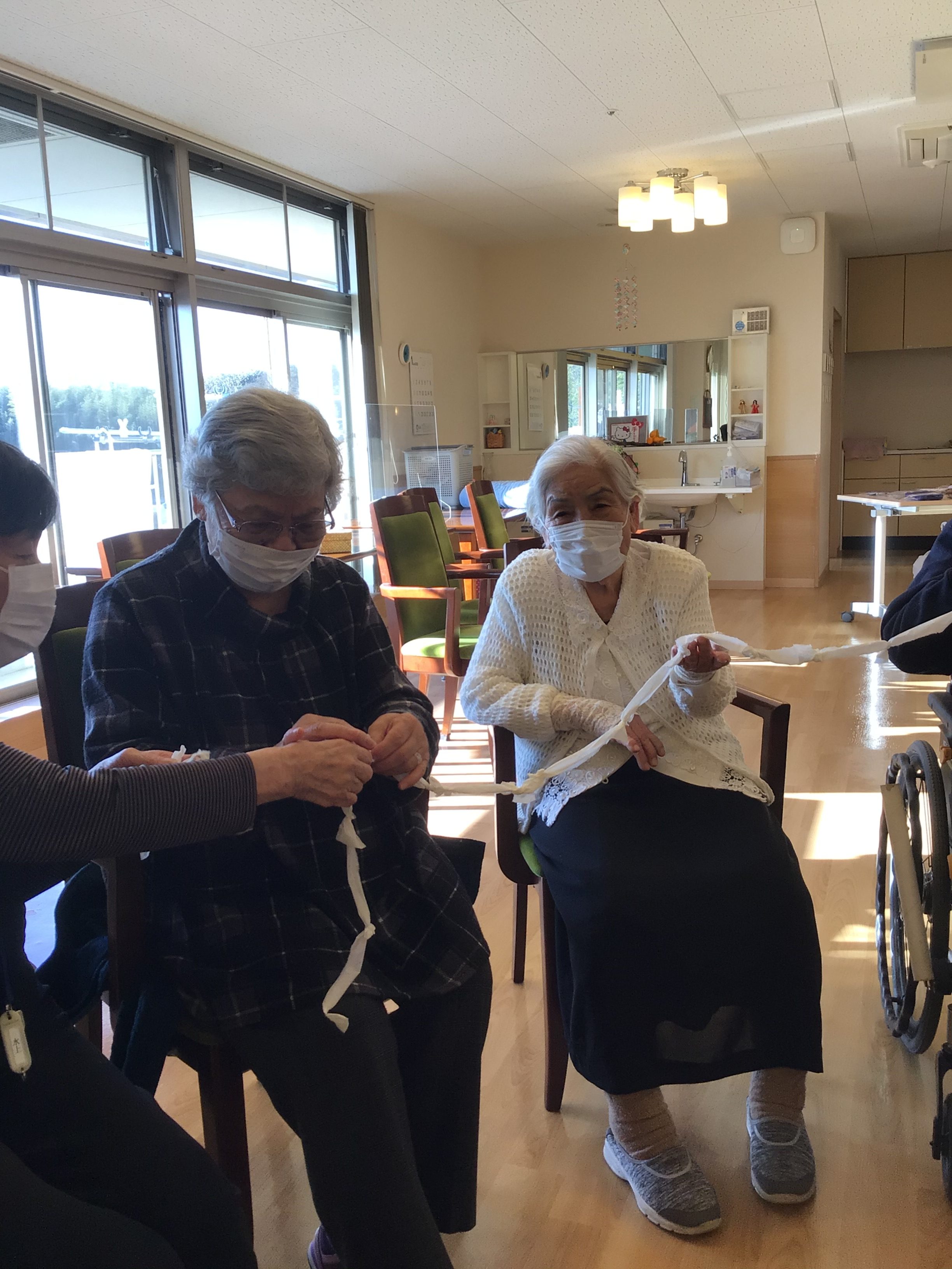 最後は並んでティッシュつなぎレースです!