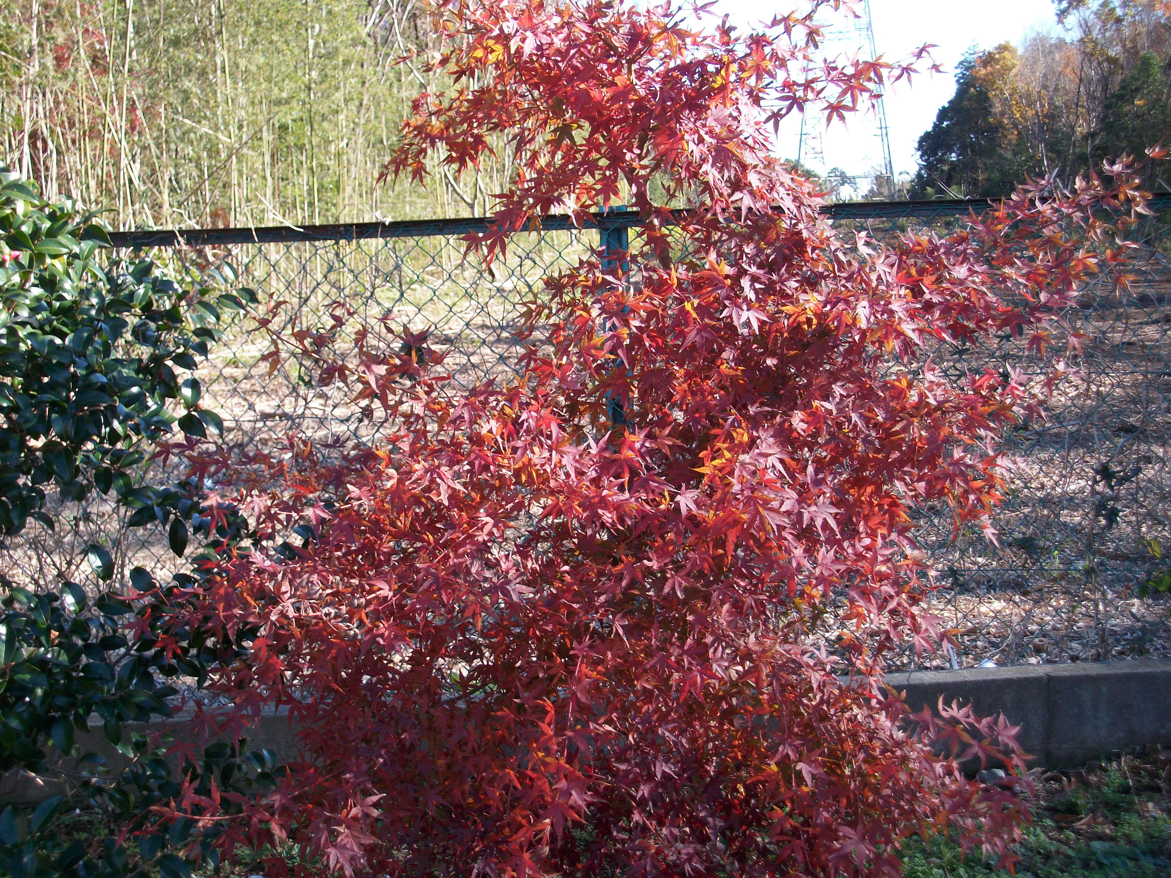 一本の紅葉の木が赤くなりましたので皆さん季節を楽しみながら