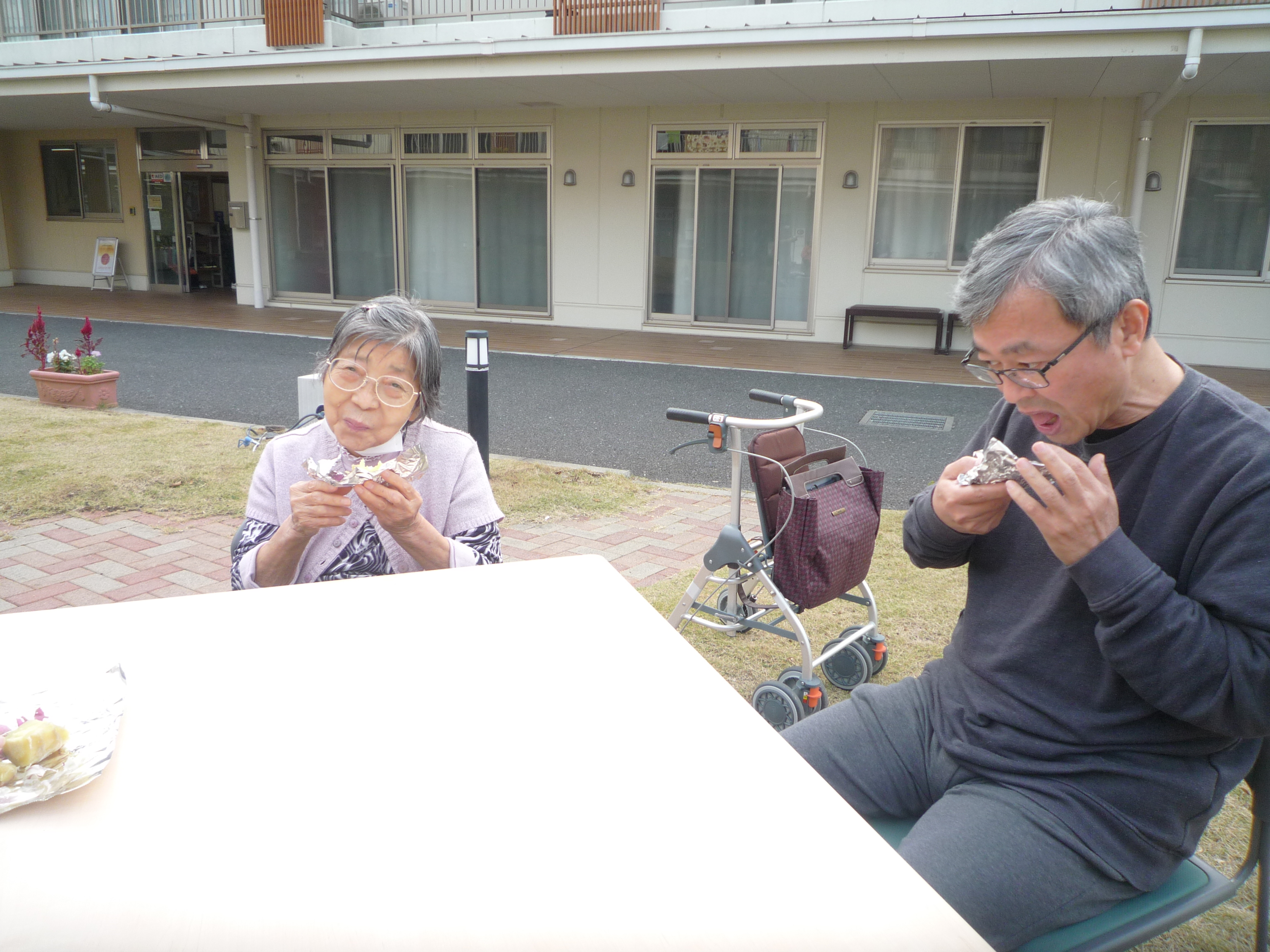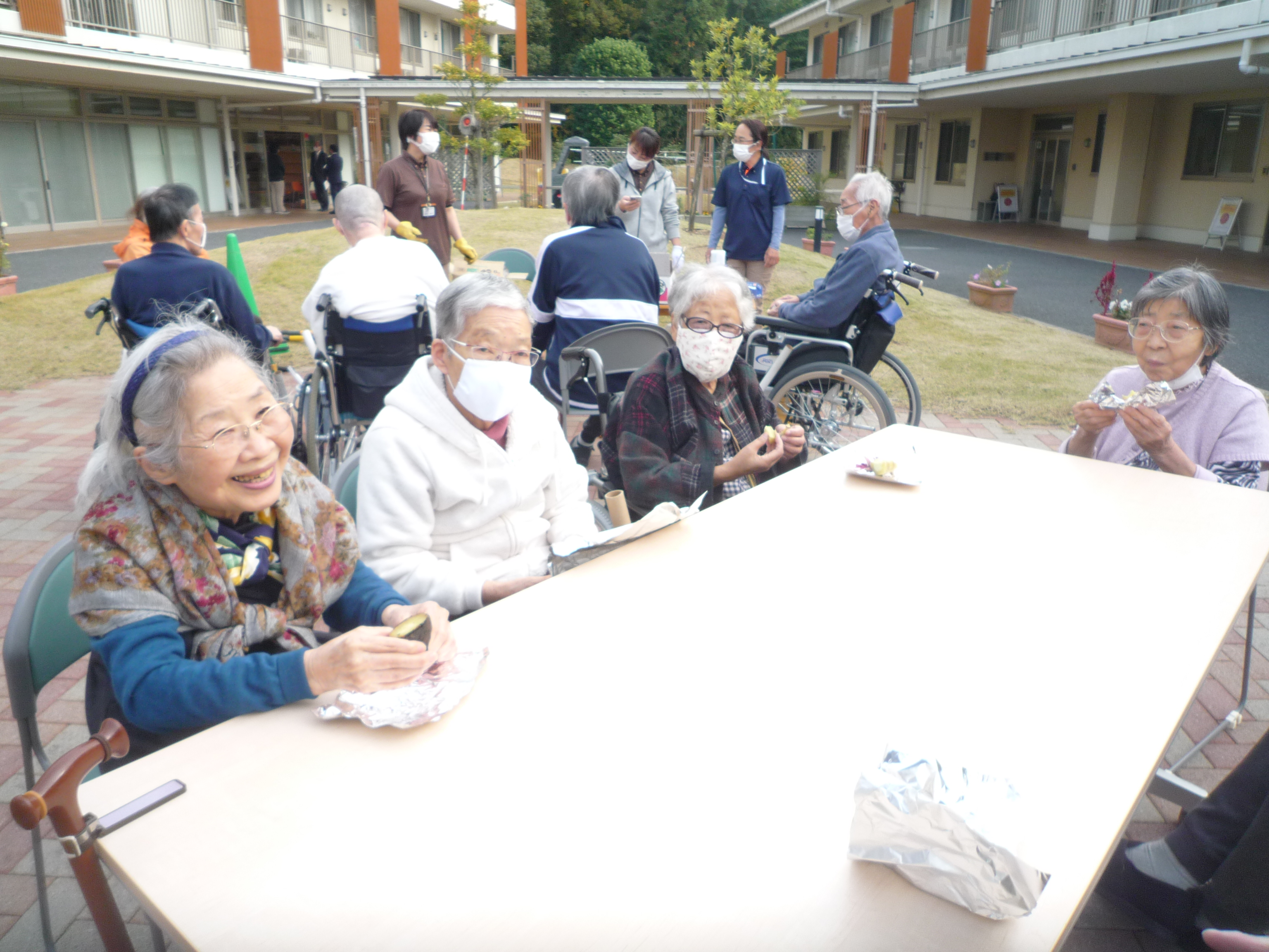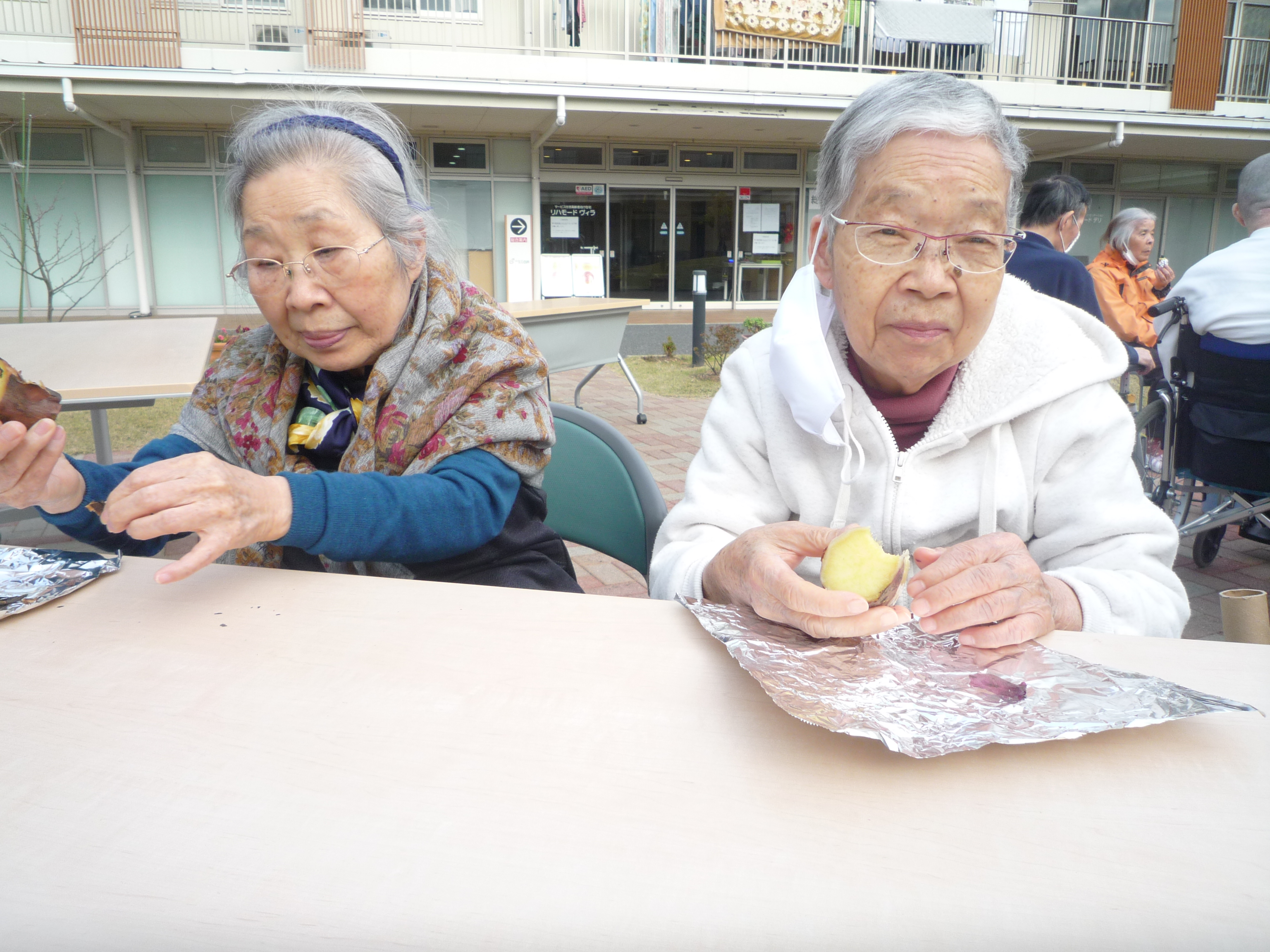 お昼から火おこしをし、一時間程でおいしい焼き芋の完成です。