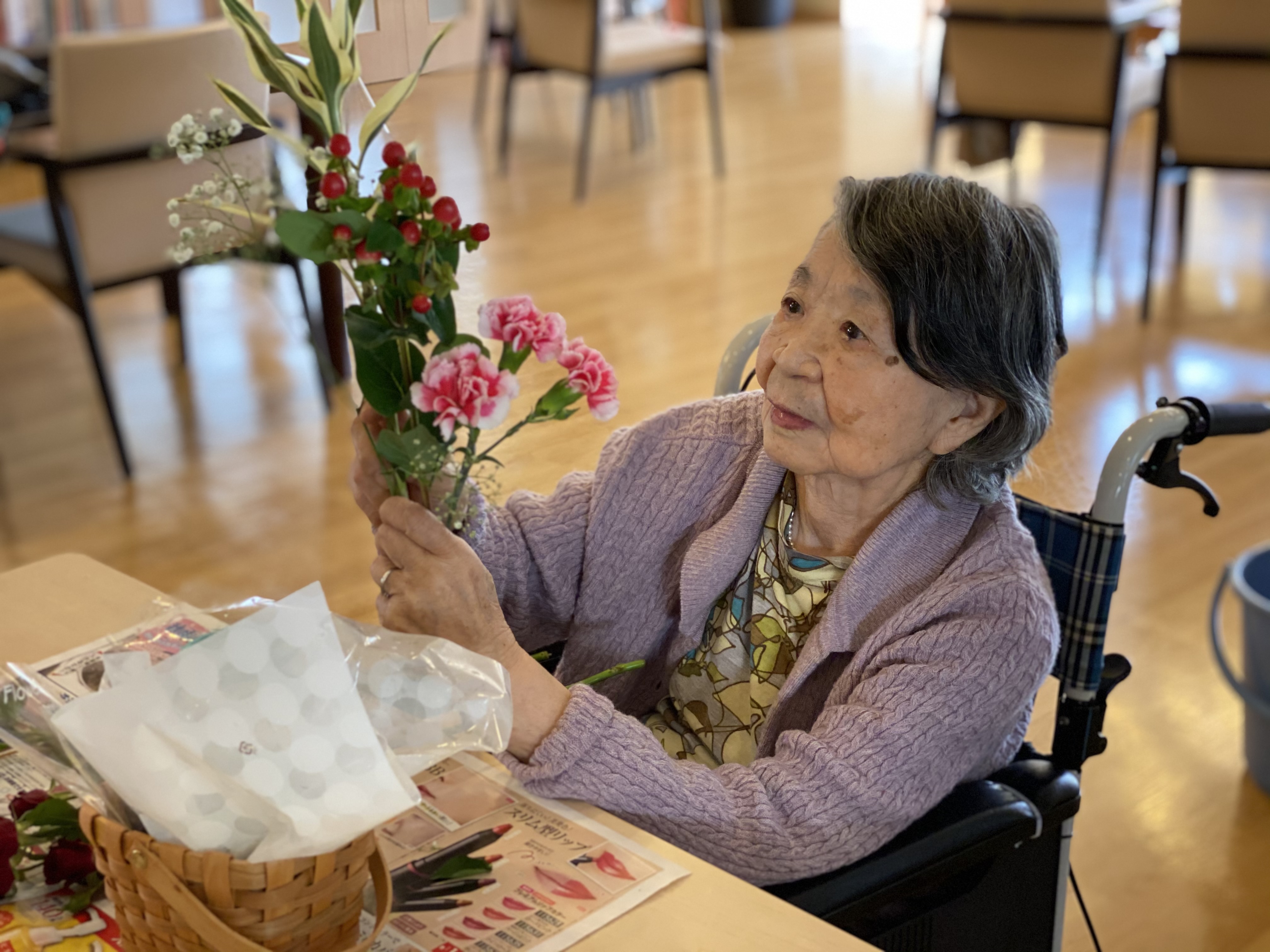 まずは、みなさん思い思いにお花を選び、そこからオアシスにお花を生け始めました。