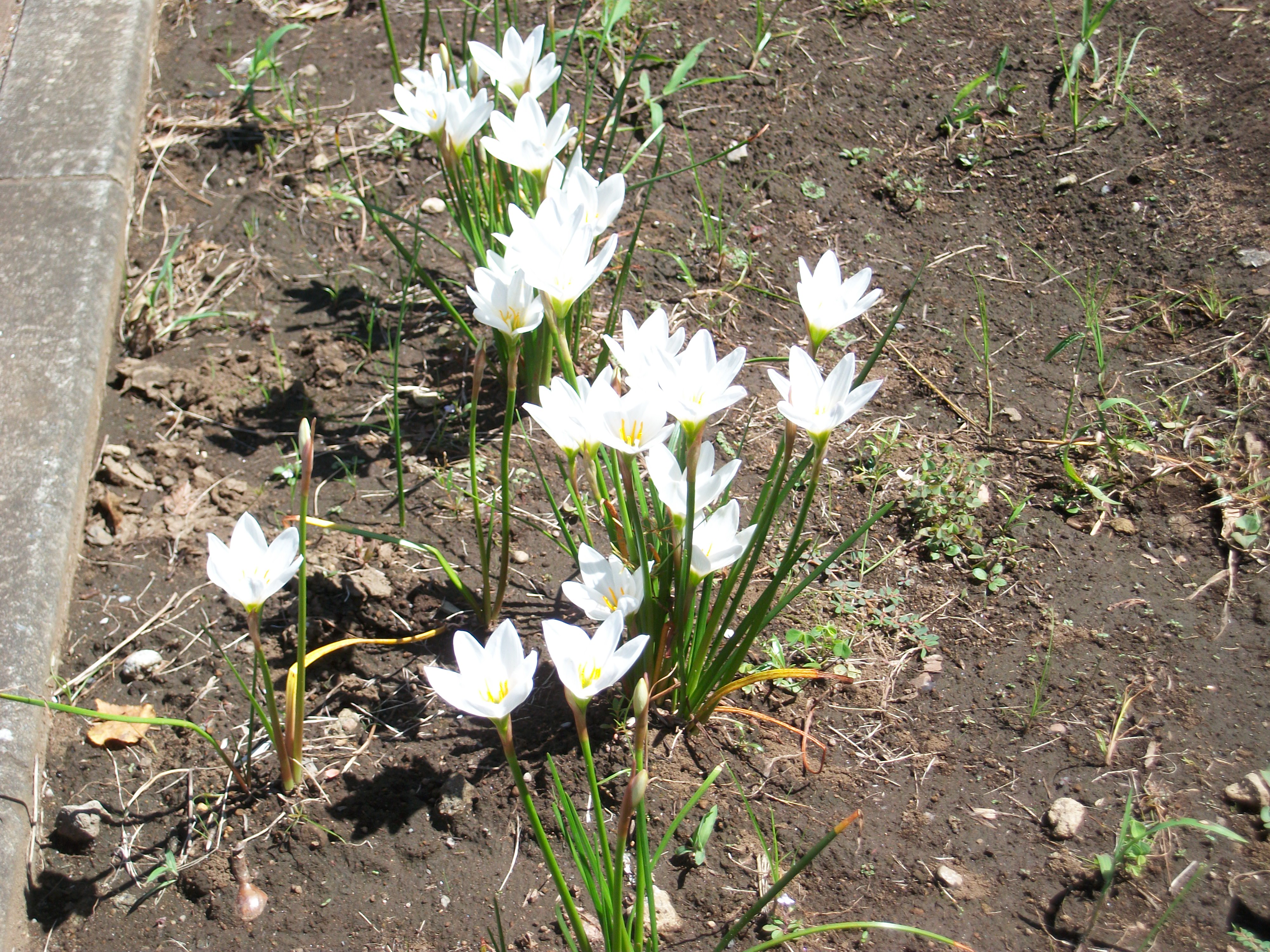 畑には白い花の「ゼフィランサス」