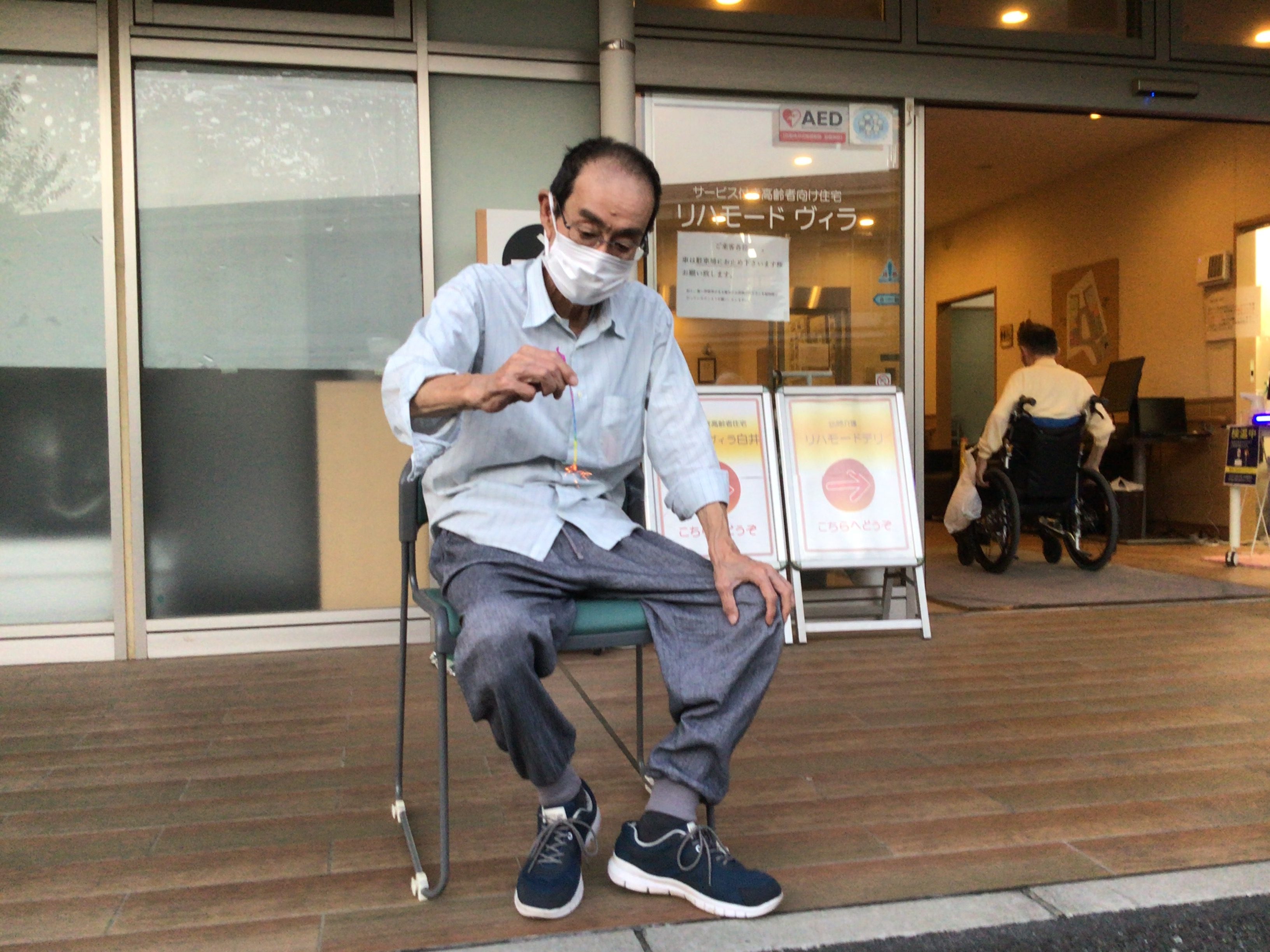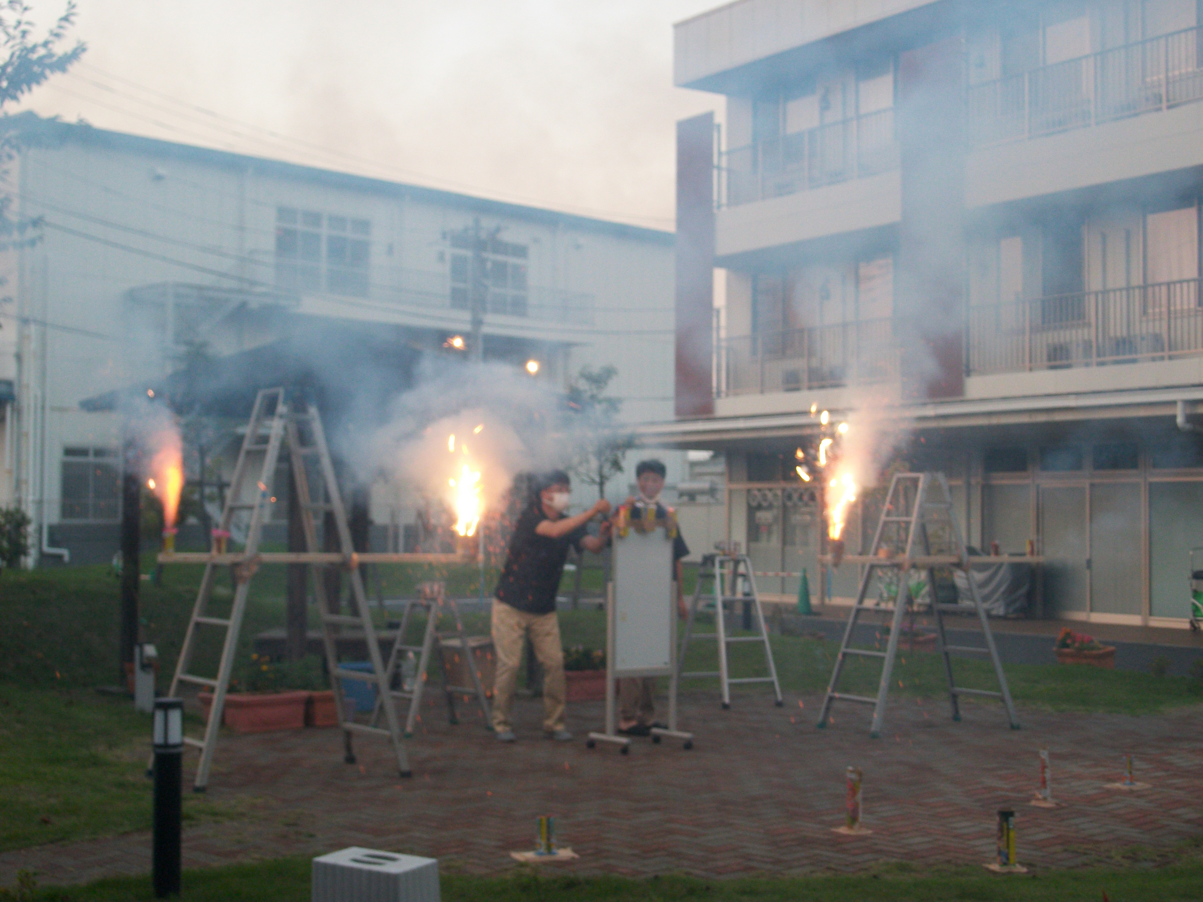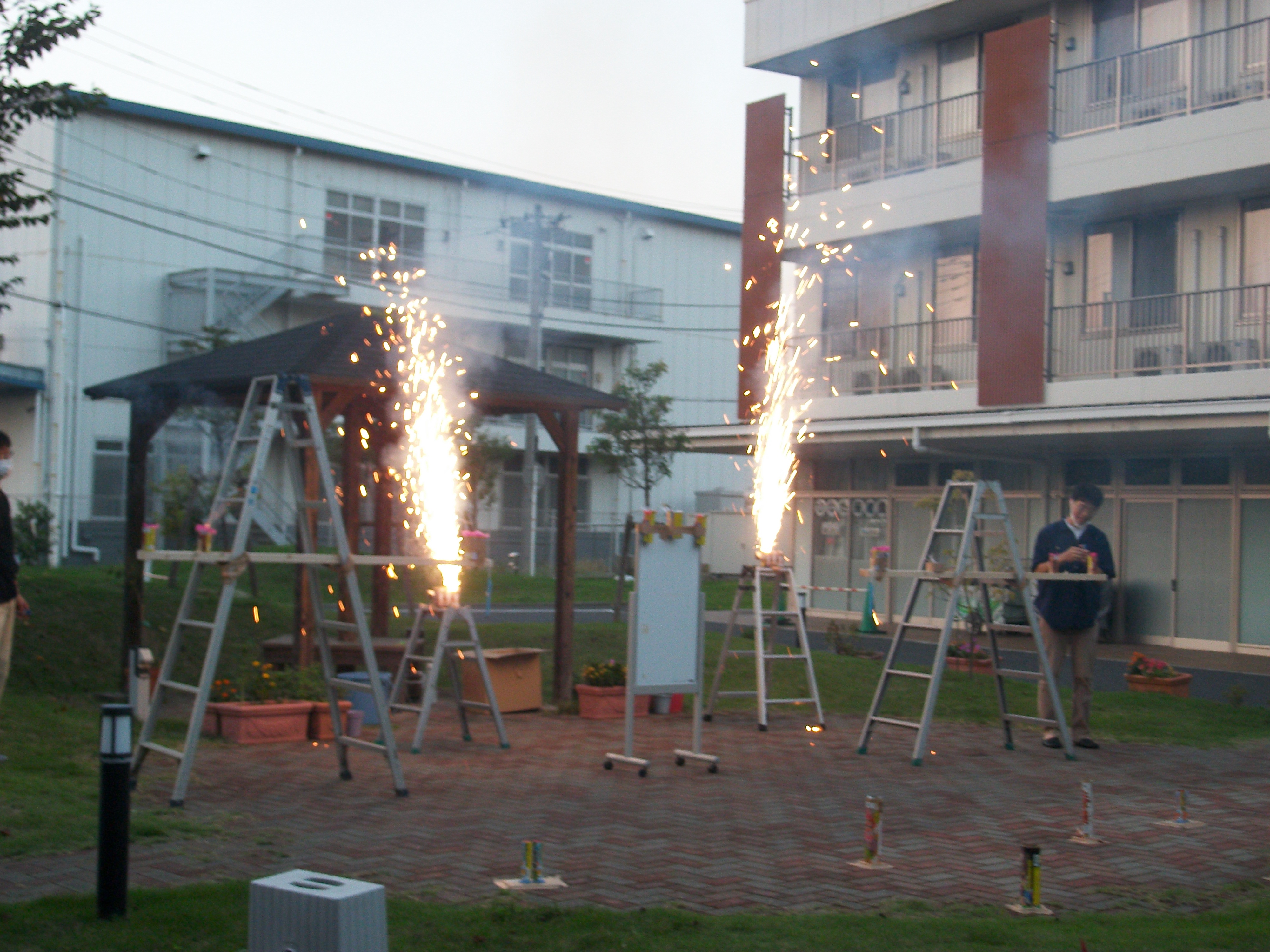 ケアの利用者様も一緒に仕掛け花火を一緒に観賞しました。
