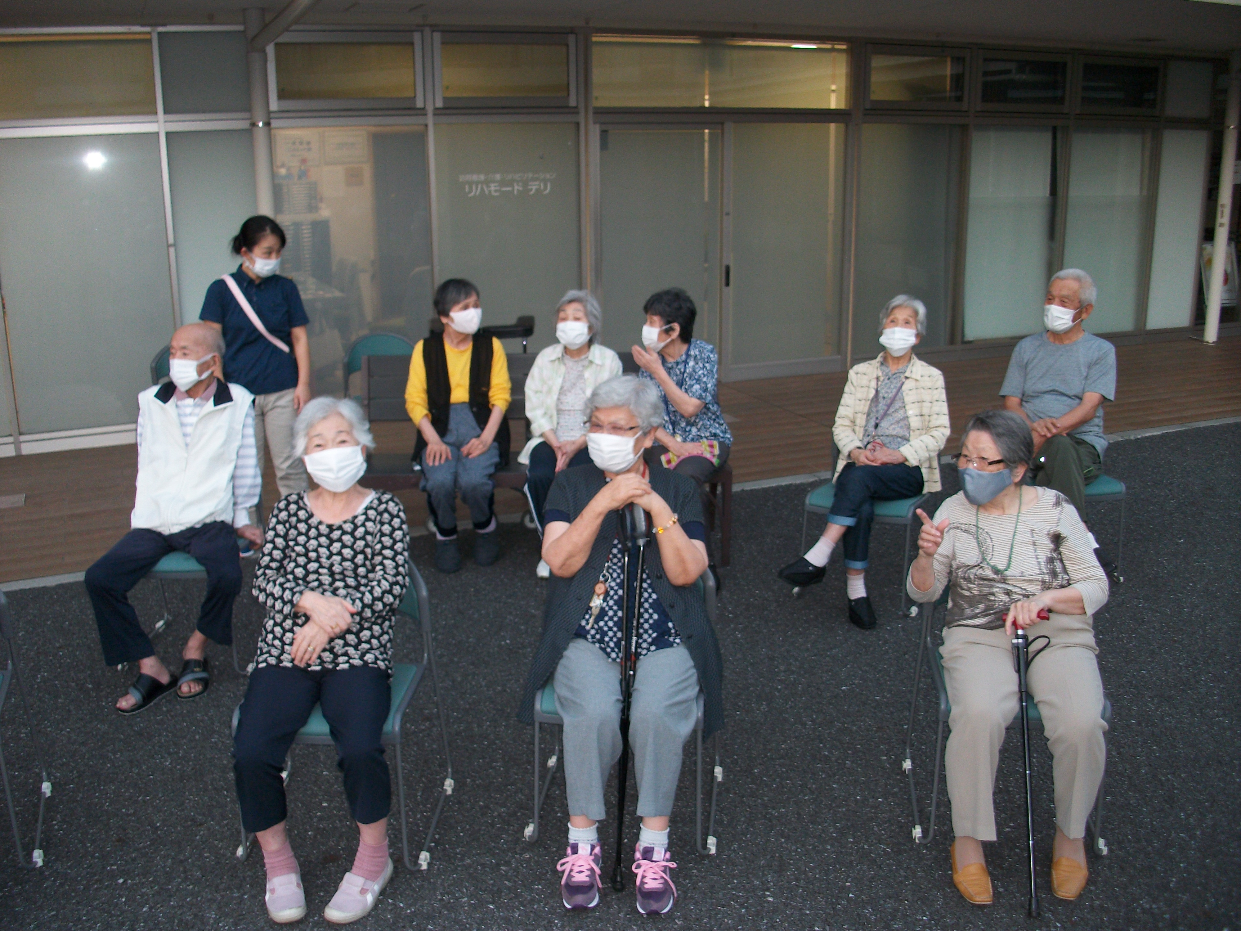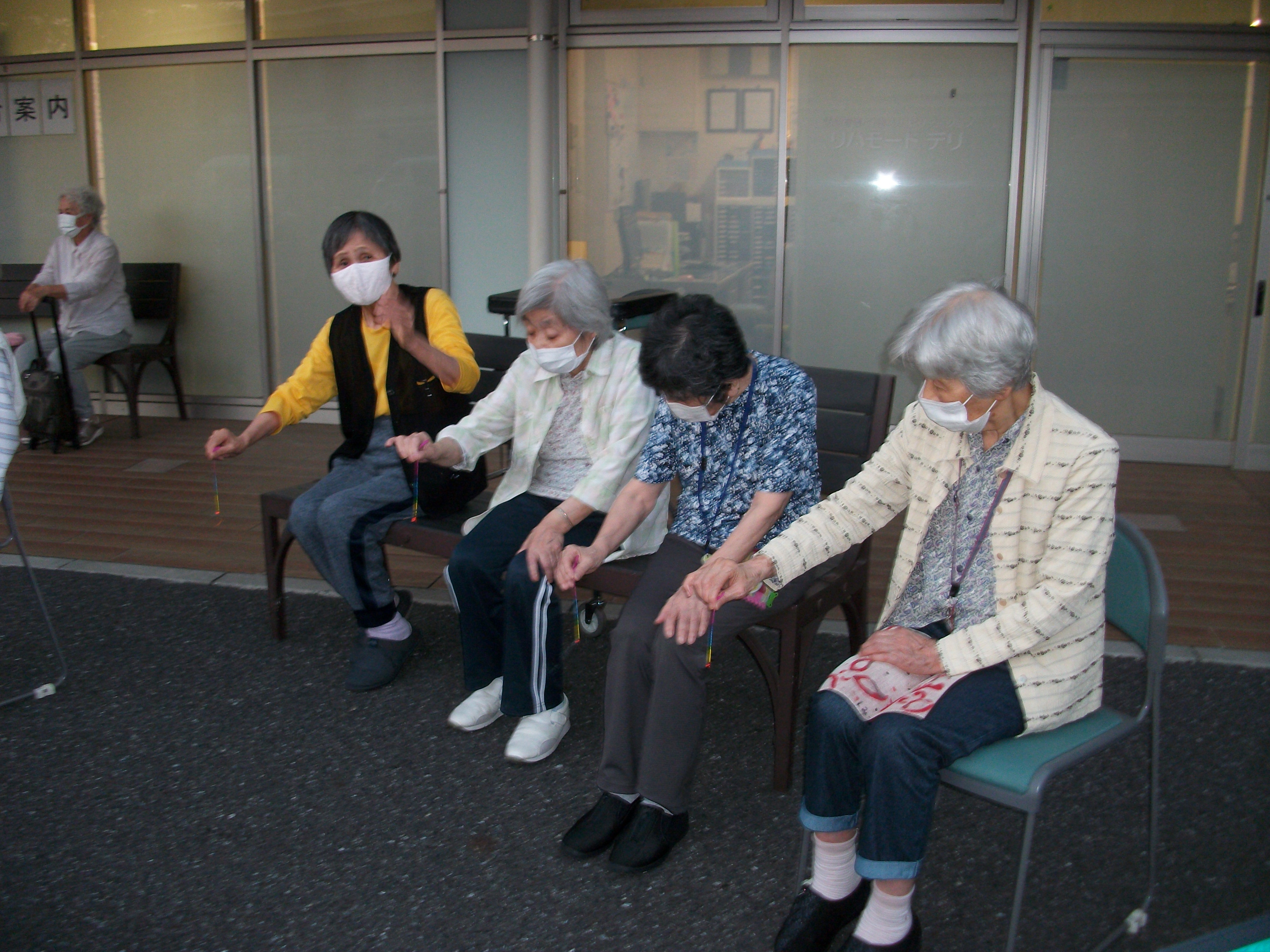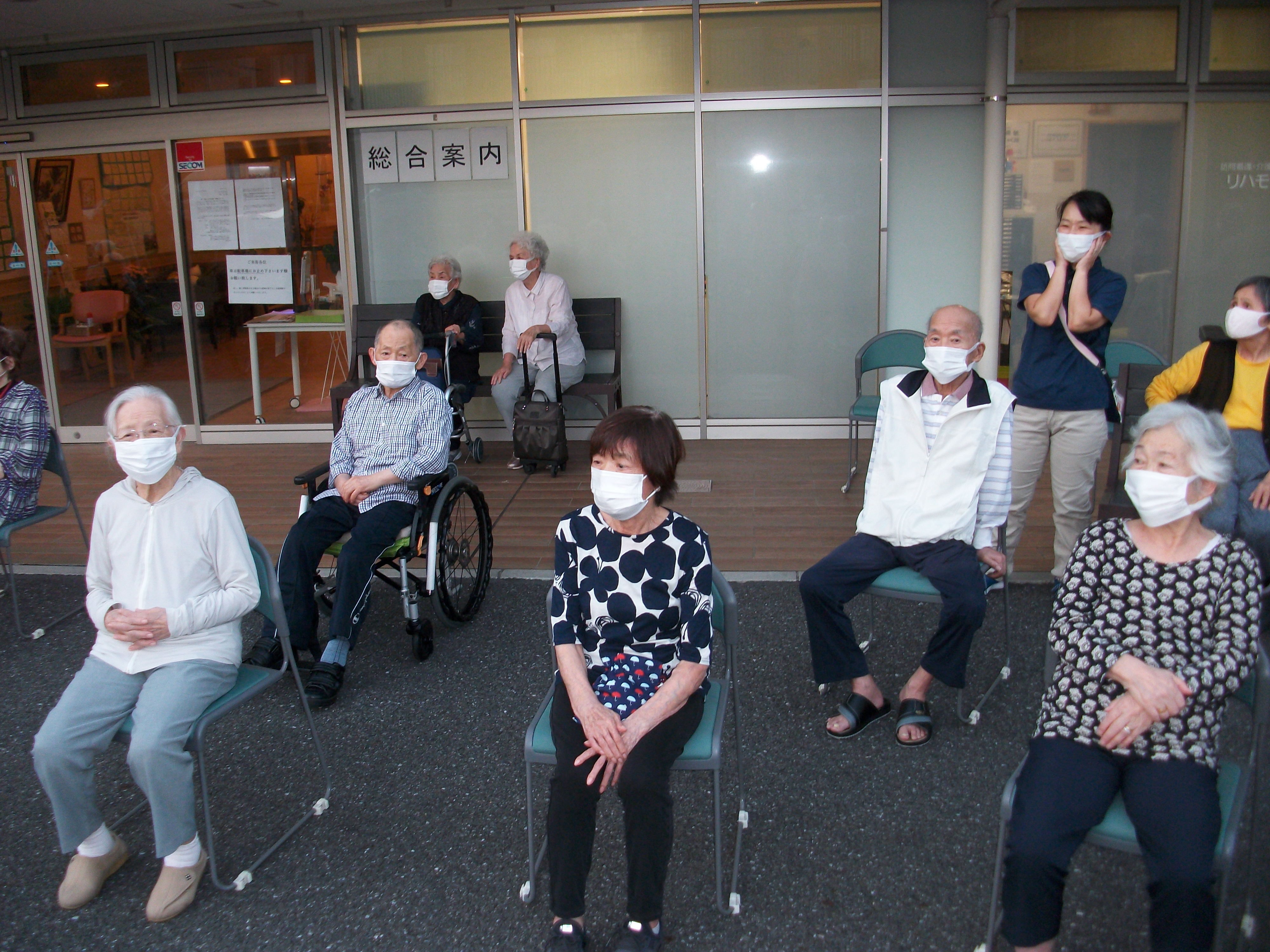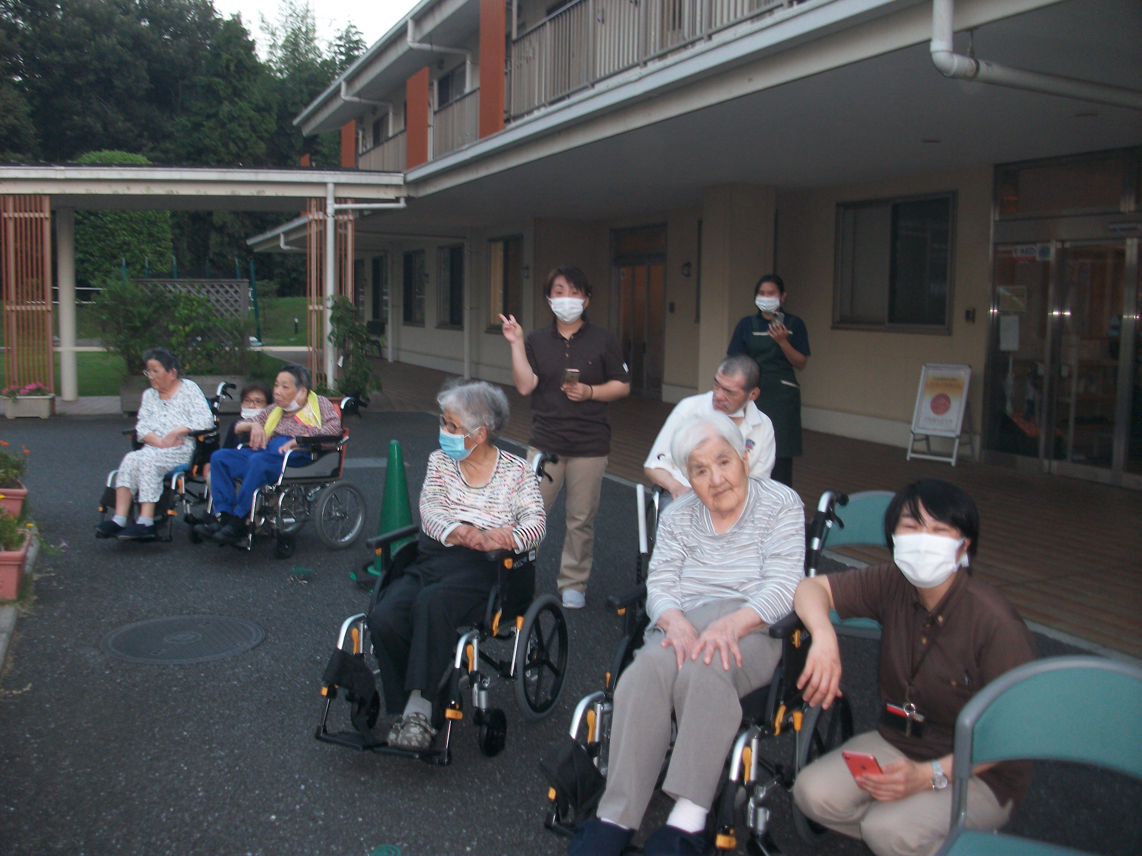ケアの利用者様も一緒に仕掛け花火を一緒に観賞しました。