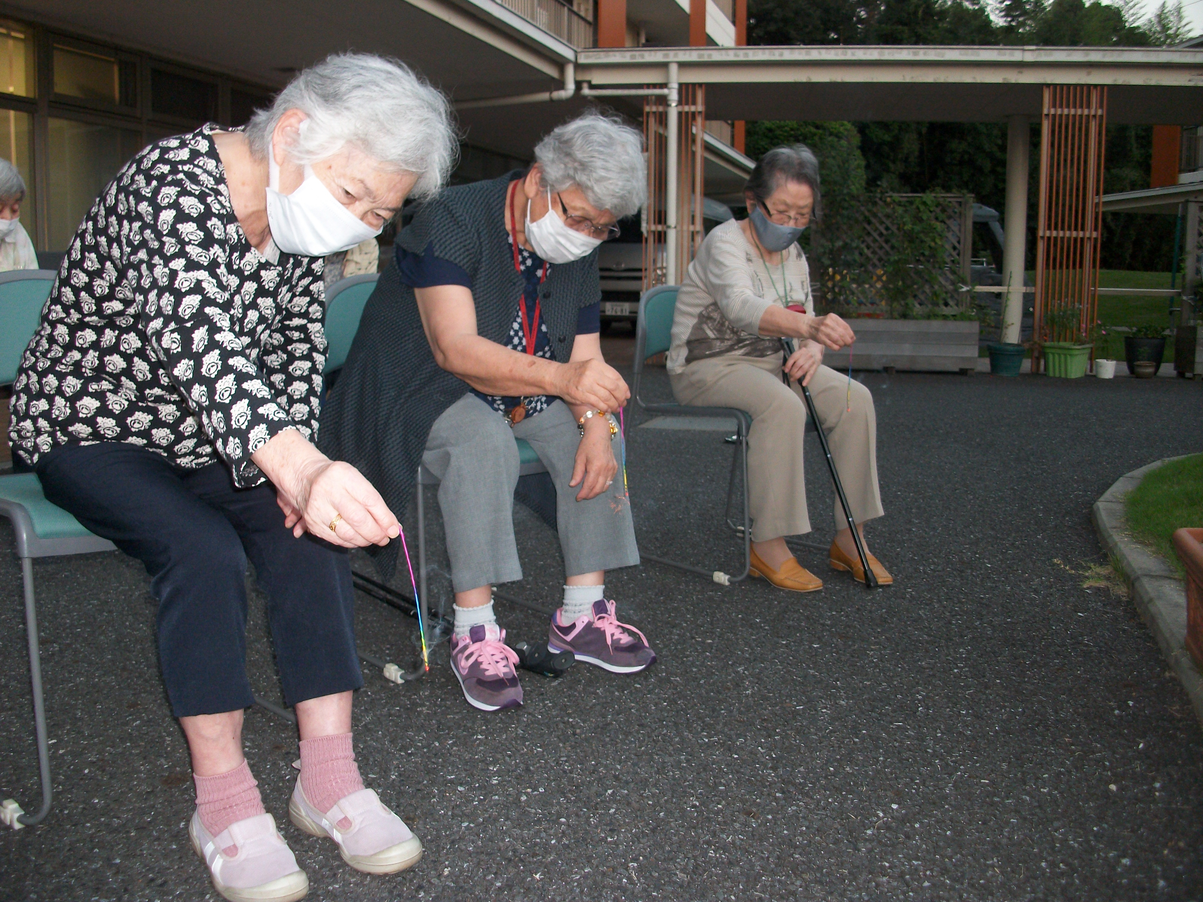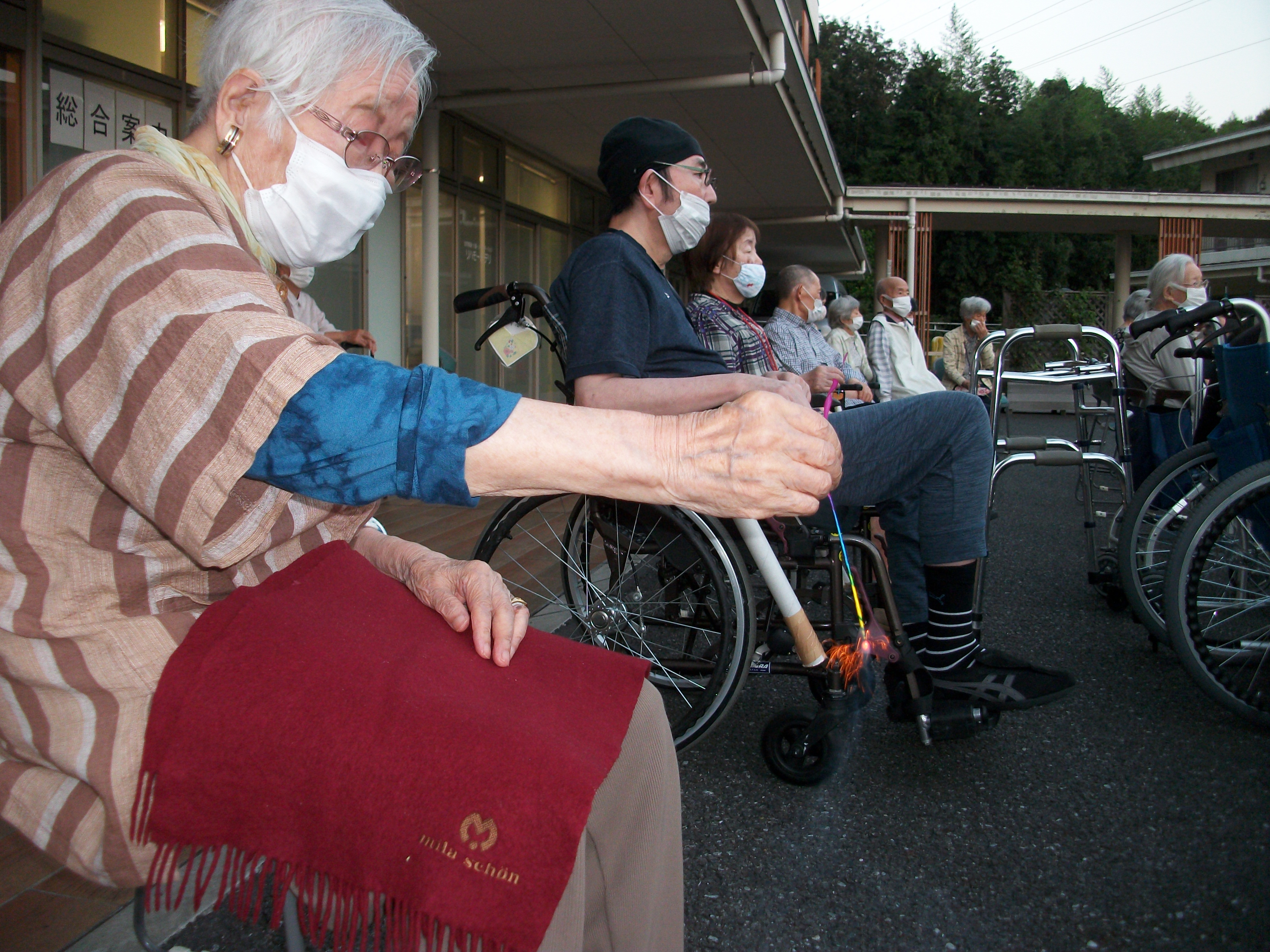 今度は、入居者様一人一人に線香花火をお渡しして、点火!