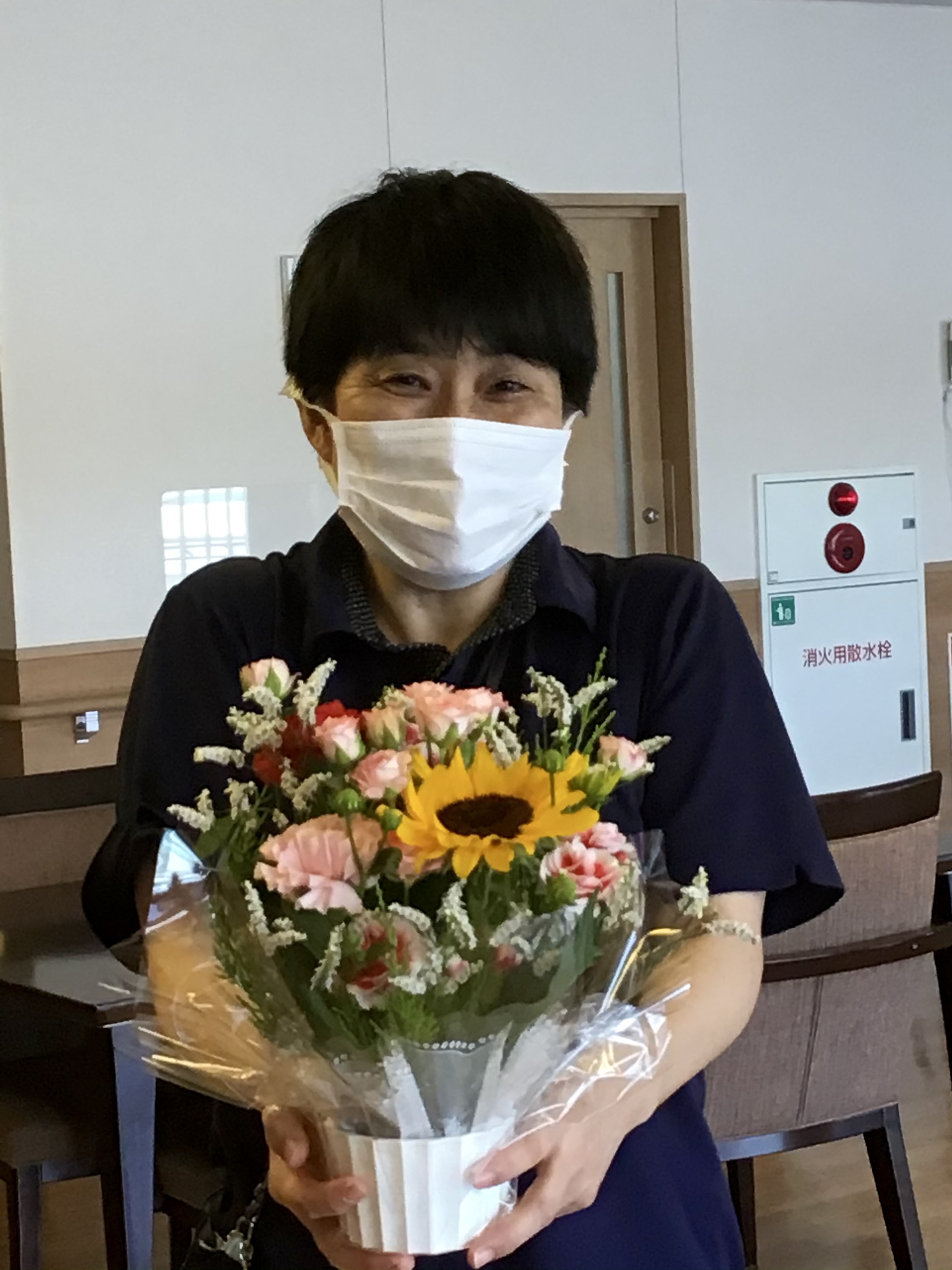 「元気に笑顔で精いっぱい頑張ります。利用者さまと楽しく過ごしたいと思います!」