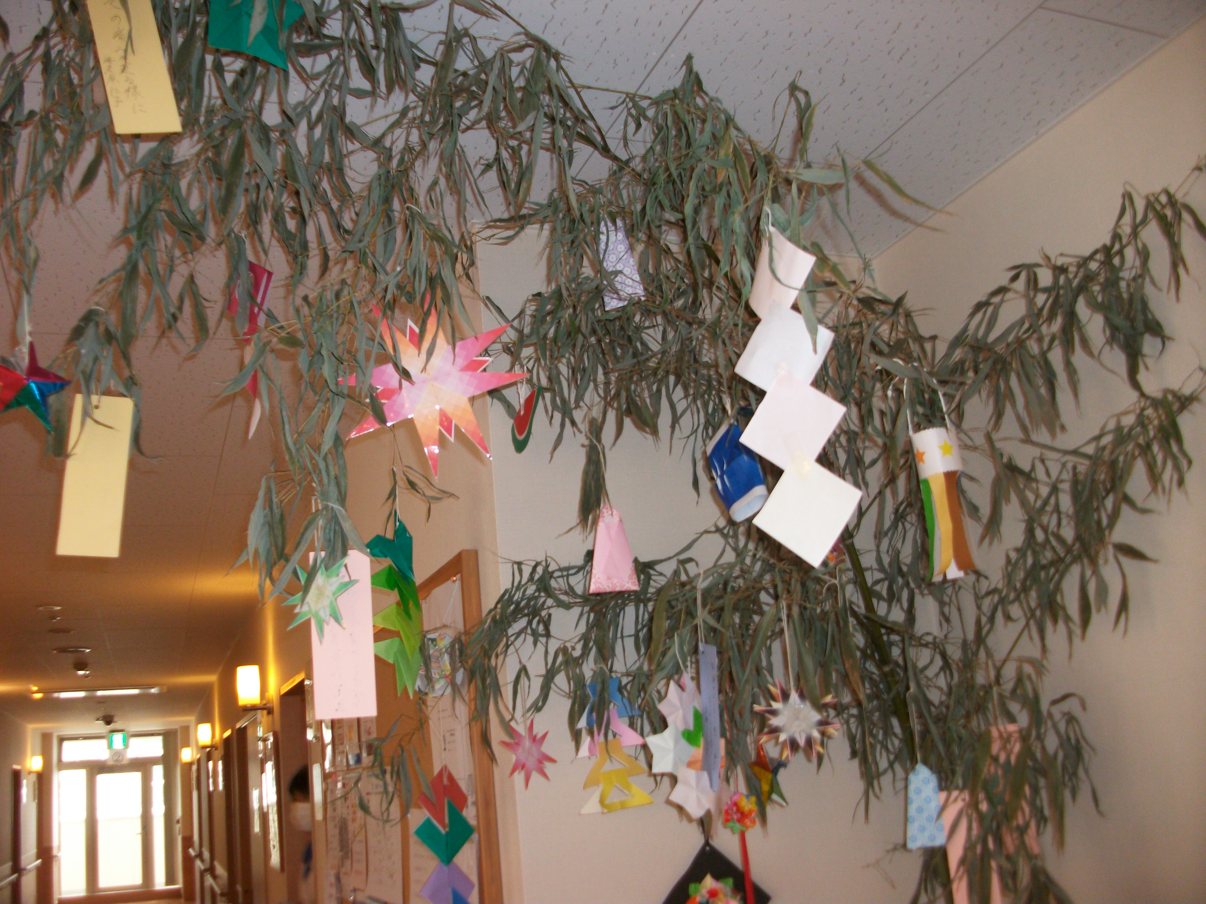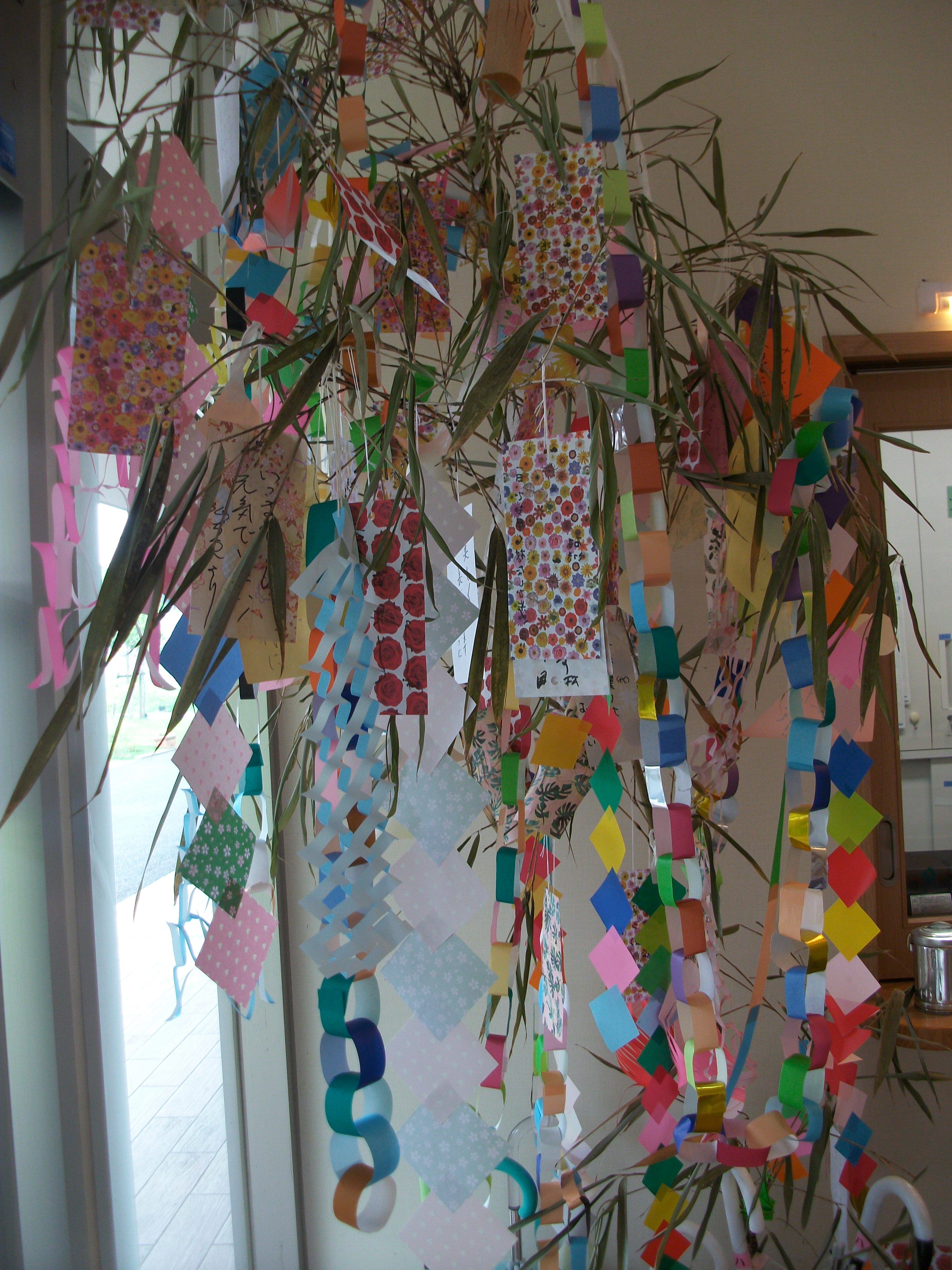 裏の竹林から本物の笹をとってきて、皆さんに願い事や飾り付けをお願いした物です!
