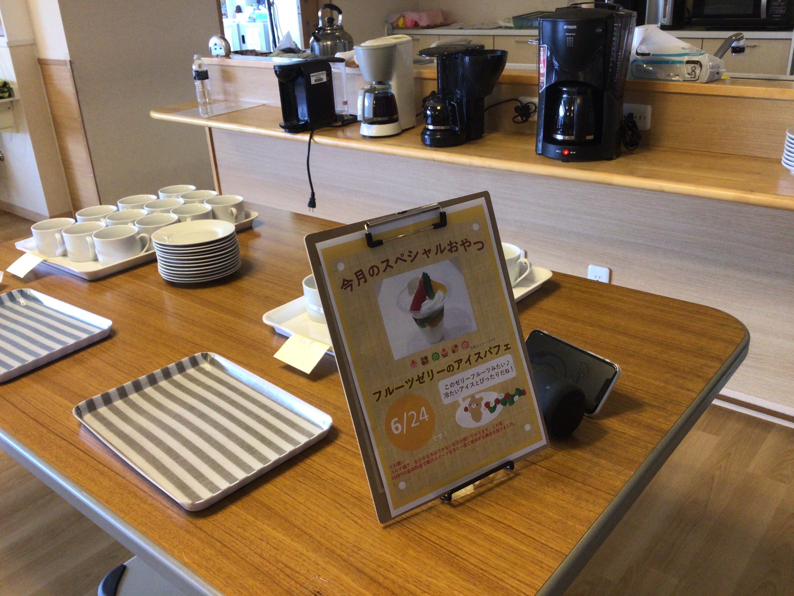 24日にヴィラの入居者様のスペシャルおやつタイムを毎月もうけさせていただいております。