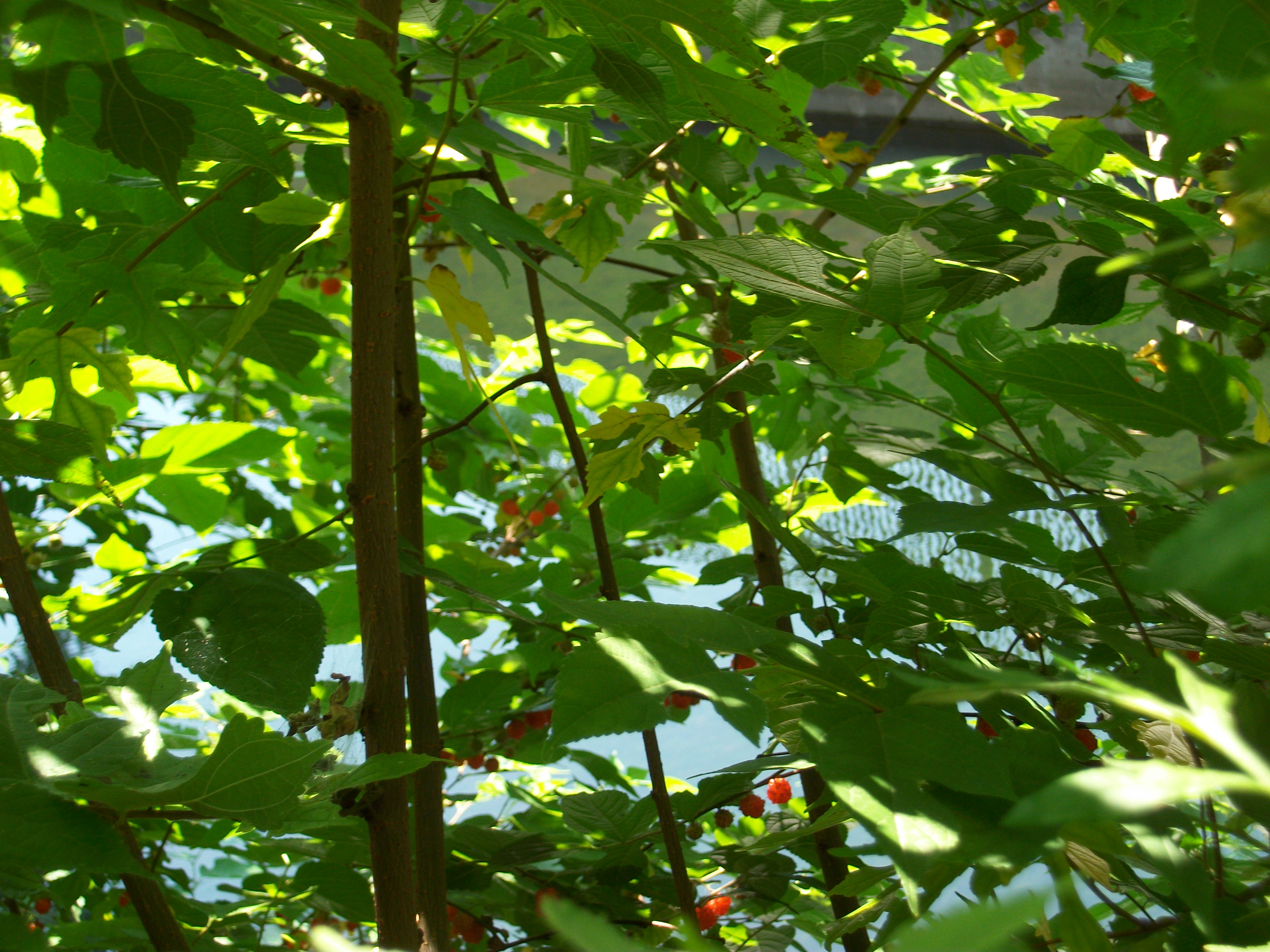 美味しそうなヘビイチゴの赤い実の木が貯水池の一角に生い茂っていました!