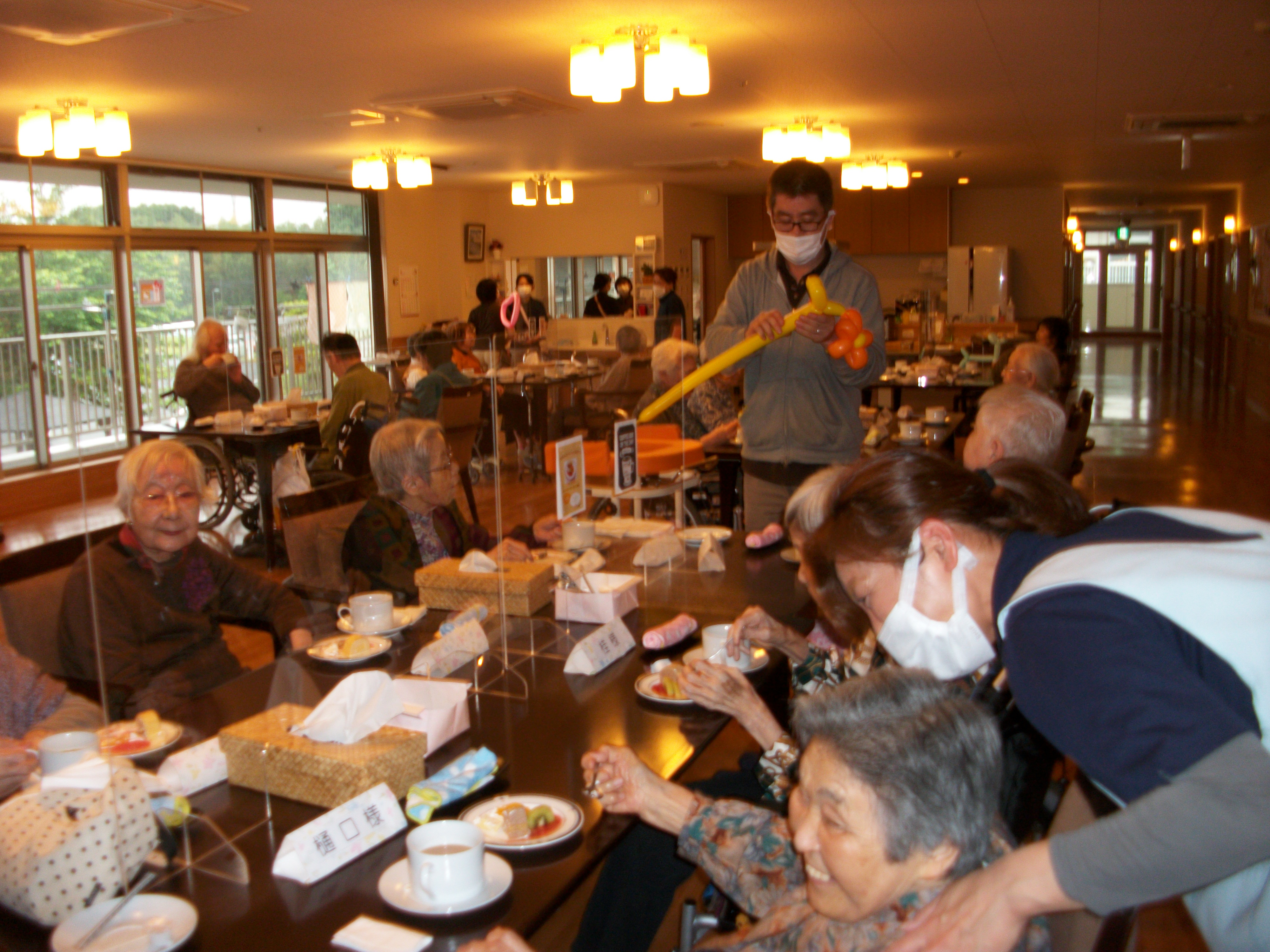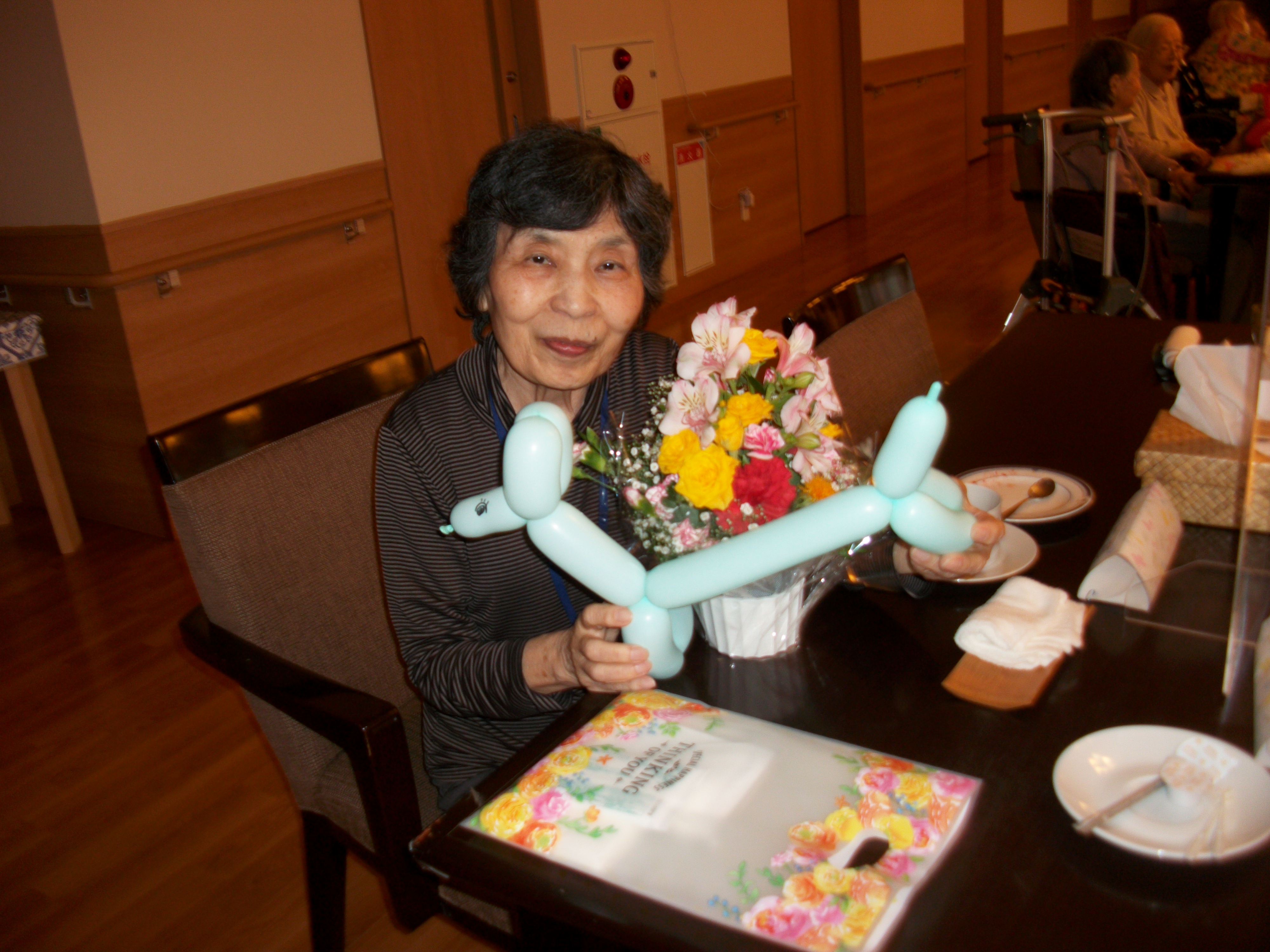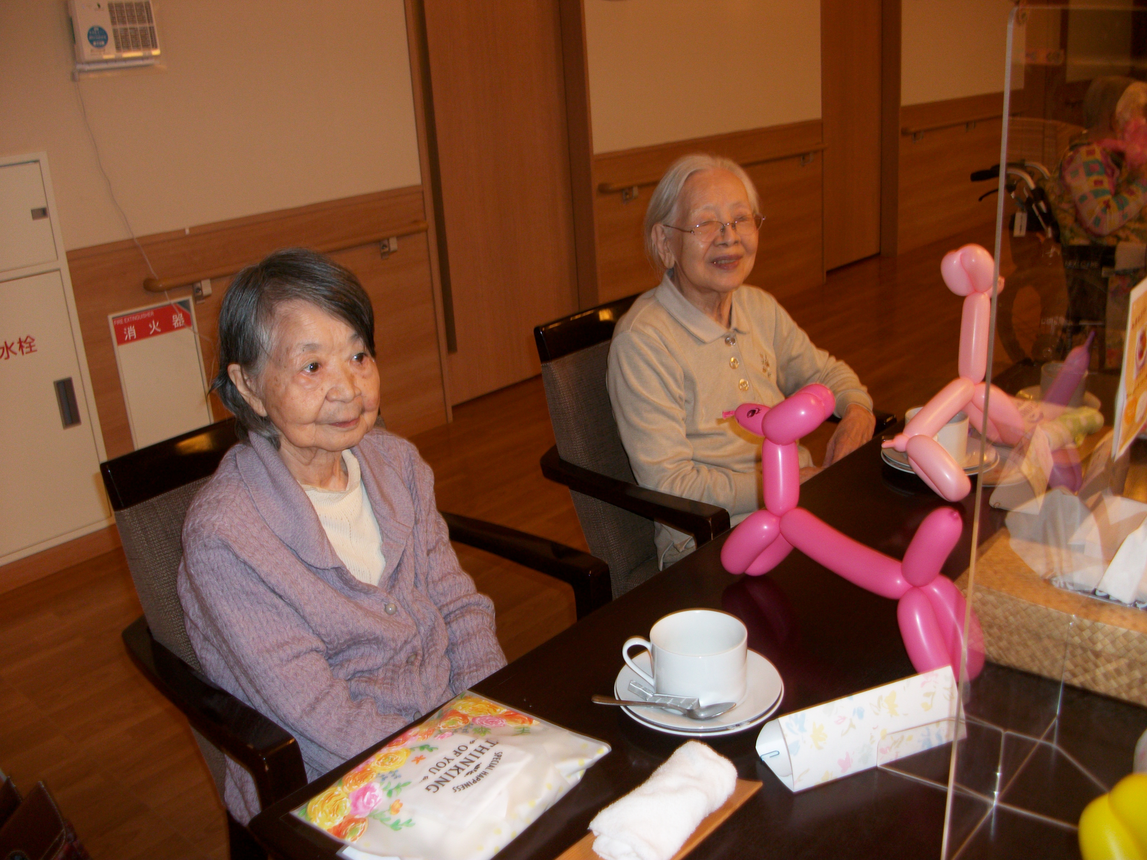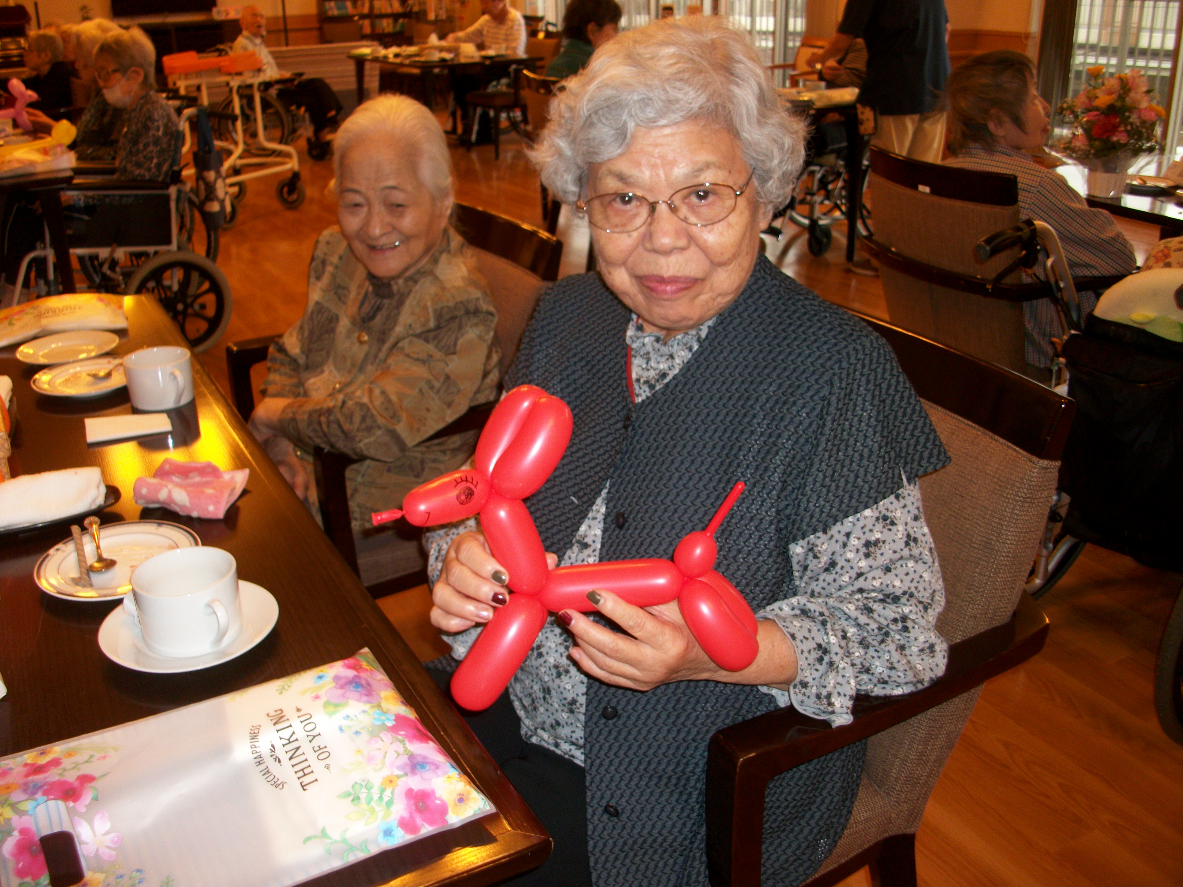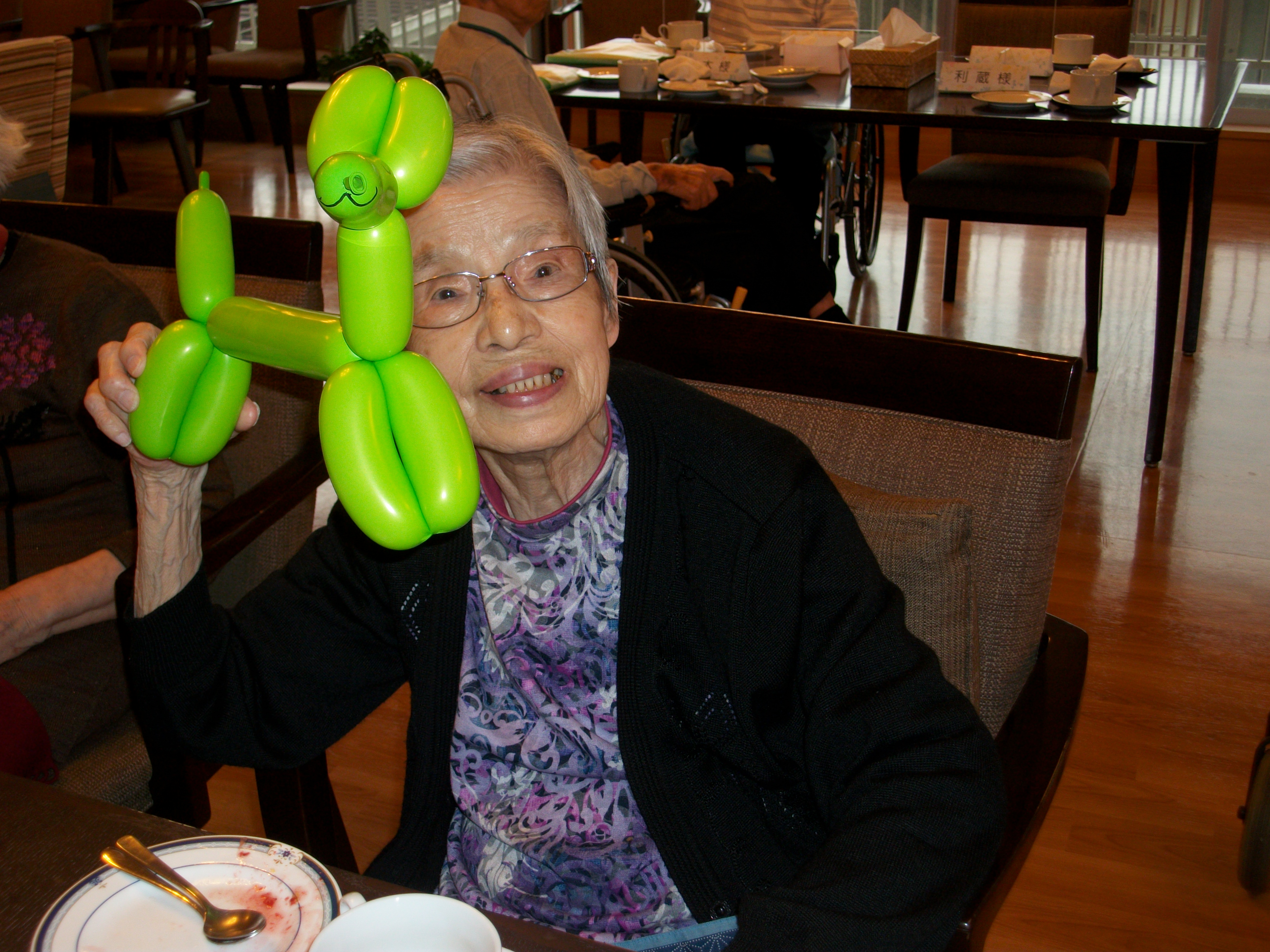 スタッフが夜なべをして練習したバルーンアートを皆さんに披露いたしました。おひとりづつご希望の方にはプレゼントをしましたが、中には20分位かかるものを希望したかたもらっしゃいました。