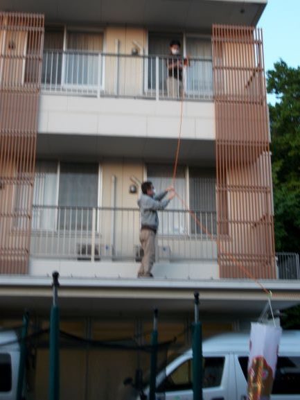 名物の鯉のぼり設置に協力してくれたスタッフです。