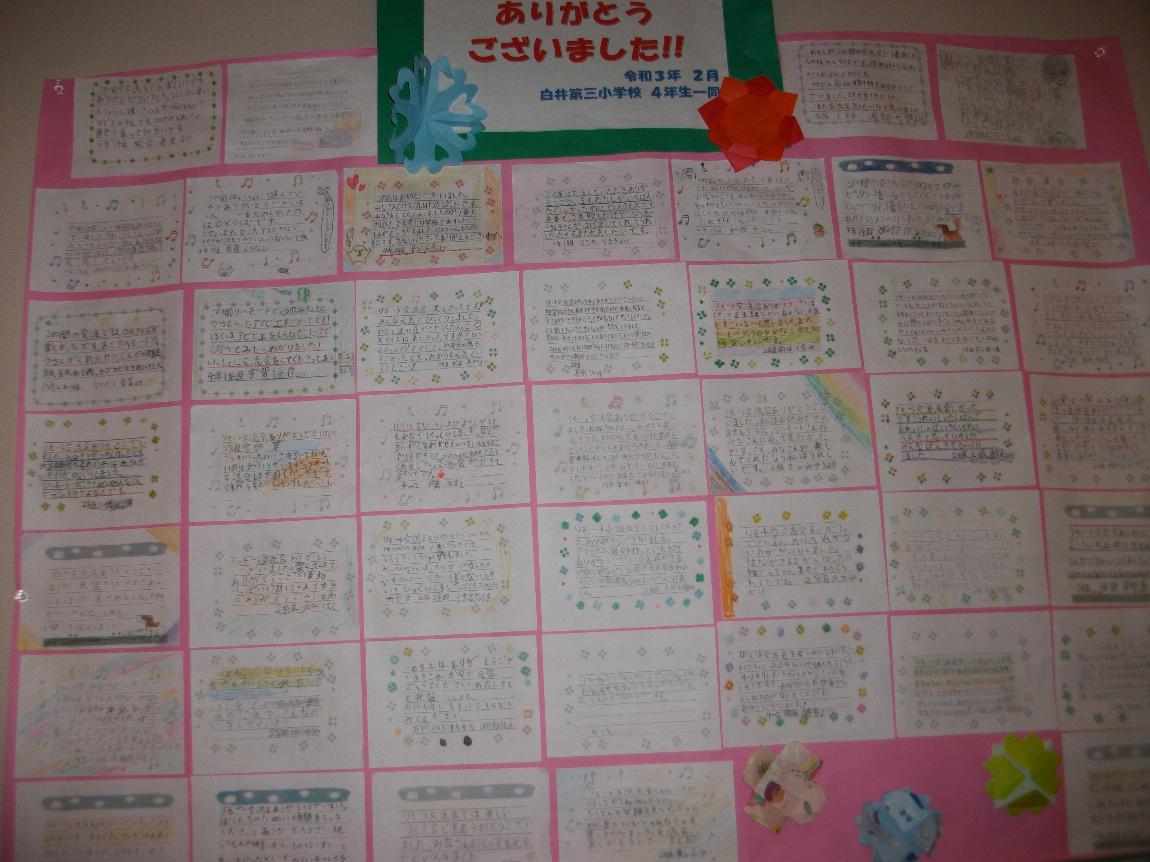 2月に実施しました、白井第三小学校4年生との交流会に参加したみんなからお手紙が届きました!