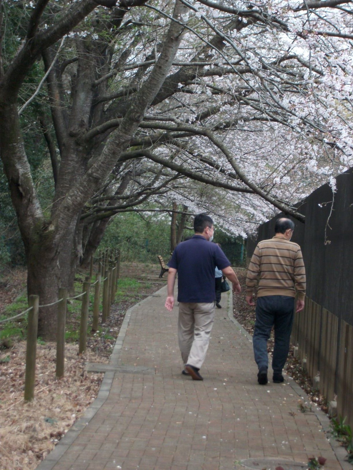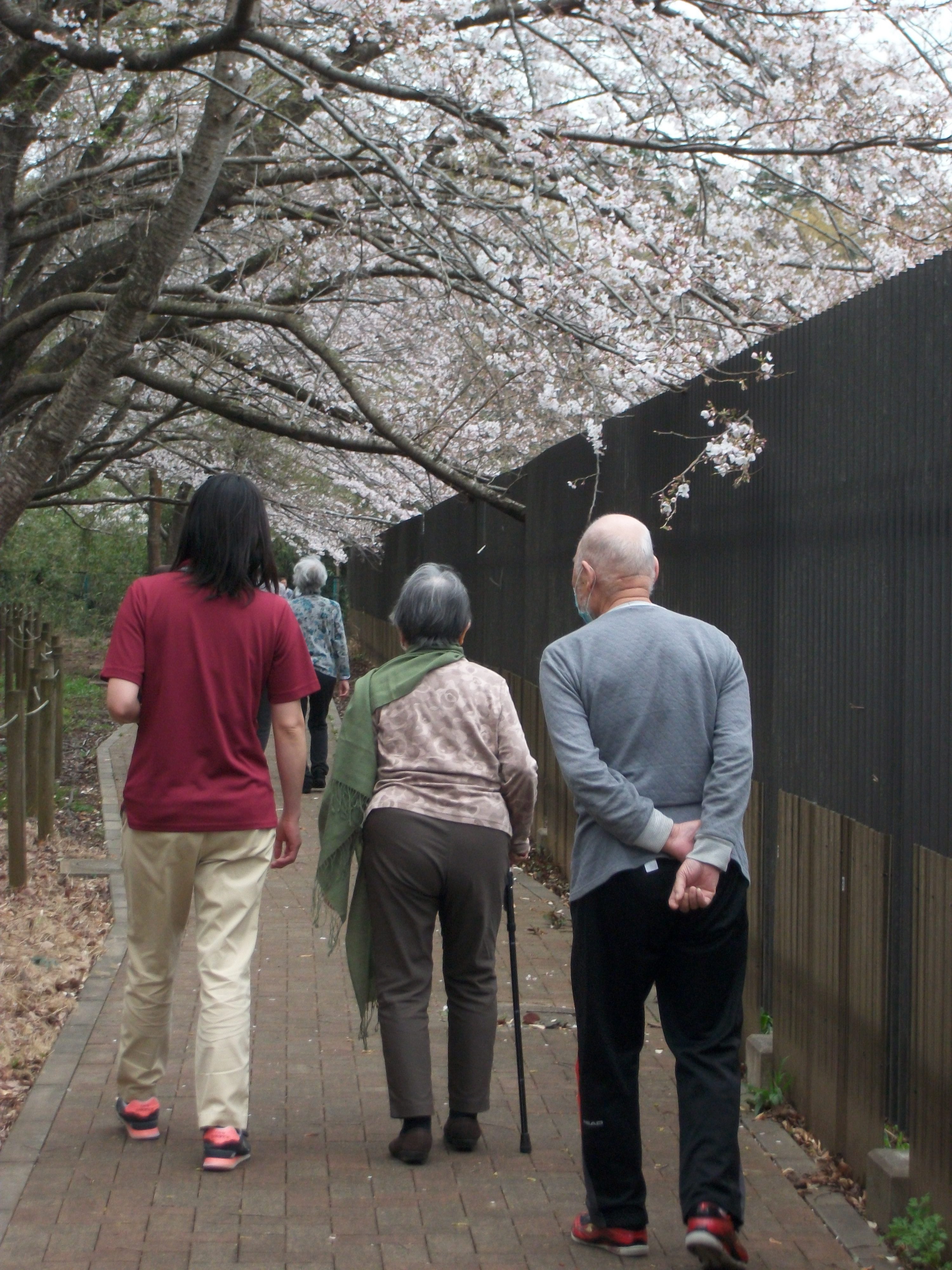 遊歩道の桜並木が連日の暖かさで日に日に開花していきます。