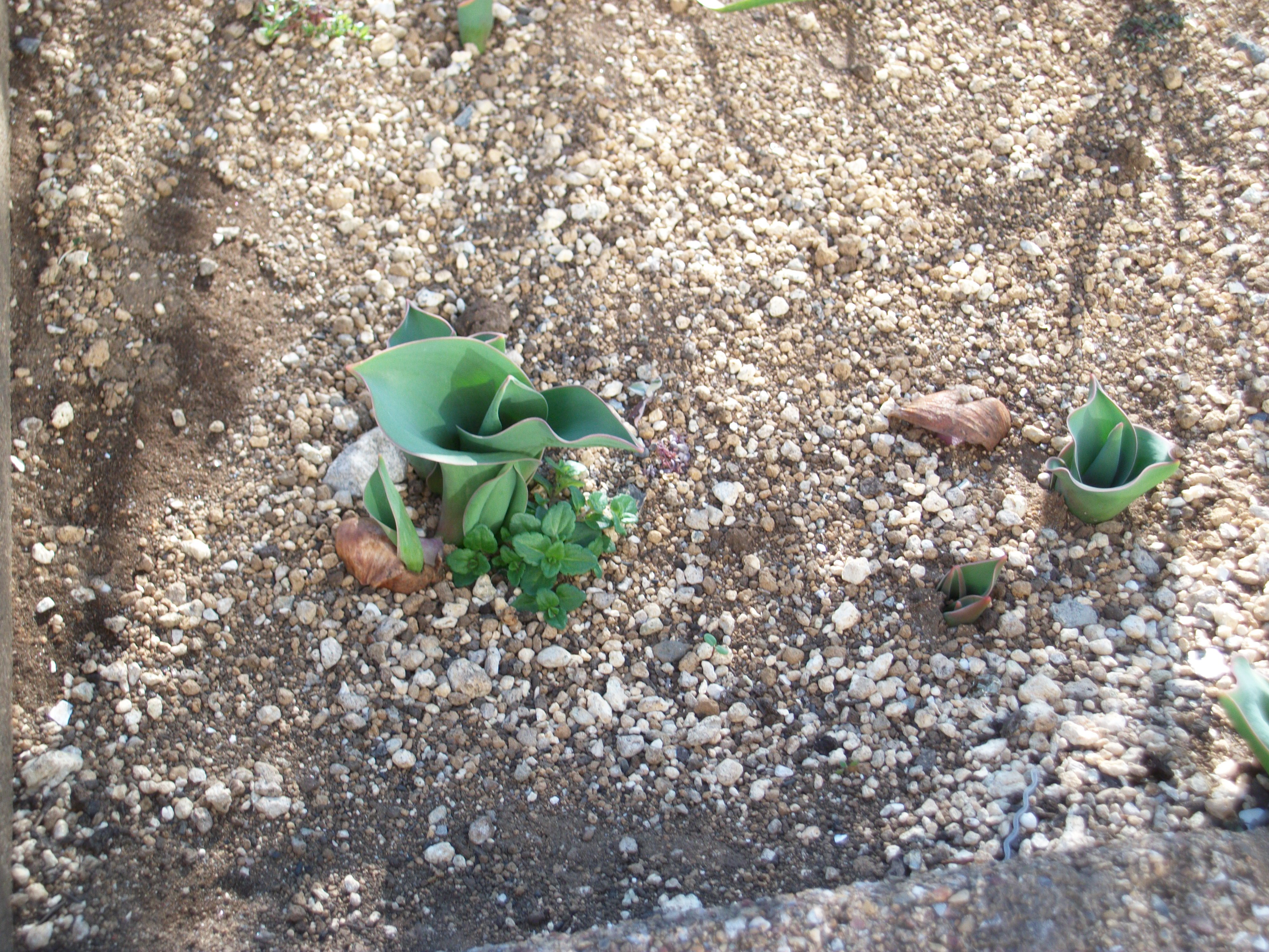 チューリップは寒い冬をこえてゆっくりと日に日に芽が出てきています!