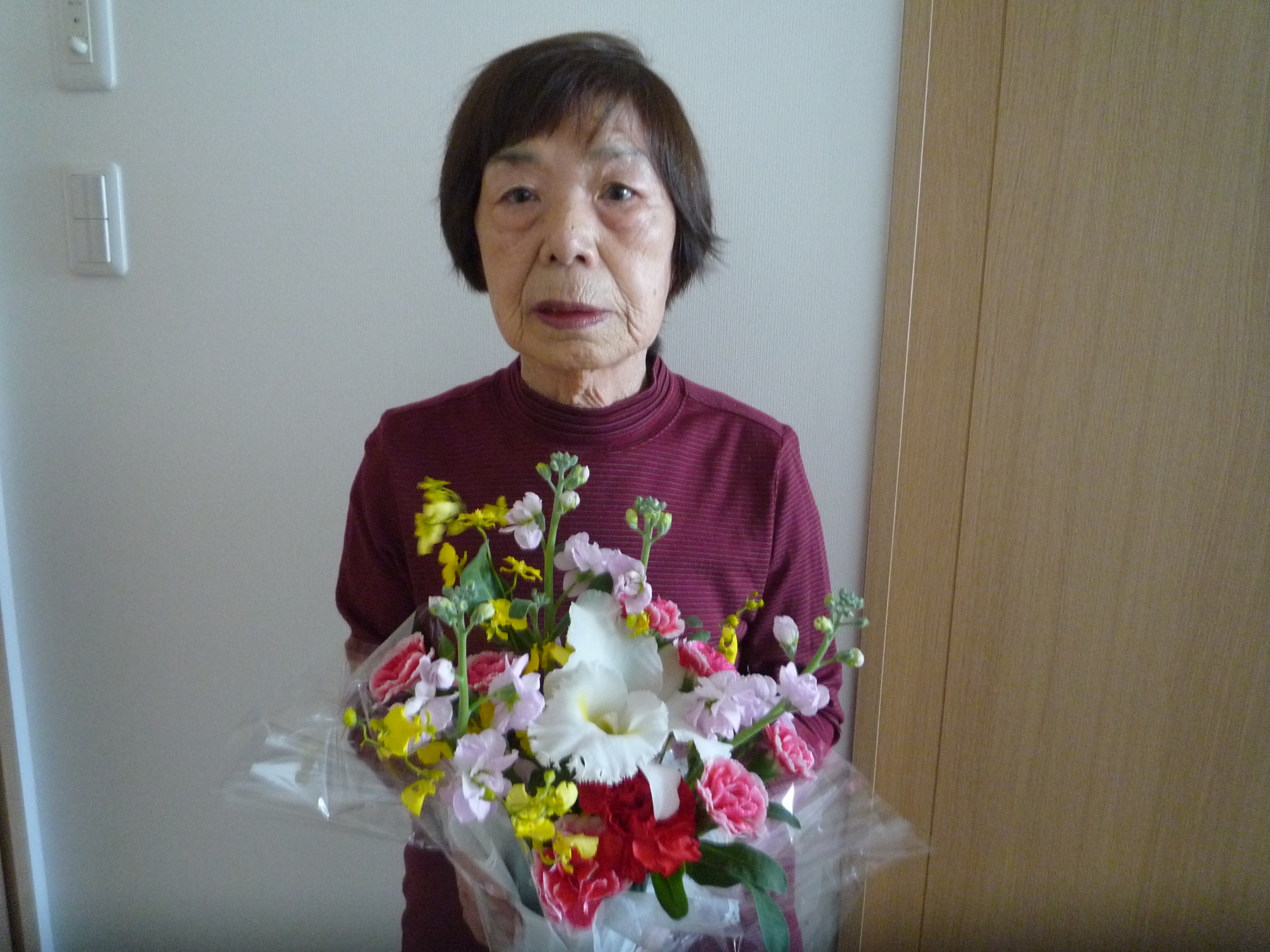 そして、手元にお花が届いてうれしい笑顔で写真を一枚!