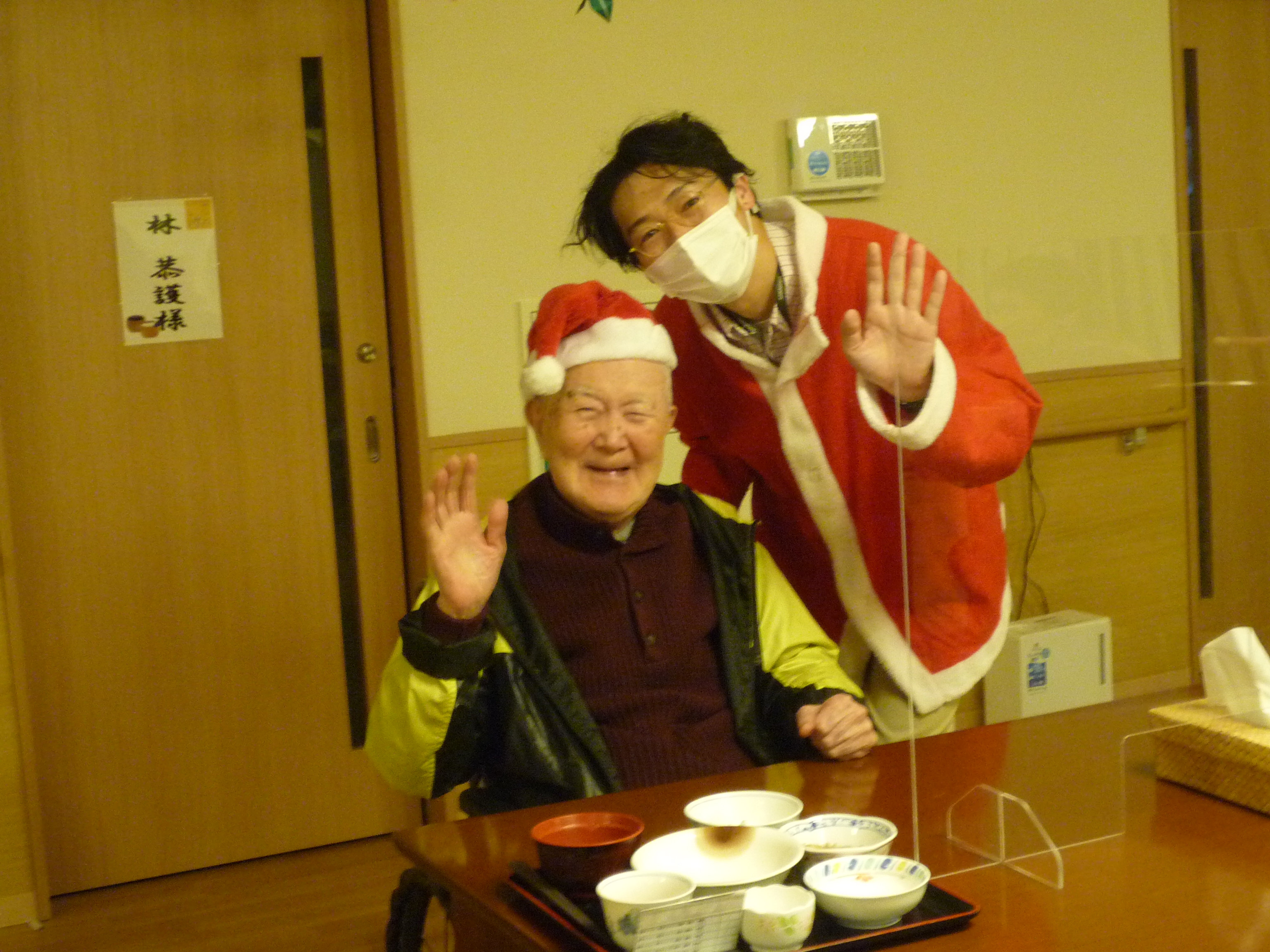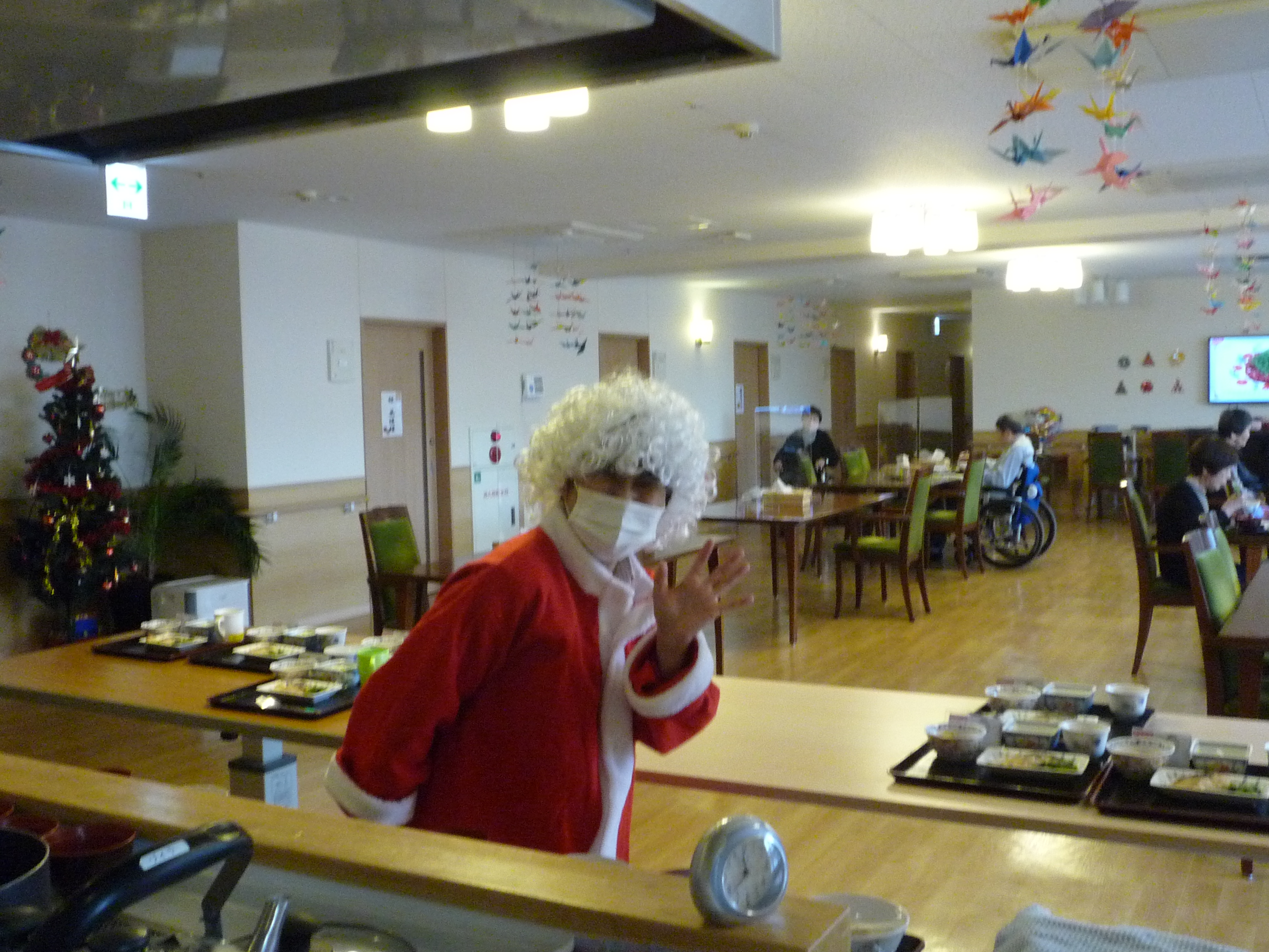 クリスマスの2日間、サンタさんが食事配膳に来てくれました🎅