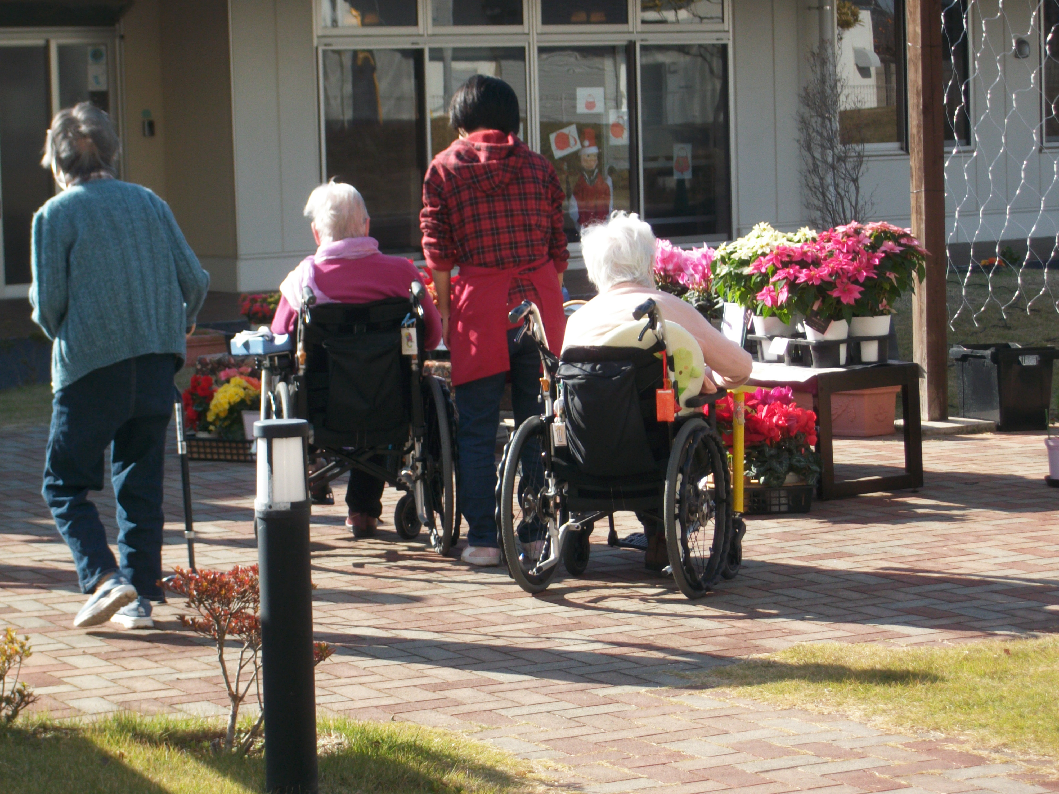 中庭で13時から原花卉園芸さんご夫婦の「お花の移動販売」を行いました。