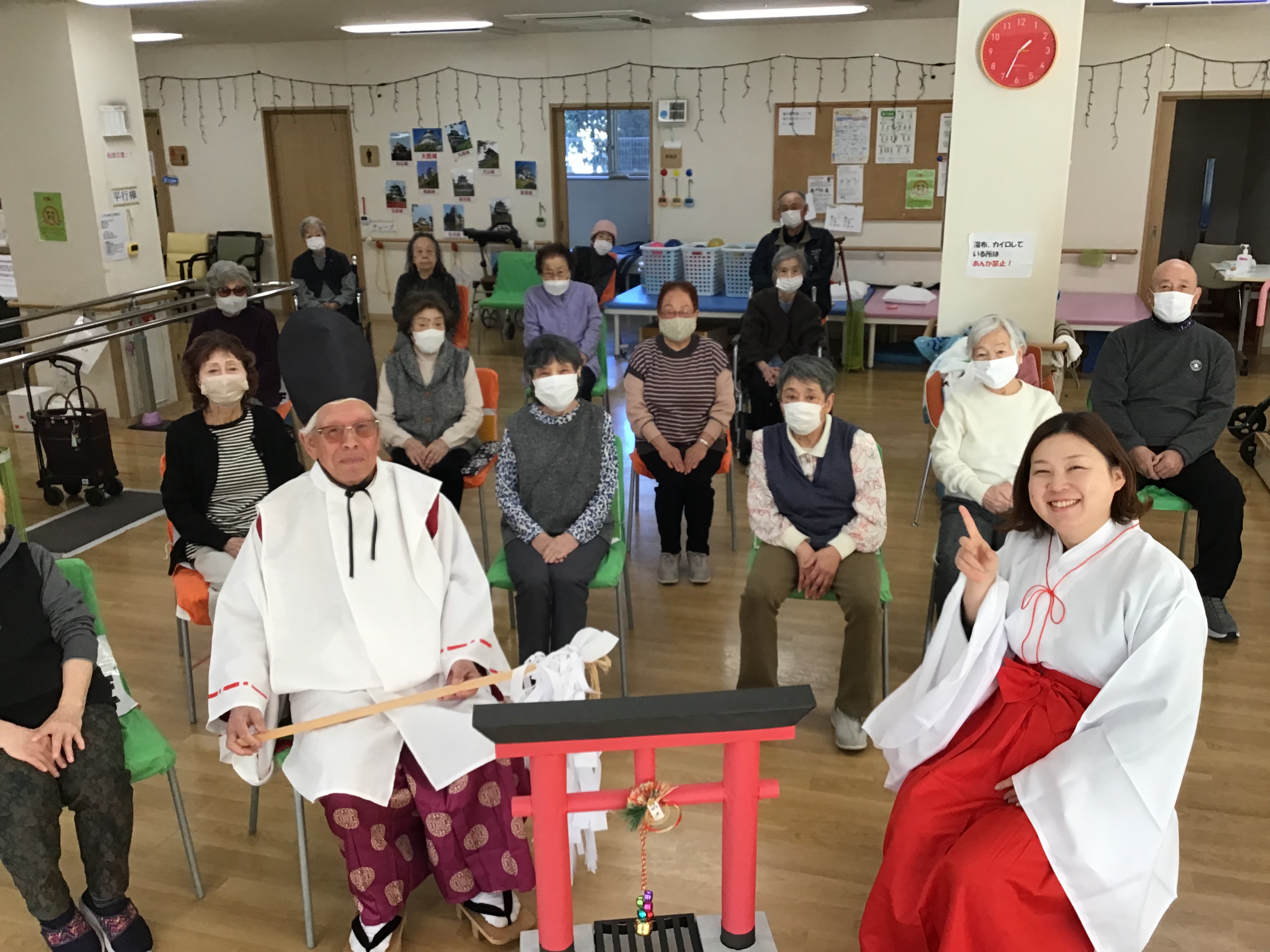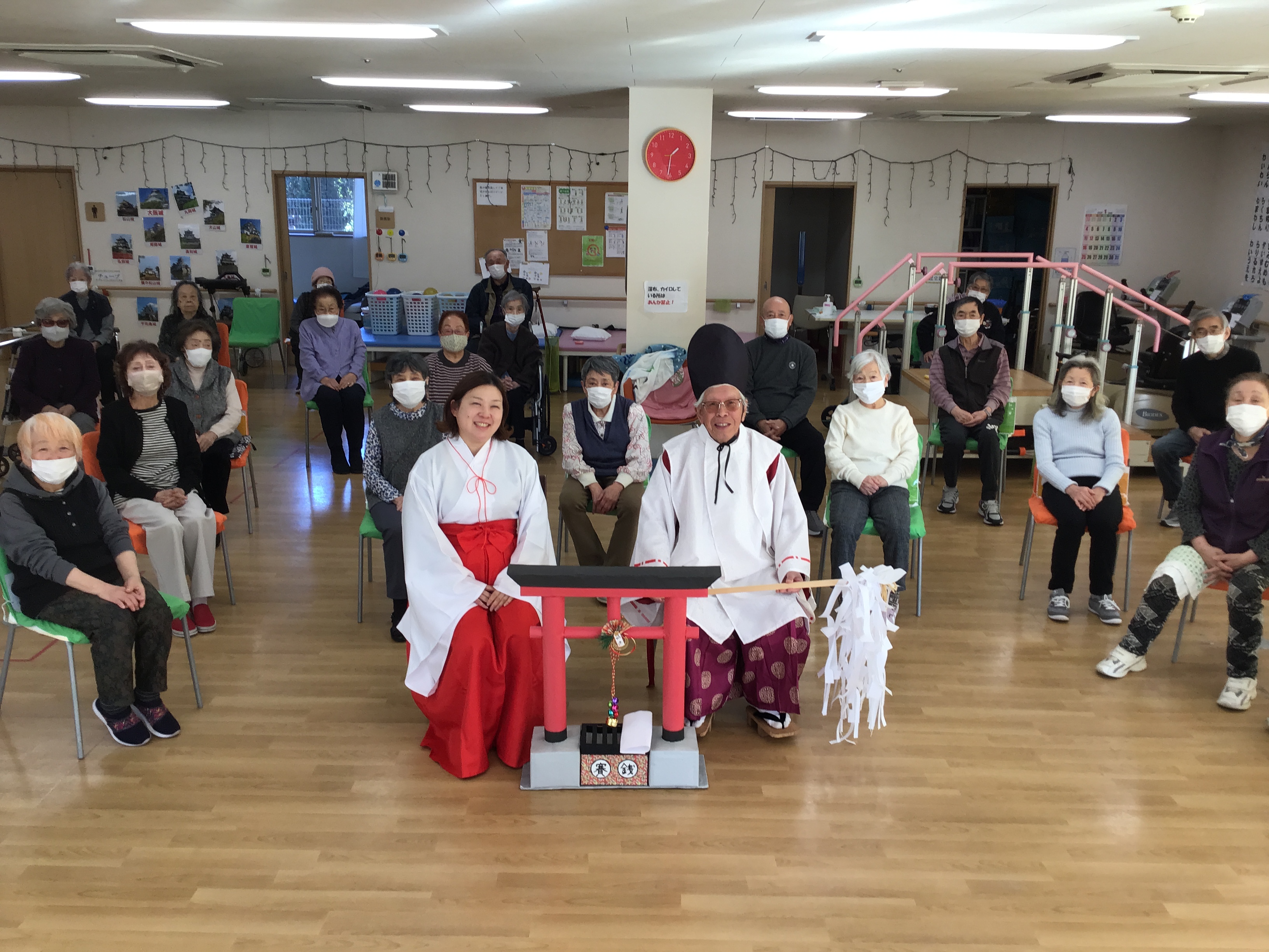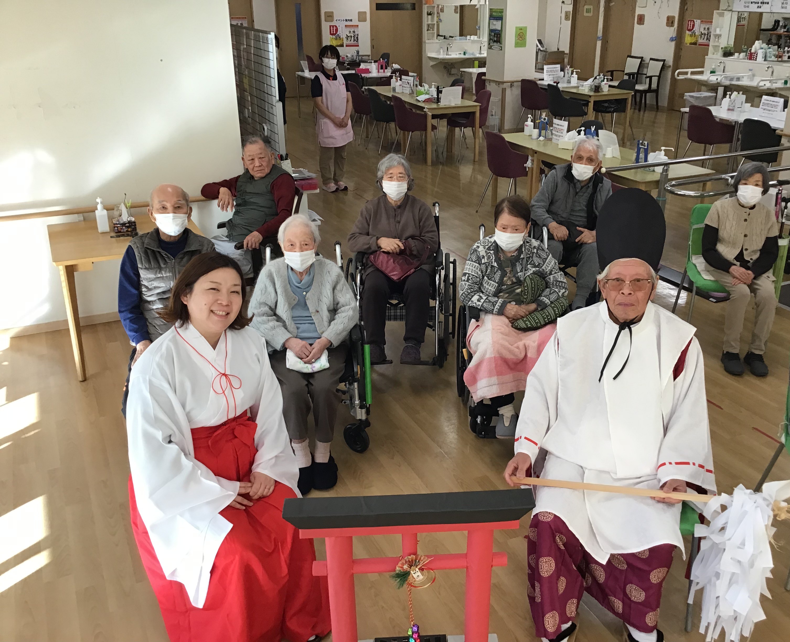 スタッフが神主さんと巫女さんに扮して、出張初詣です!