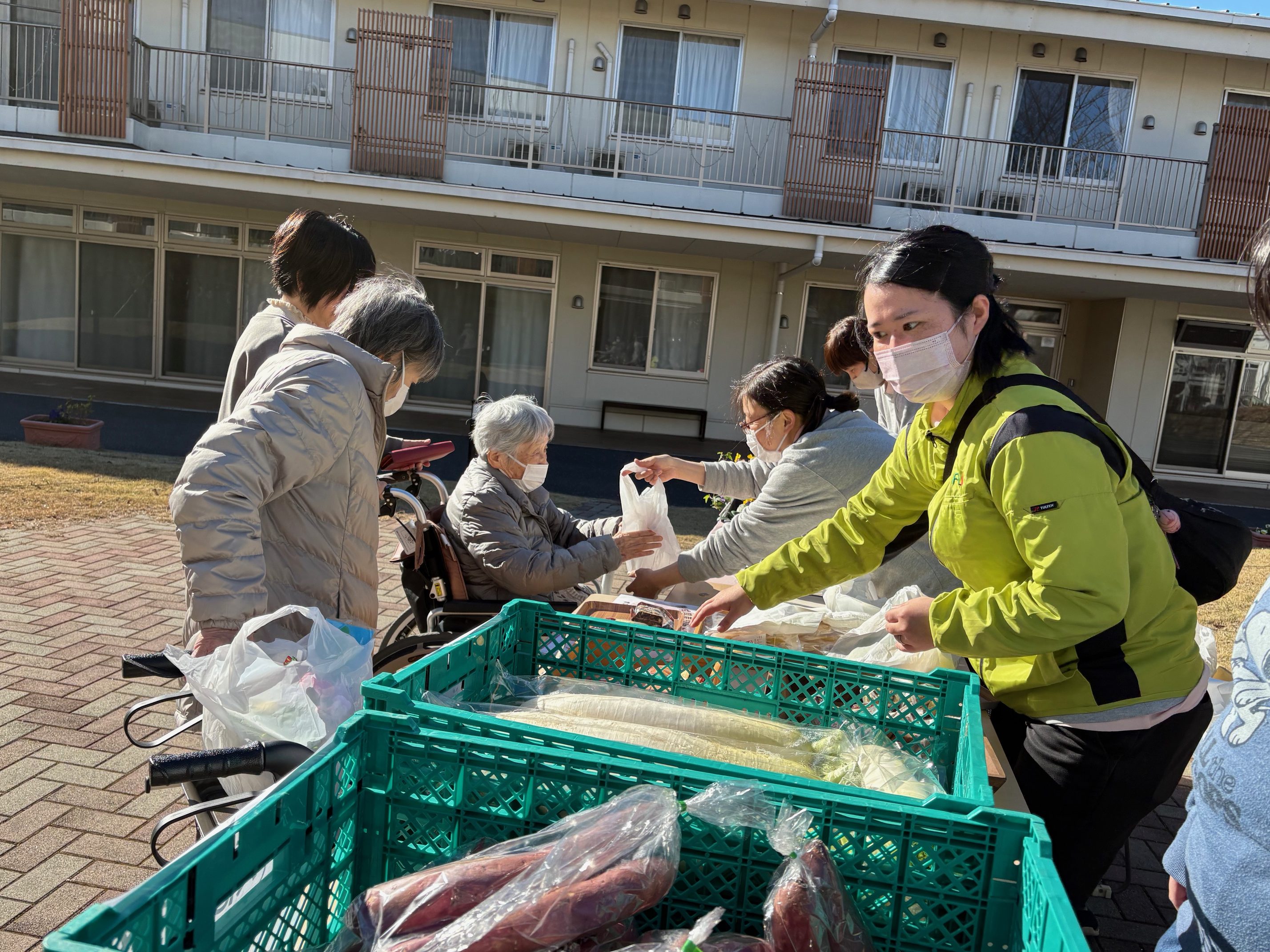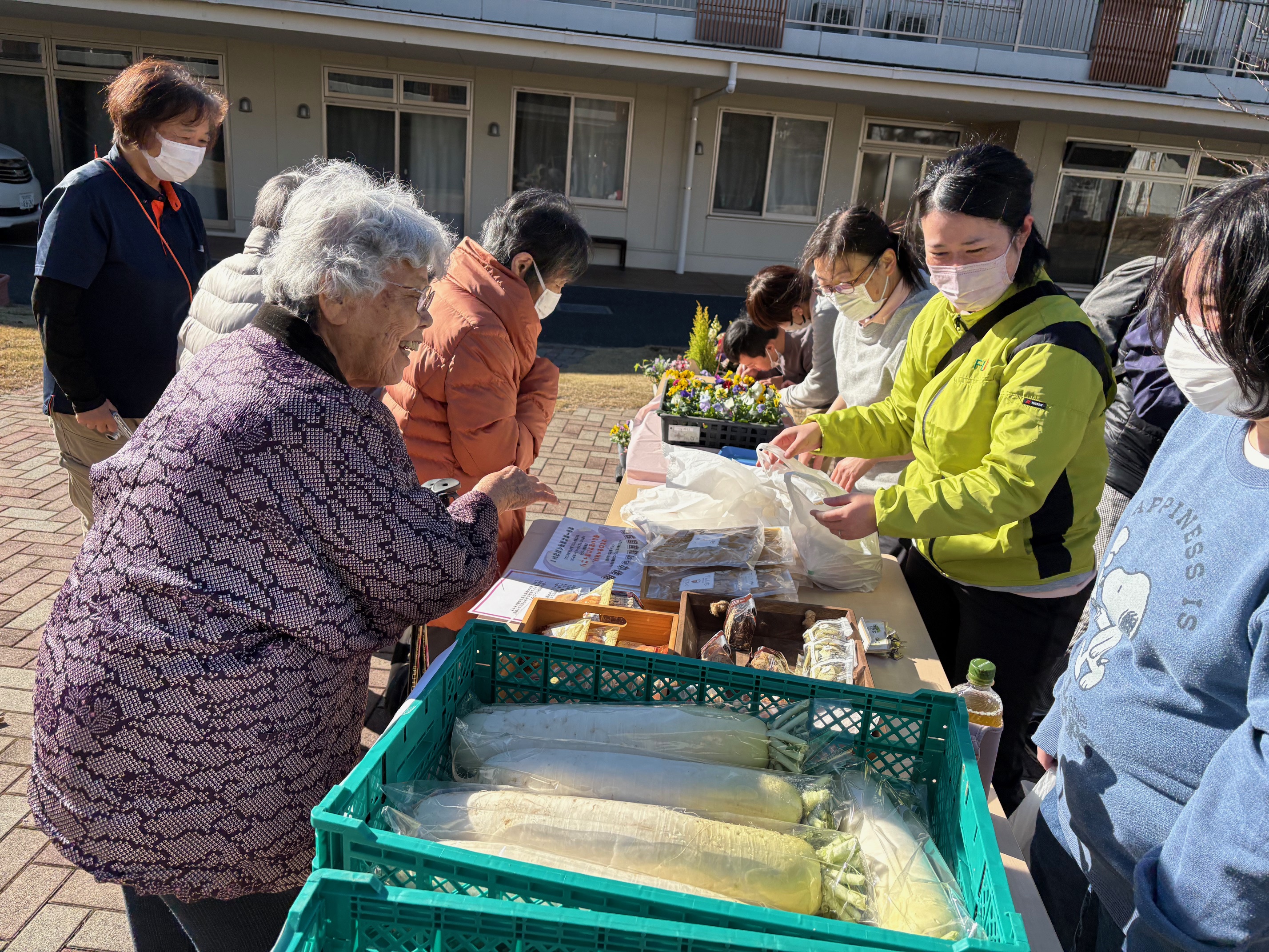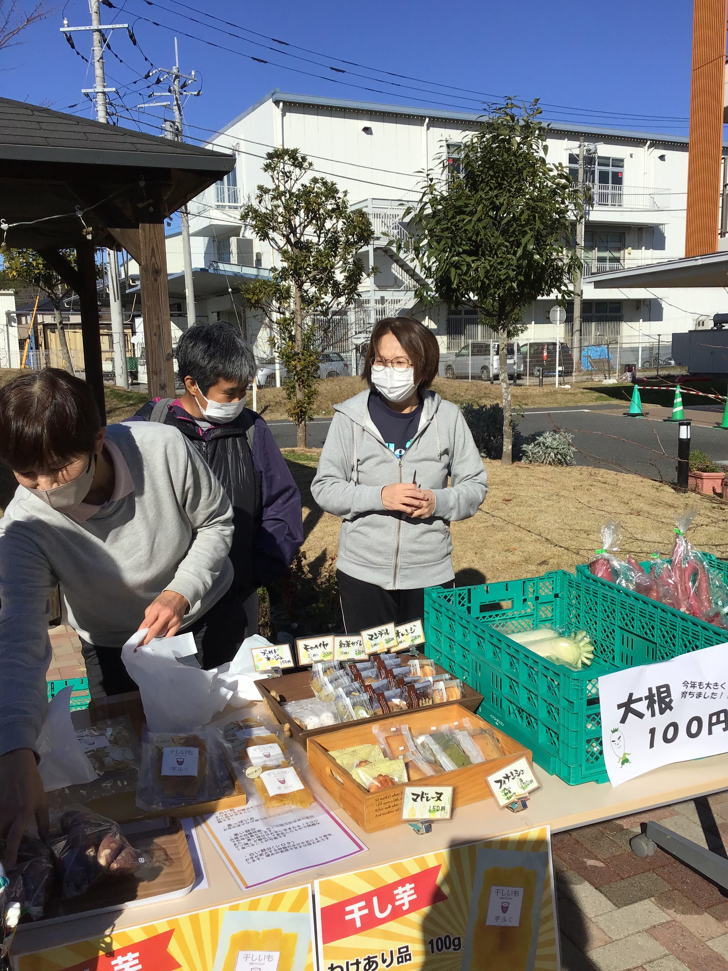 地域の障がい者施設「フラット」さんが、子供達がつくった野菜や干芋、お花を販売してくれました!