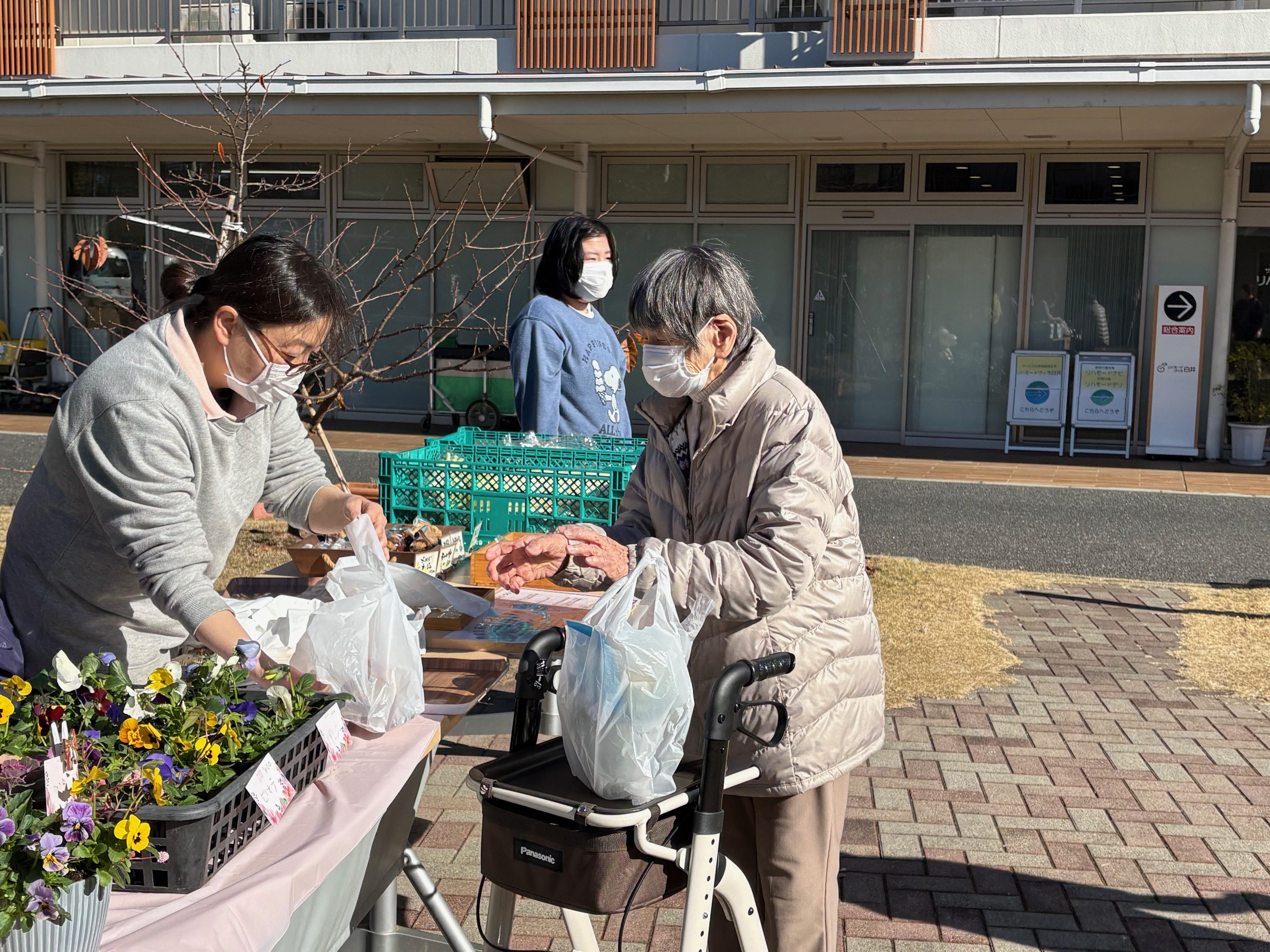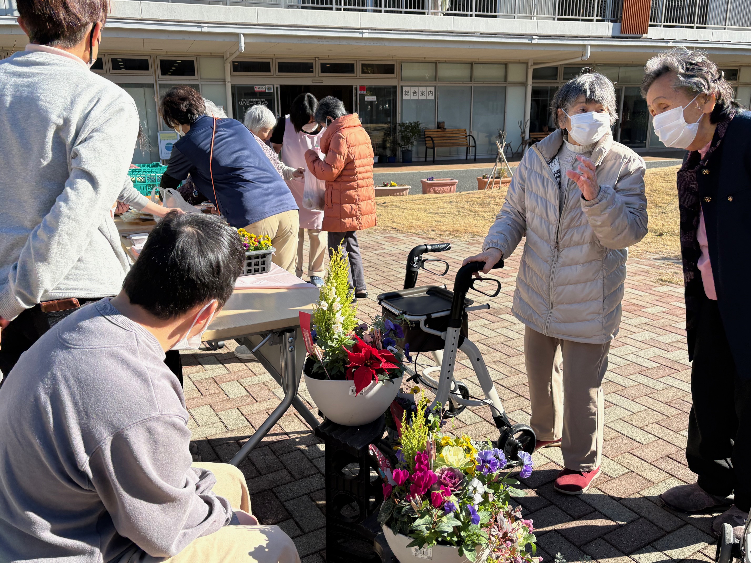 寄せ植えの鉢をかった入居者様にお届けしました!