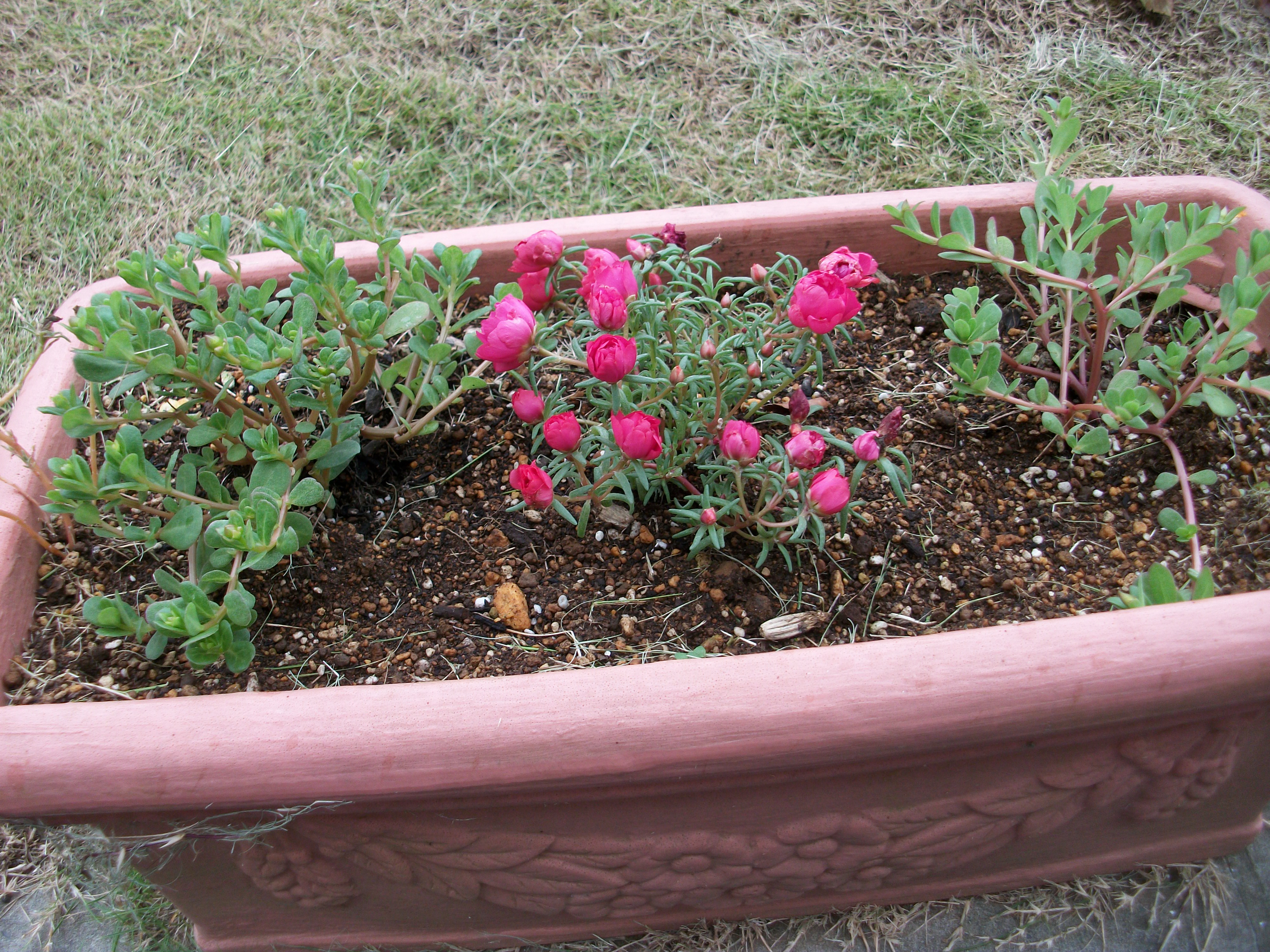 近くの障がい者施設「きらり」から、な・なんと一ポット50円の「まつばぼたん」を60個購入できました!