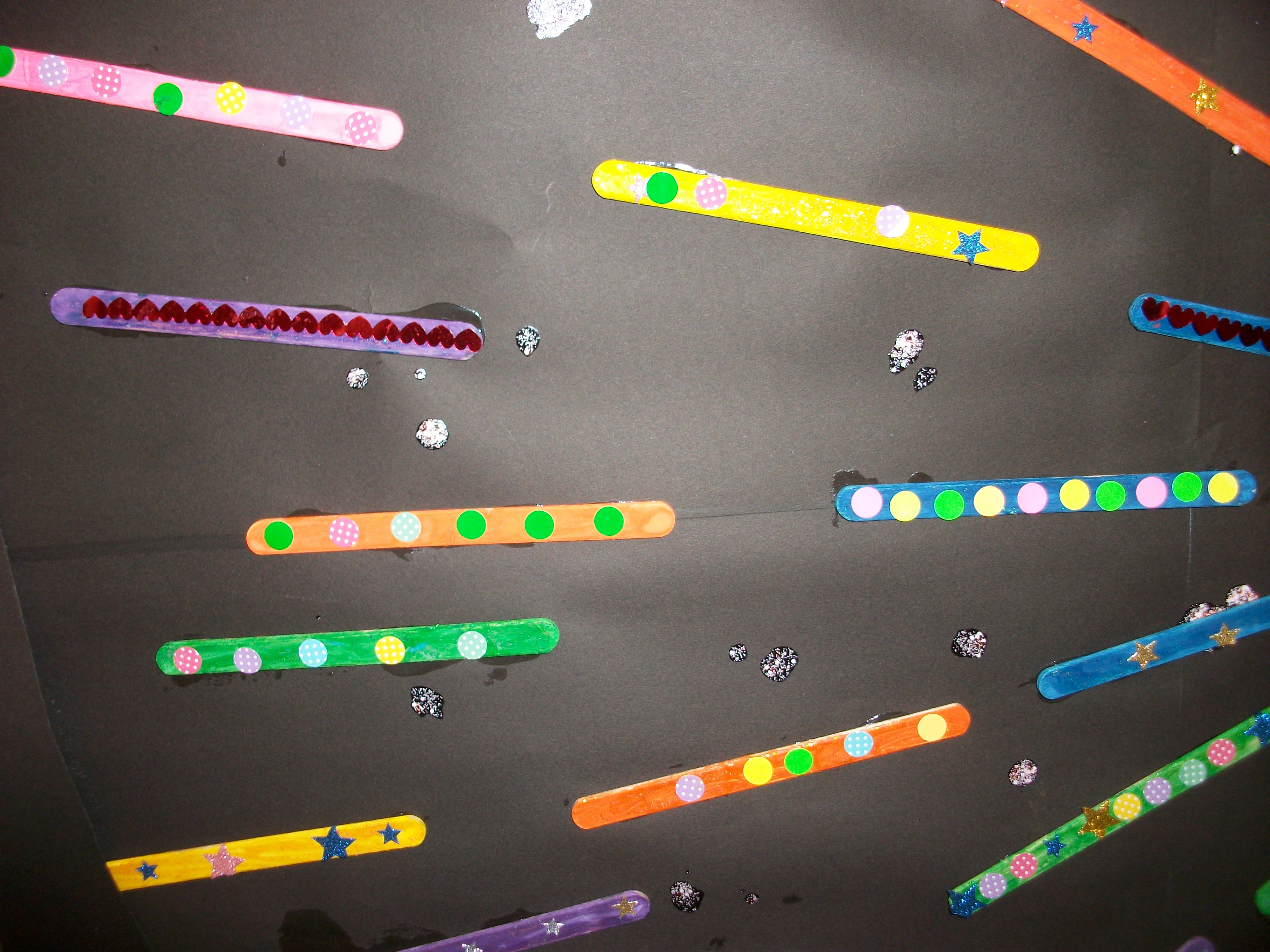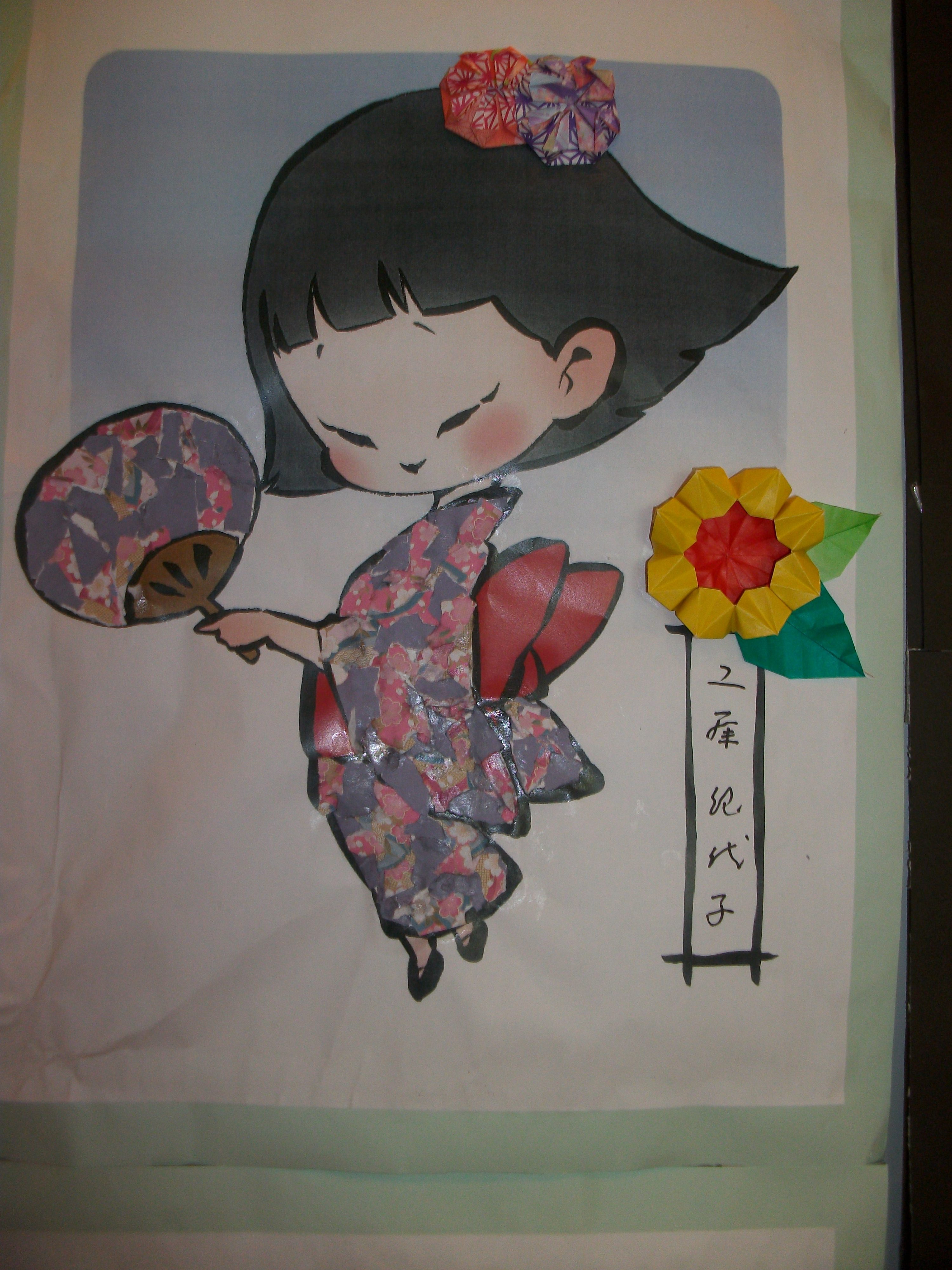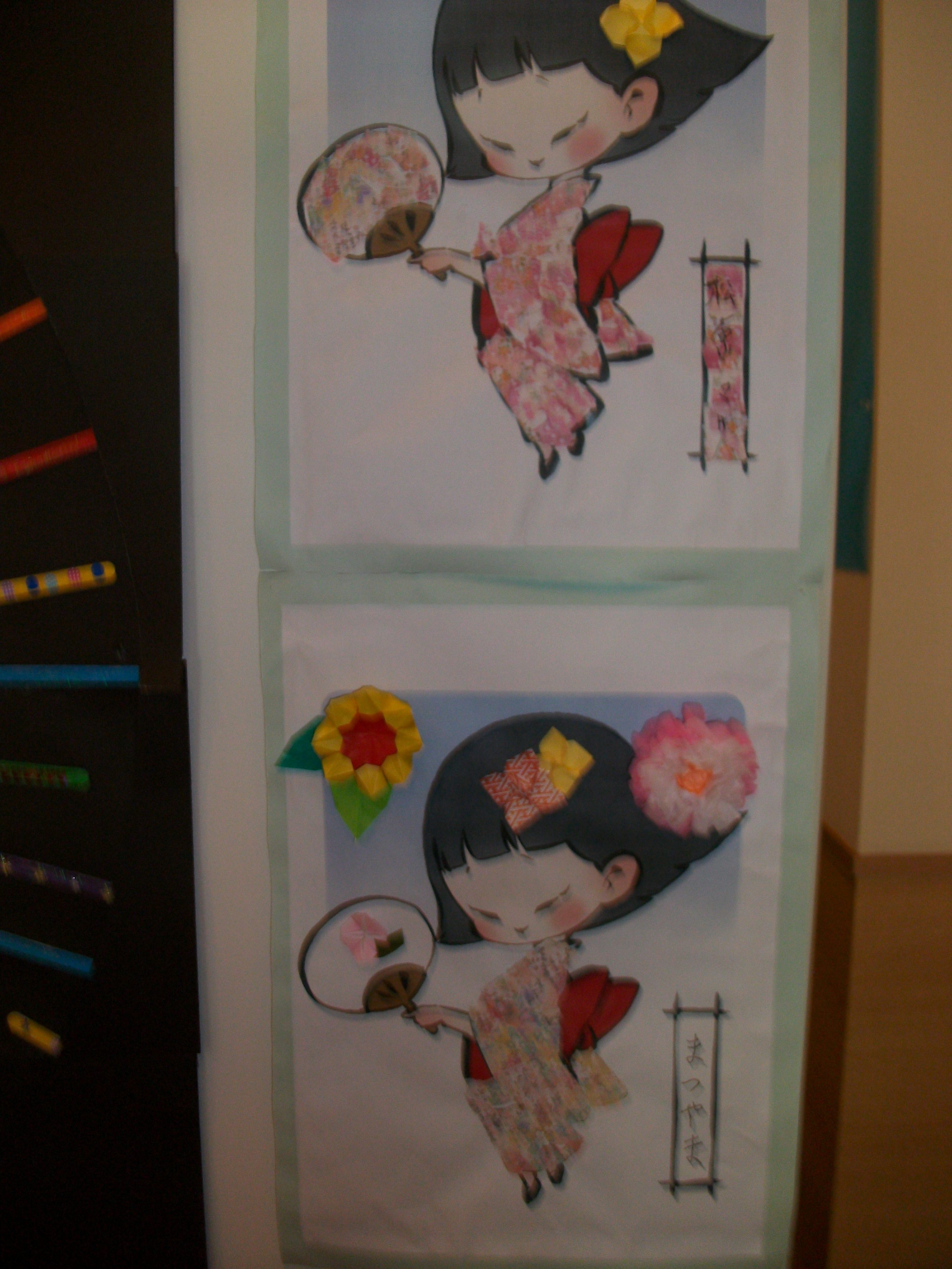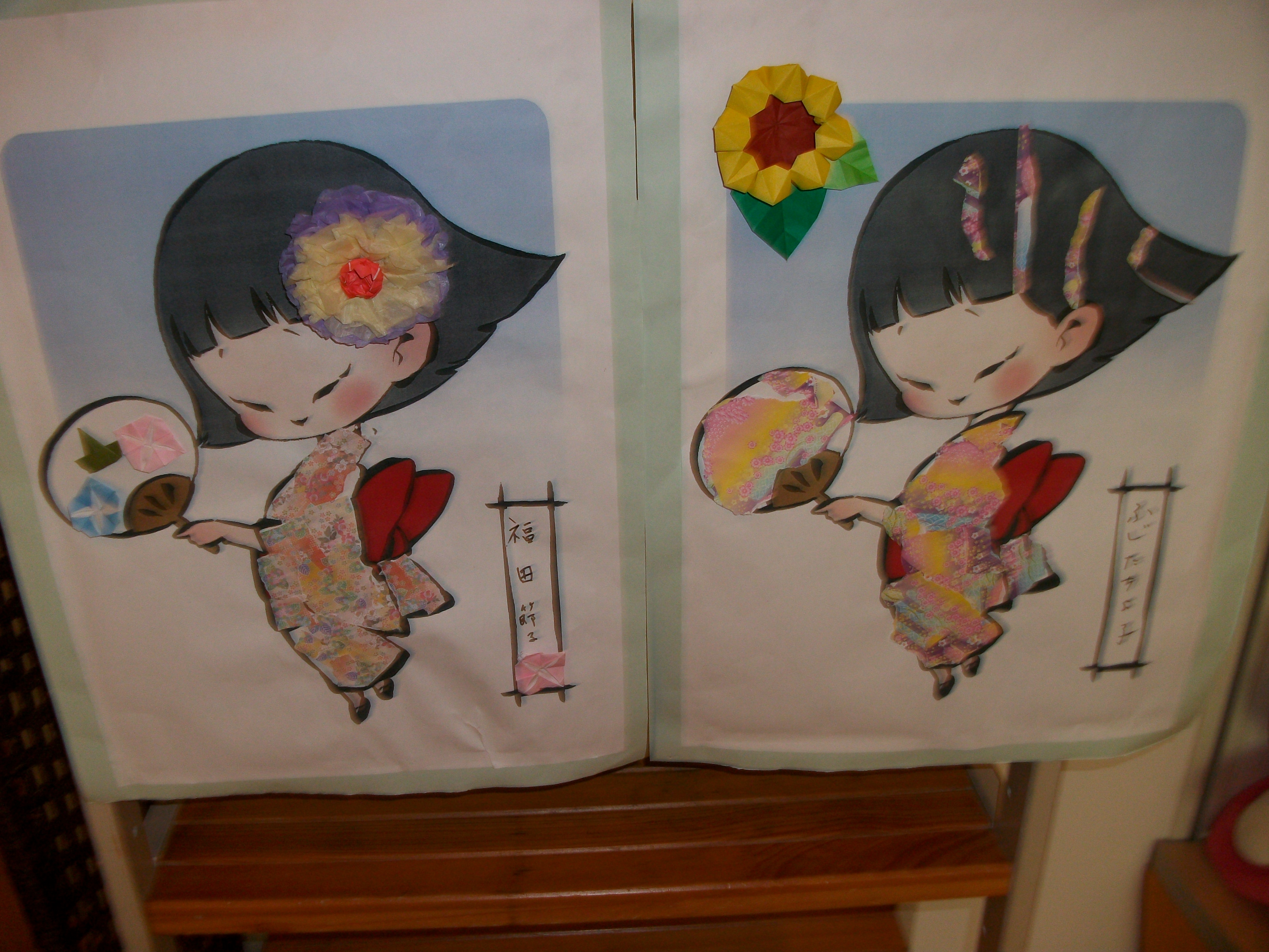手作りの打ち上げ花火と、入居者様がつくった浴衣の絵。