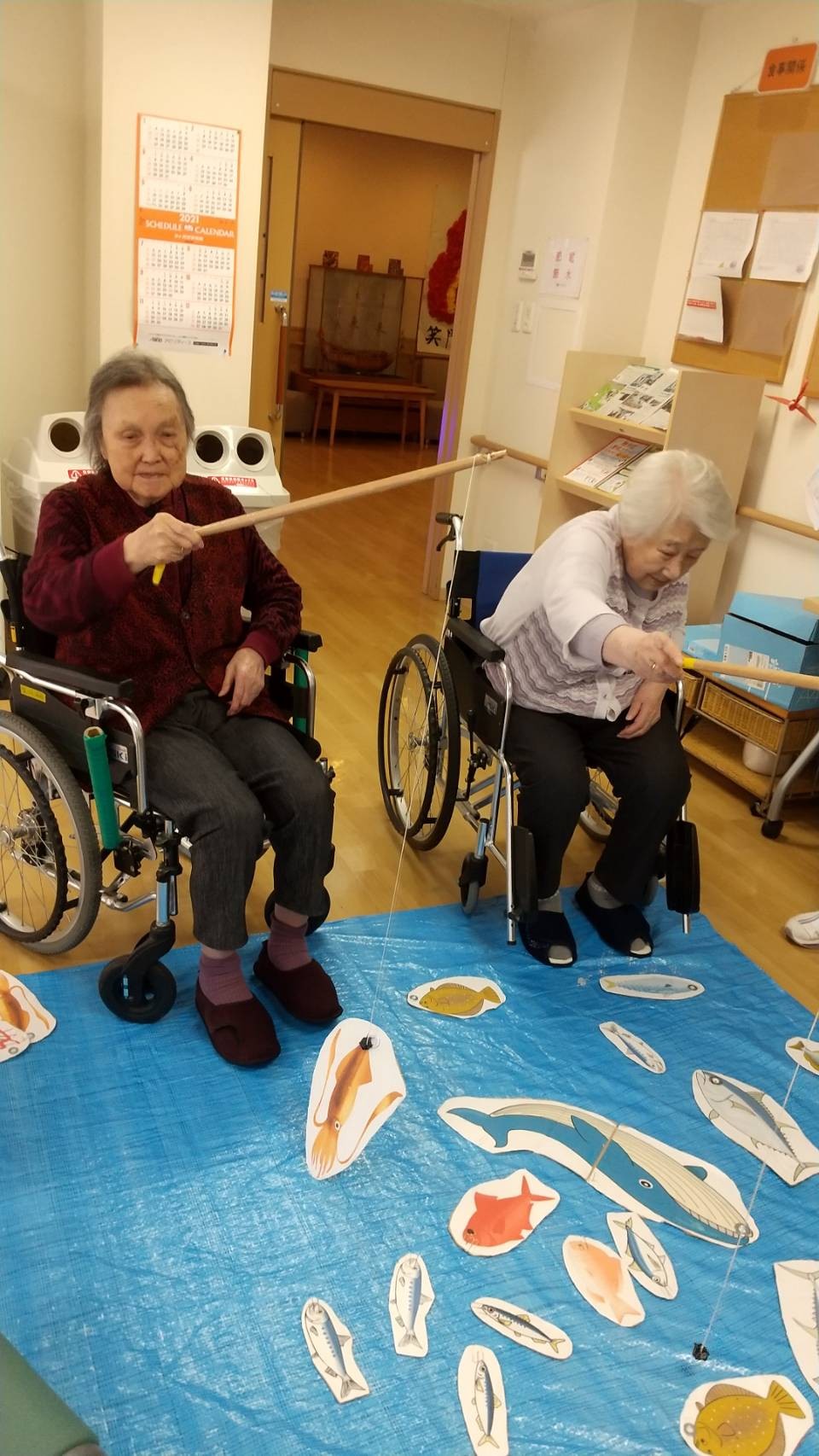 お魚なヒラメやサメを手作りの釣り竿で皆さん必死に釣り上げていました!