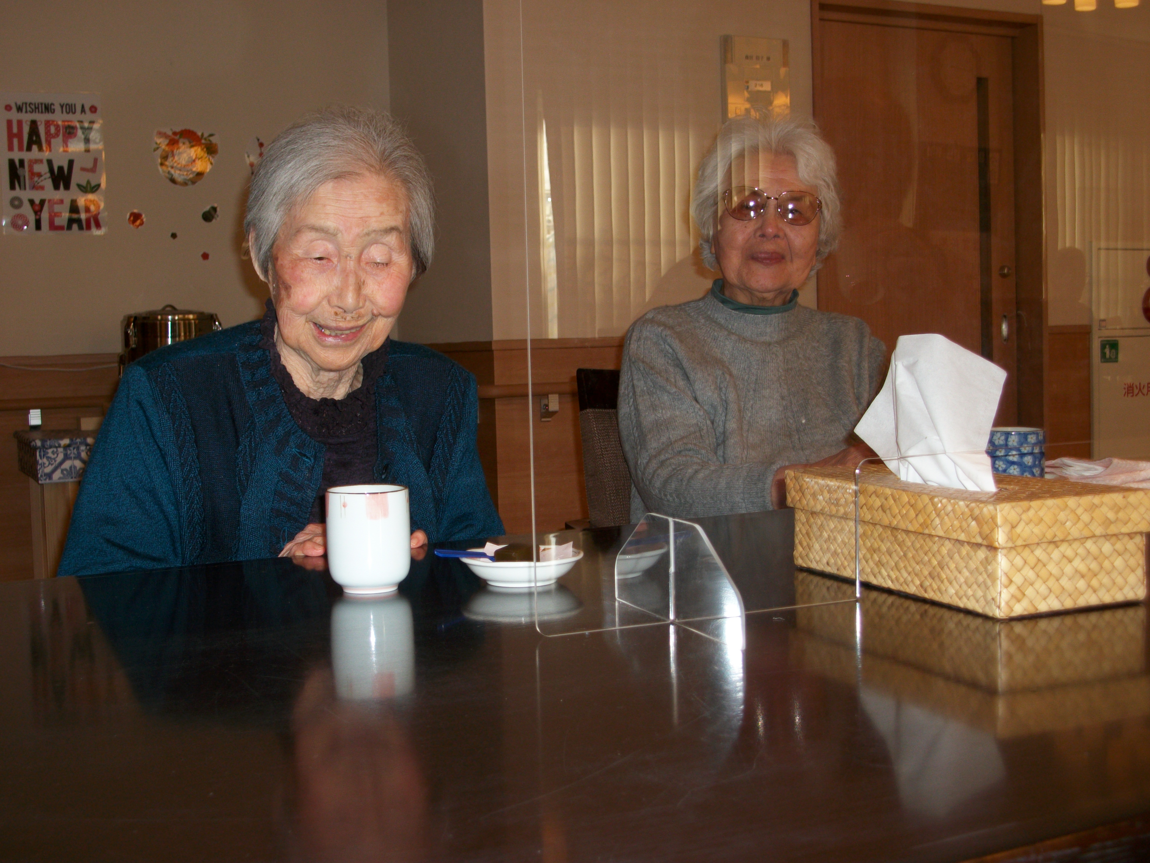 入居者様は、元旦の昼食におせち料理を召し上がって頂き、三時には羊羹と梅こんぶ茶でティータイム♪
